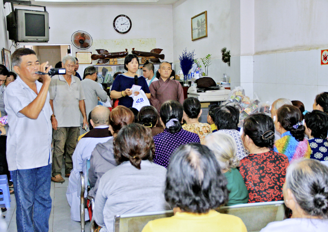 Thủ Thừa: Ban Từ Thiện Tổ Đình Kim Cang hướng dẫn đoàn tài trợ phẫu mắt