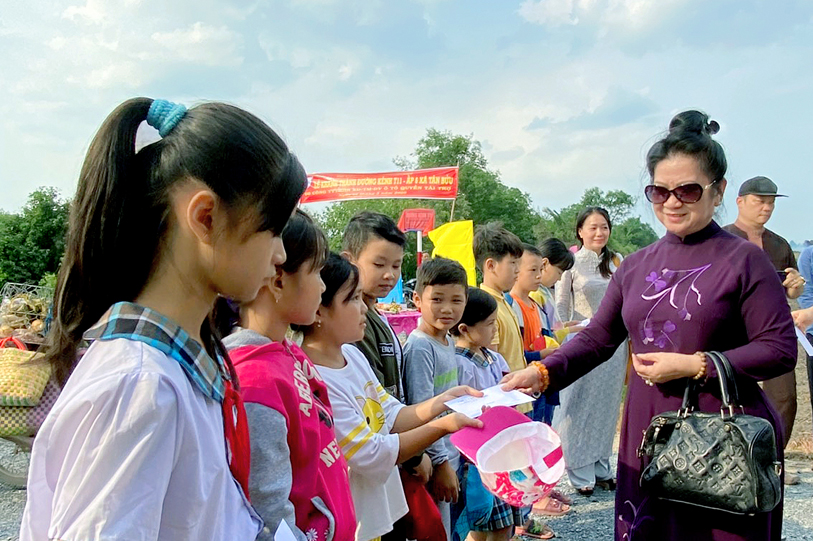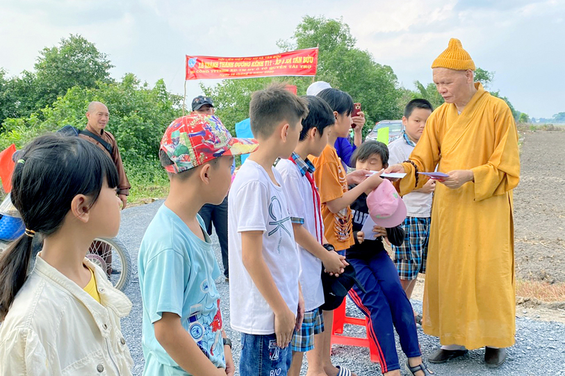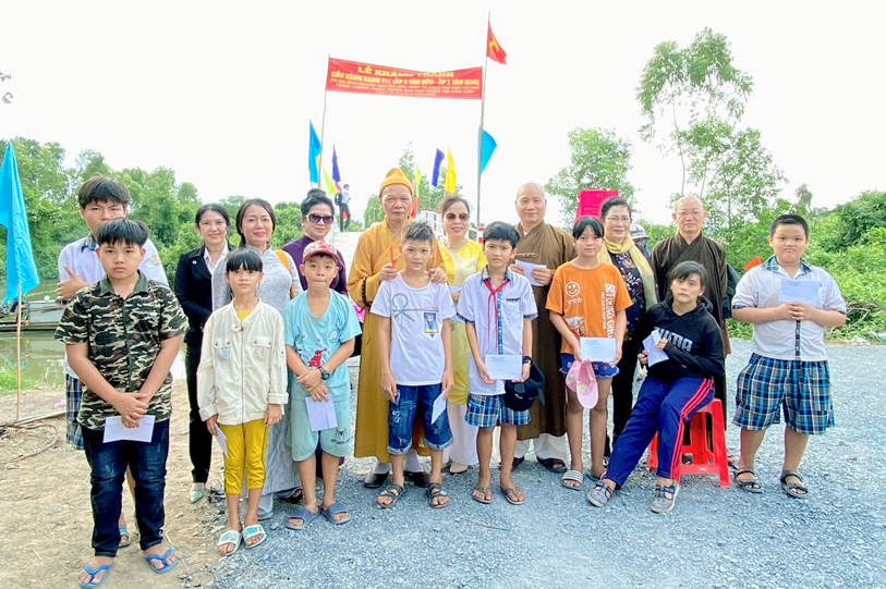 Nhân lễ Khánh Thành phái đoàn tổ chức trao tặng 30 suất học bổng cho 30 học sinh nghèo hiếu học trên địa bàn của 2 xã. Tổng giá trị các phần quà hơn 30 triệu đồng do HT. Thích Phước Toàn và phật tử tài trợ.