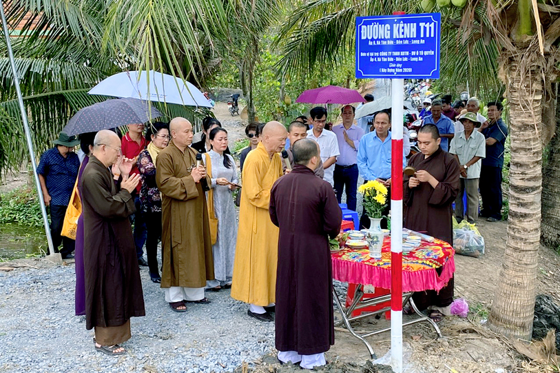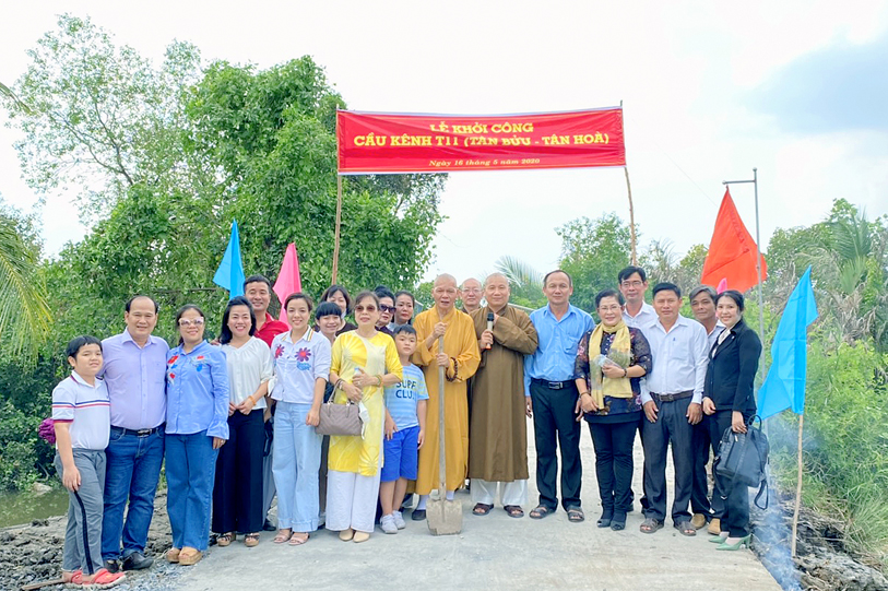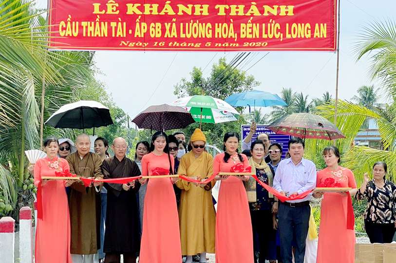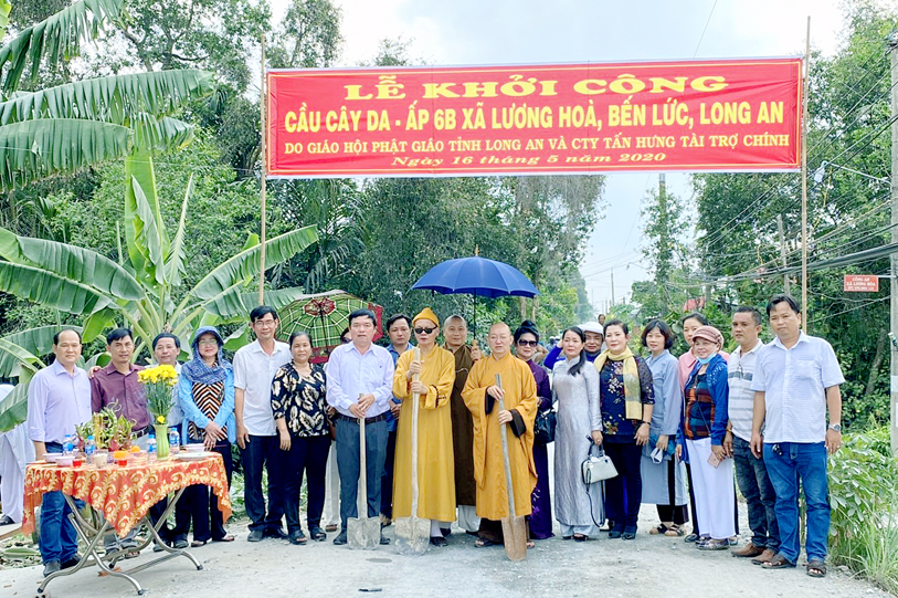 Ngày 16 tháng 05/ 2020( 23/0 4/ Kỷ Canh tý), Ban từ thiện xã hội GHPGVN tỉnh Long An, chùa Vạn Đức, quận Bình Tân, Tp. HCM phối hợp chính quyền địa phương xã Lương Hoà và Tân Bửu, huyện Bến Lức, tỉnh Long An tổ chức lễ khởi công và khánh thành 04 cây cầu giao thông nông thông.