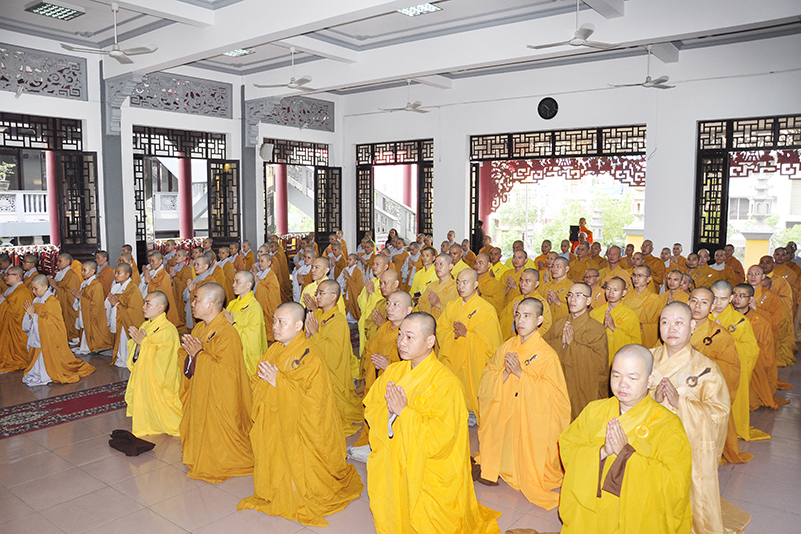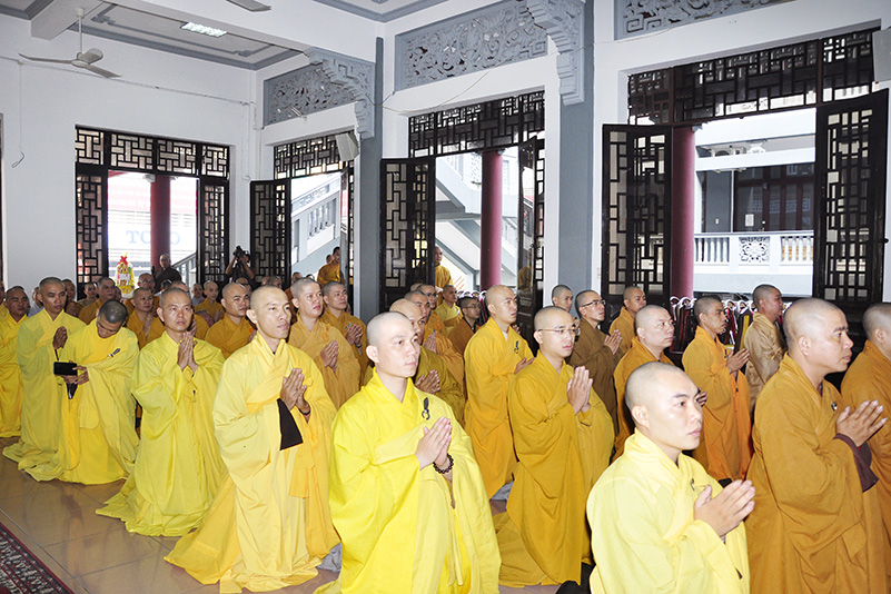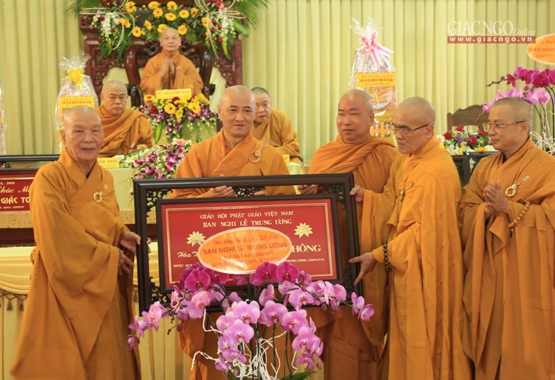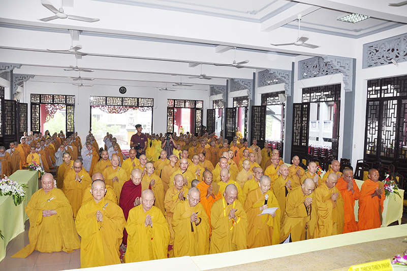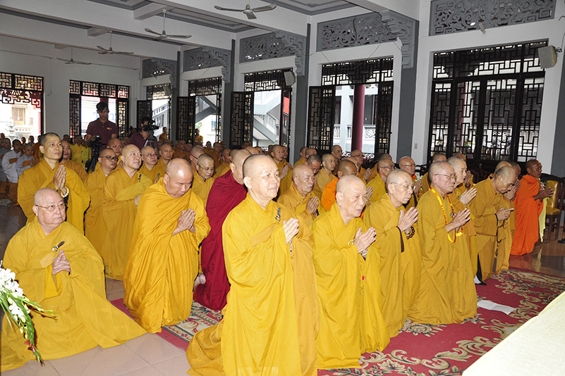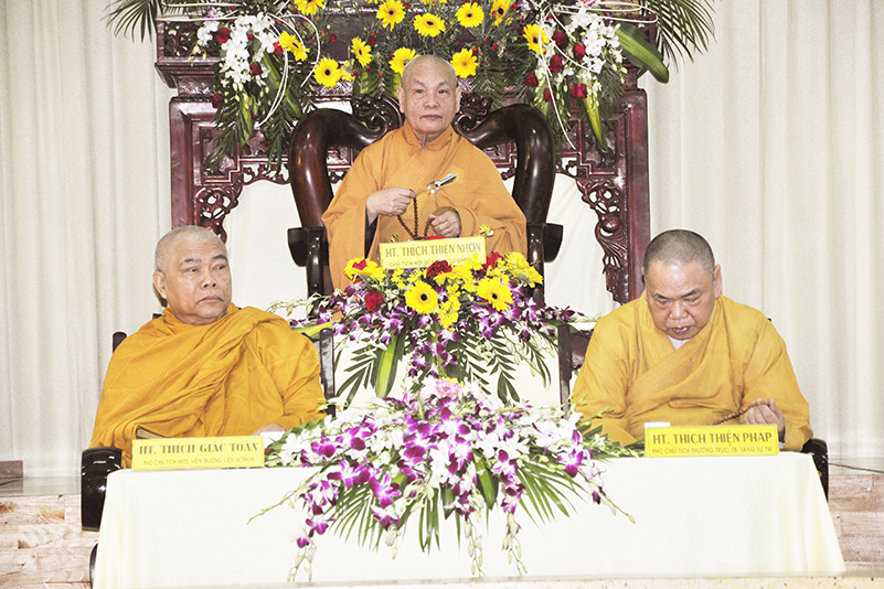 HT.Thích Thiện Nhơn, Chủ tịch HĐTS; HT.Thích Thiện Pháp, Phó Chủ tịch Thường trực HĐTS kiêm Trưởng ban Tăng sự T.Ư; HT.Thích Giác Toàn, Phó Chủ tịch HĐTS kiêm Viện trưởng Viện Nghiên cứu Phật học VN đã chứng minh buổi lễ.