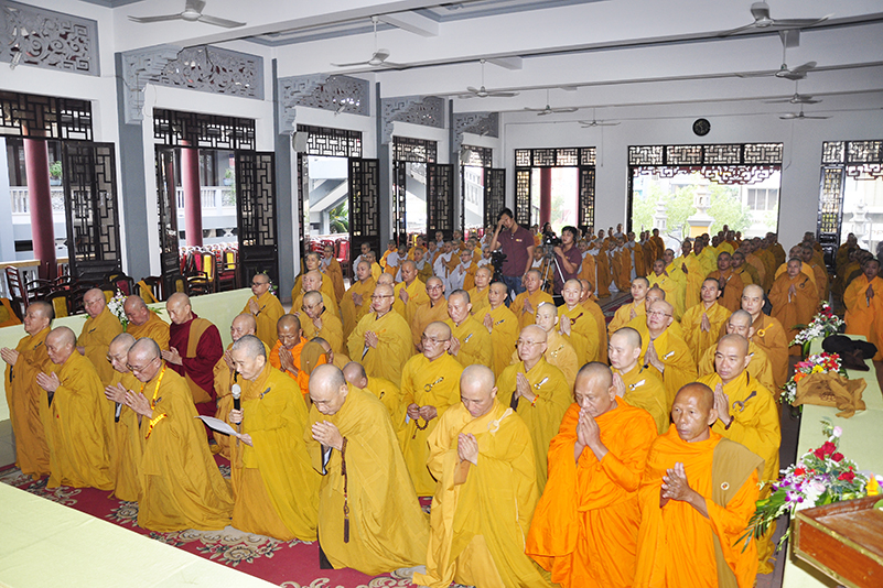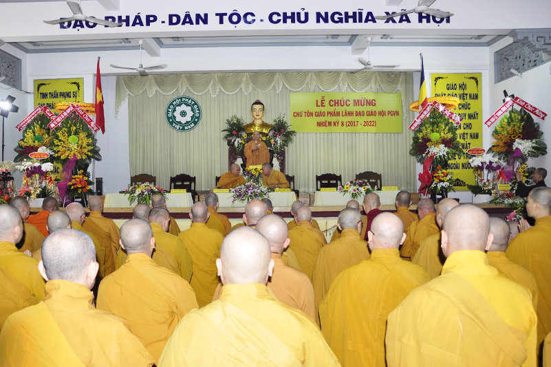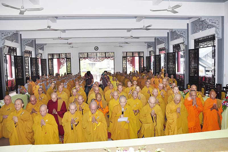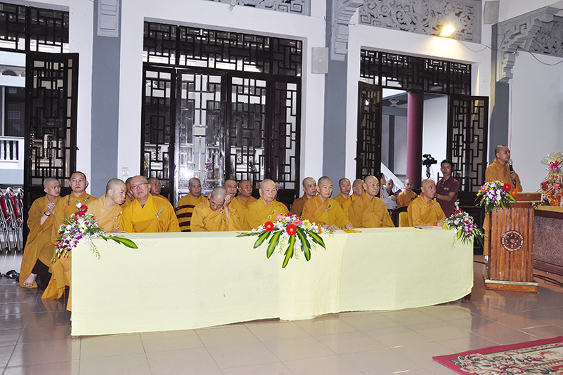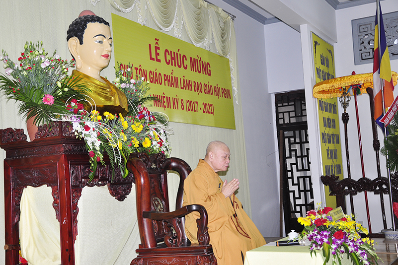 Trong không khí trang nghiêm, đại diện cho các ban, viện T.Ư, HT.Thích Thanh Hùng, UVTT HĐTS, Trưởng ban HDPT T.Ư dâng lời tác bạch, thể hiện sự hoan hỷ khi Đại hội nhiệm kỳ VIII (2017-2022) của Giáo hội diễn ra thành công, thông qua nhiều nội dung quan trọng để phát triển đạo pháp trong tình hình mới.