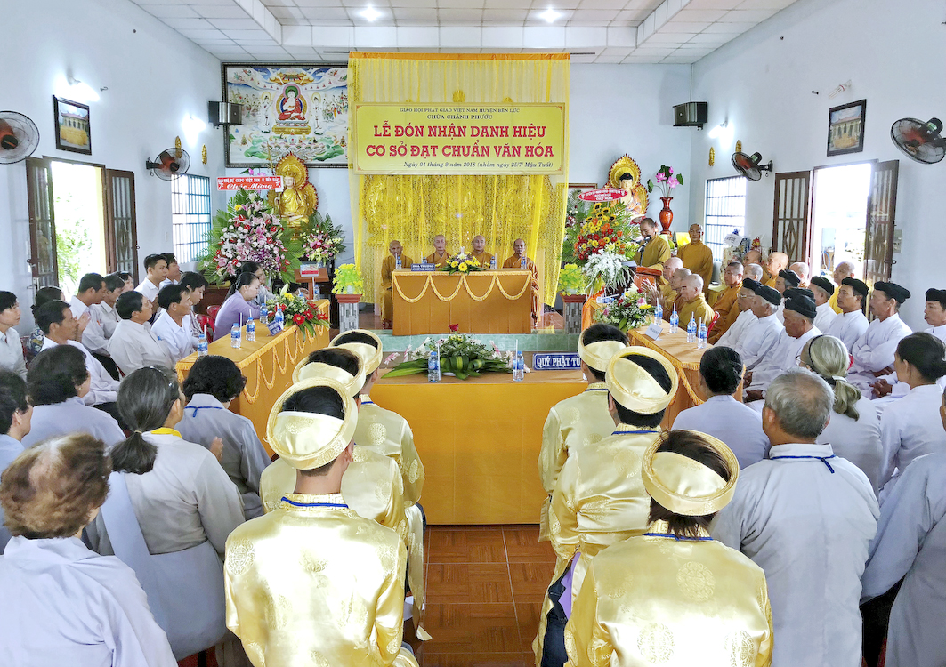 Nhưng trong mùa Vu Lan năm nay, Chư Tăng và Phật tử chùa Chánh Phước vô cùng hân hoan được đón nhận một tin vui. Đó là Chùa Chánh Phước long trọng Tổ chức “Lễ Đón Nhận Danh Hiệu –Cơ Sở Đạt Chuẩn Văn Hóa”.