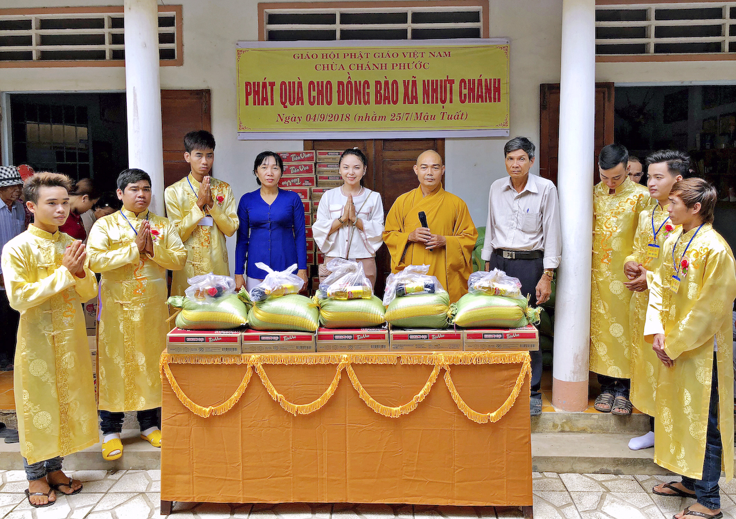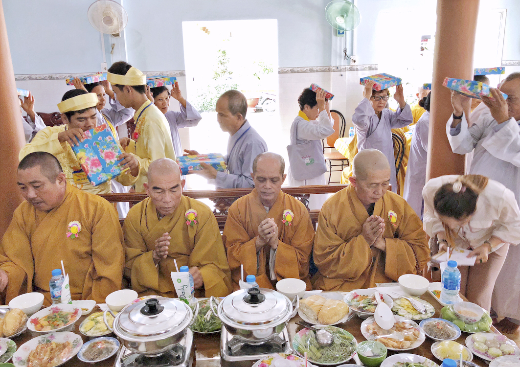 Cuối buổi lễ, Đại đức trụ trì và chư Phật tử tại đạo tràng đã trao tặng 100 phần quà, mỗi phần quà trị giá 200 ngàn đồng, nhằm giúp Phật tử tại địa phương vượt qua khó khăn trong mùa Vu Lan – Báo hiếu.