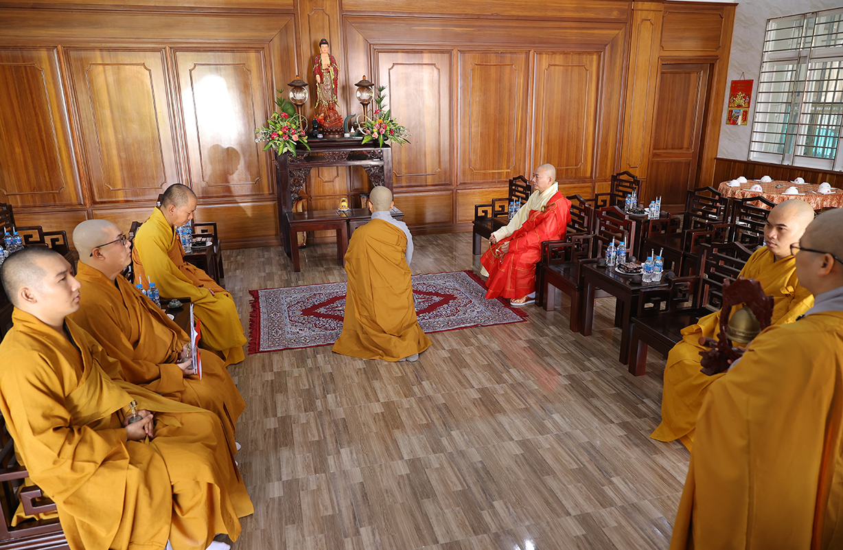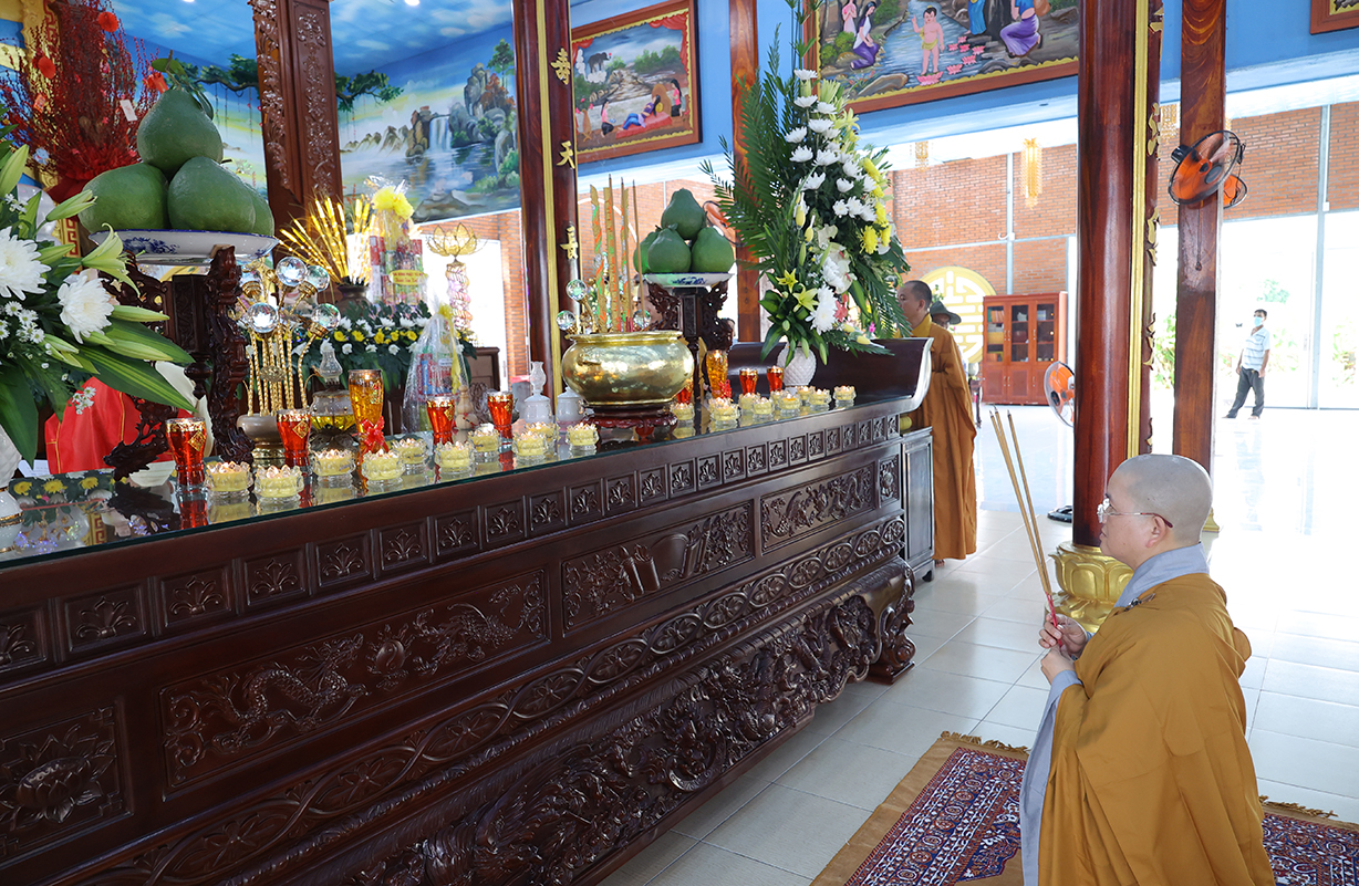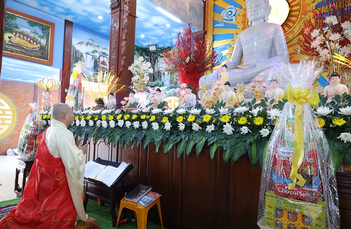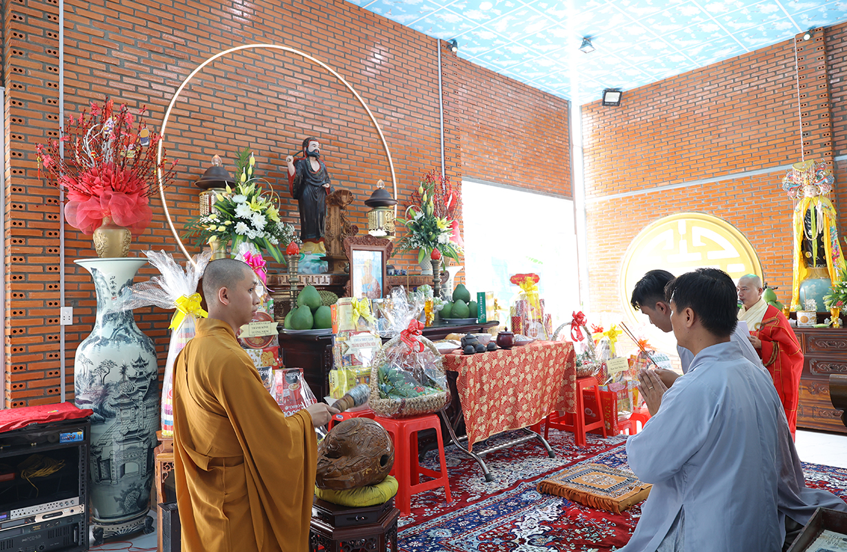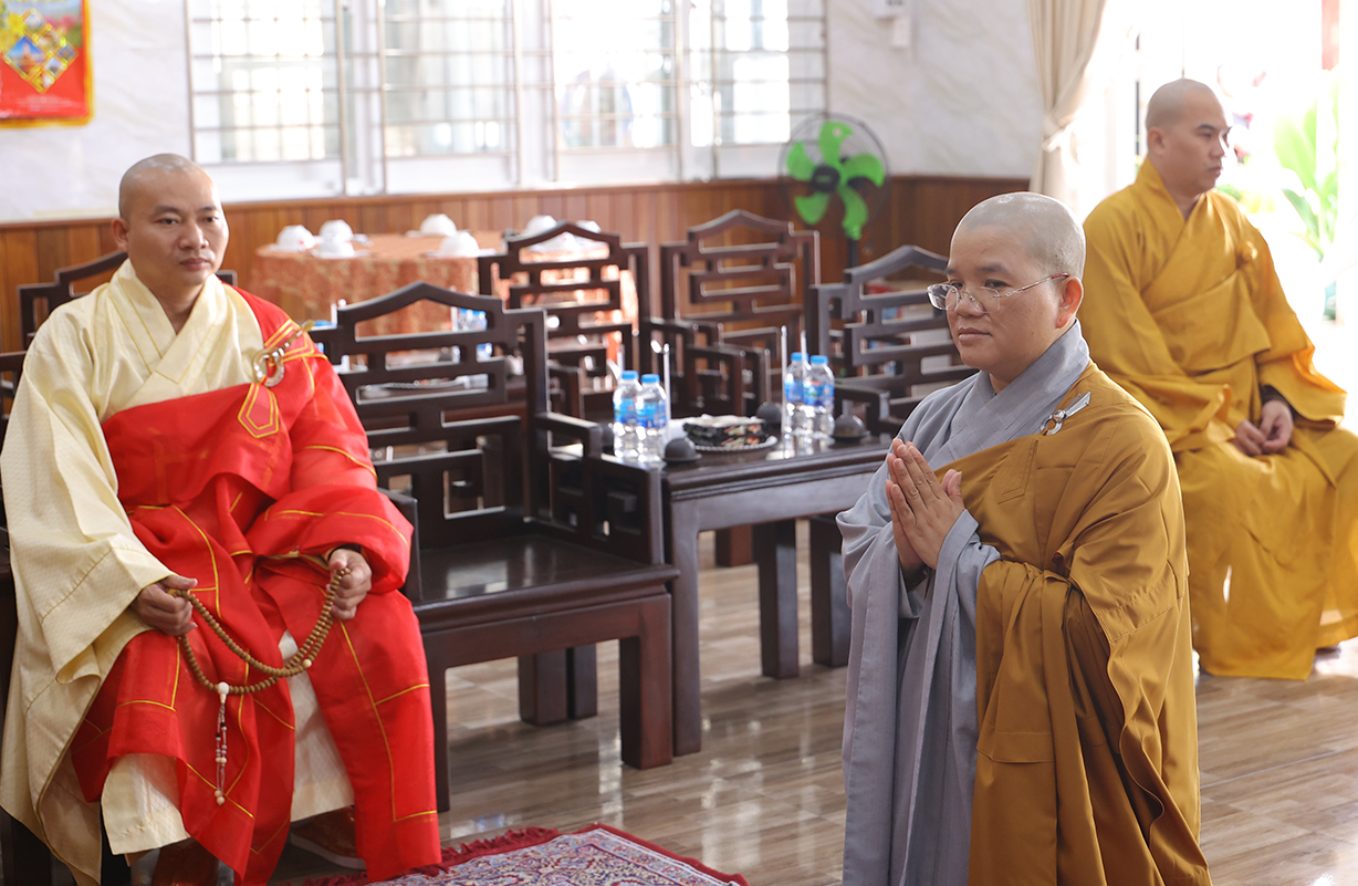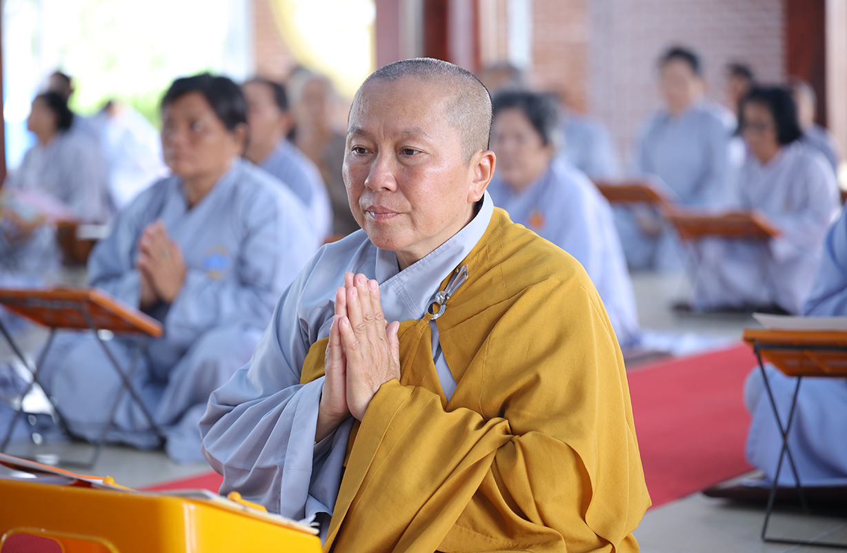 Tiếp đó, Ban nghi lễ đã cung nghinh chư Tôn đức Giáo phẩm, Thường trực BTS GHPGVN tỉnh Long An: HT. Thích Thiện Tài- Chứng minh BTS GHPGVN tỉnh Long An; HT. Thích Minh Thiện- Ủy viên HĐTSTƯ, Phó Ban Hoằng pháp trung ương, Trưởng BTS GHPGVN tỉnh Long An; HT. Thích Tắc Phi- Phó Ban Trị sự kiêm Trưởng Ban Kiểm soát BTS GHPGVN tỉnh Long An; TT. Thích Lệ Trí- Ủy viên HĐTSTƯ, Phó Ban Văn hóa trung ương, Phó Trưởng BTS GHPGVN tỉnh Long An; ĐĐ Thích Lệ Ngôn- Phó ban Trị sự kiêm Trưởng Ban Hoằng pháp BTS GHPGVN tỉnh Long An cùng chư Tôn đức Thường trực BTS Phật giáo huyện Bến Lức, huyện Châu Thành, huyện Tân Trụ; chư Tôn đức Tăng Ni trụ trì các tự viện v.v., đồng tham dự chứng minh nơi trai đường.