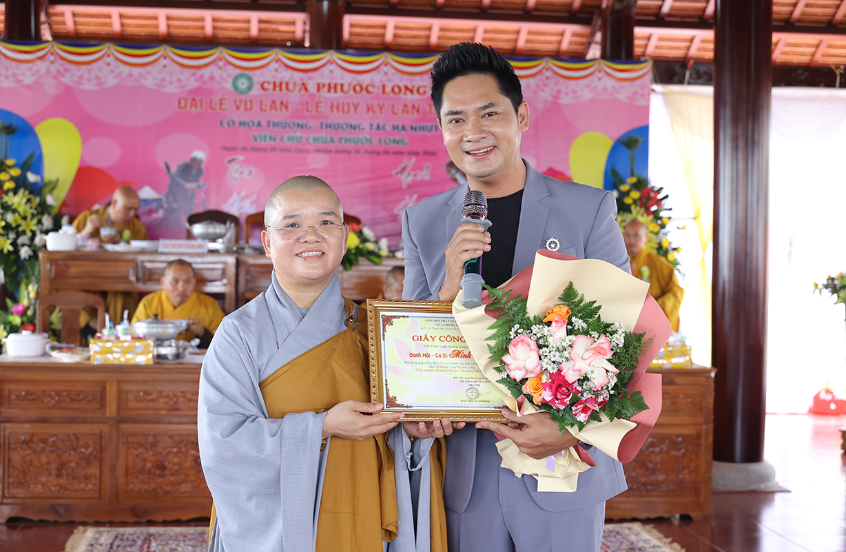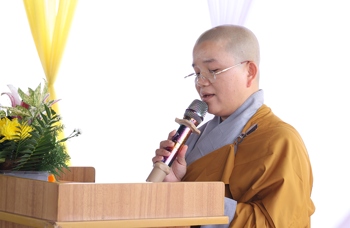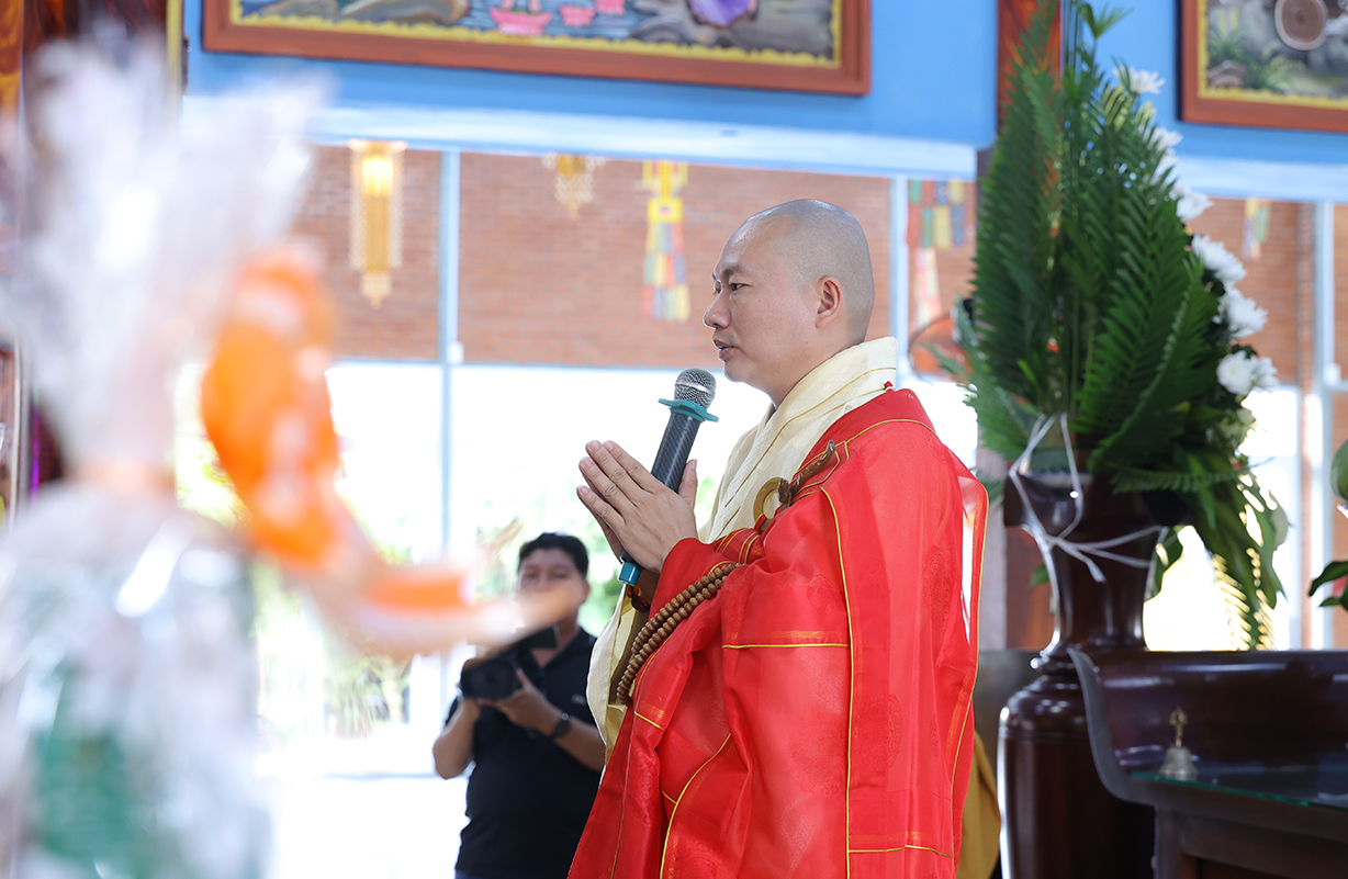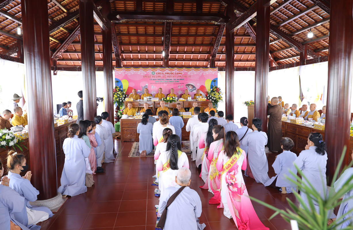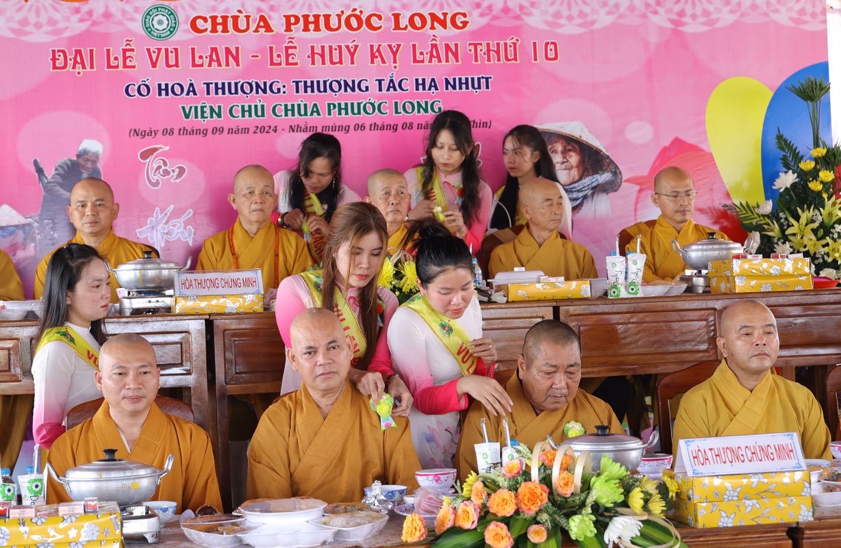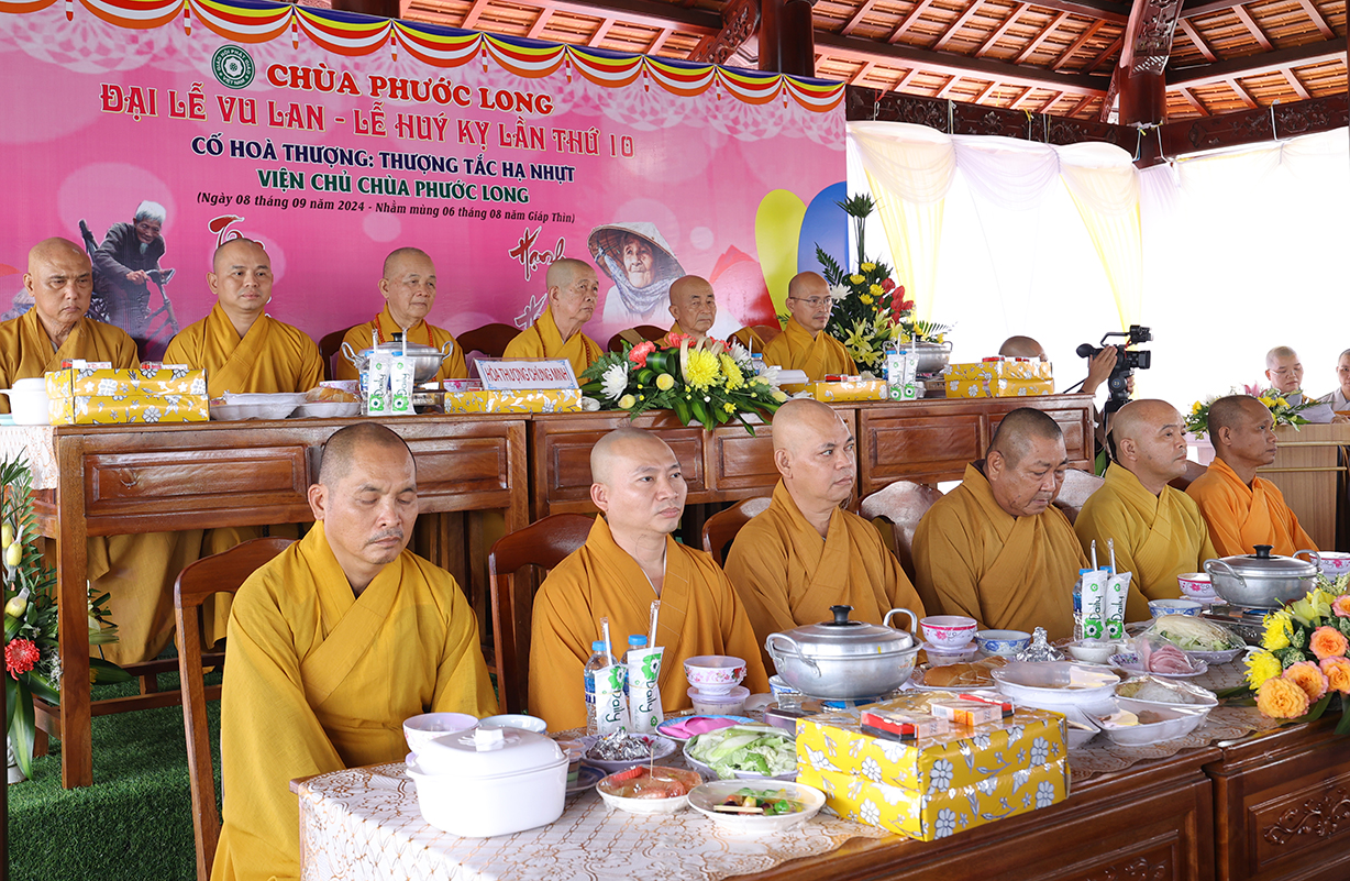 Trong giây phút hoài cảm ấy, Hòa thượng Thích Minh Thiện ân cần ban đạo từ chứng minh. Ngài tán thán các việc làm thể hiện hiếu hạnh của người con Phật tại đạo tràng Phước Long. Dù biết rằng tổ chức buổi lễ đã qua mùa Vu Lan tháng 7, nhưng Sư Cô trụ trì vì hướng vọng ân đức trùng tu Tam Bảo của Tổ Thầy, nên nhân ngày Húy Kỵ kết hợp tổ chức Vu Lan, tạo cơ hội cho Phật tử xa gần trở về cùng thực thi Hiếu nghĩa với đấng sanh thành. Đây là một việc làm đậm nét nhân văn cần được duy trì và phát triển. Bởi lẽ, con người biết hiếu thuận thì nhà nhà được hạnh phúc ấm no, xã hội bình yên. Hòa thượng nhấn mạnh, mảnh đất Long An hiện tại được an bình cũng có sự góp phần của những tấm lòng hiếu thảo, biết yêu thương và chia sẻ, biết trân trọng những thành quả của người đi trước. Hòa thượng cũng mong rằng những người hiện diện hôm nay, hãy luôn trân trọng và giữ lấy hạnh phúc khi còn được ở bên Cha Mẹ; hãy làm tấm gương tốt đẹp cho con cháu noi theo. Hạnh hiếu làm nên nét đẹp tự thân của mỗi người, đồng thời lan tỏa năng lượng lành đến khắp gần xa.