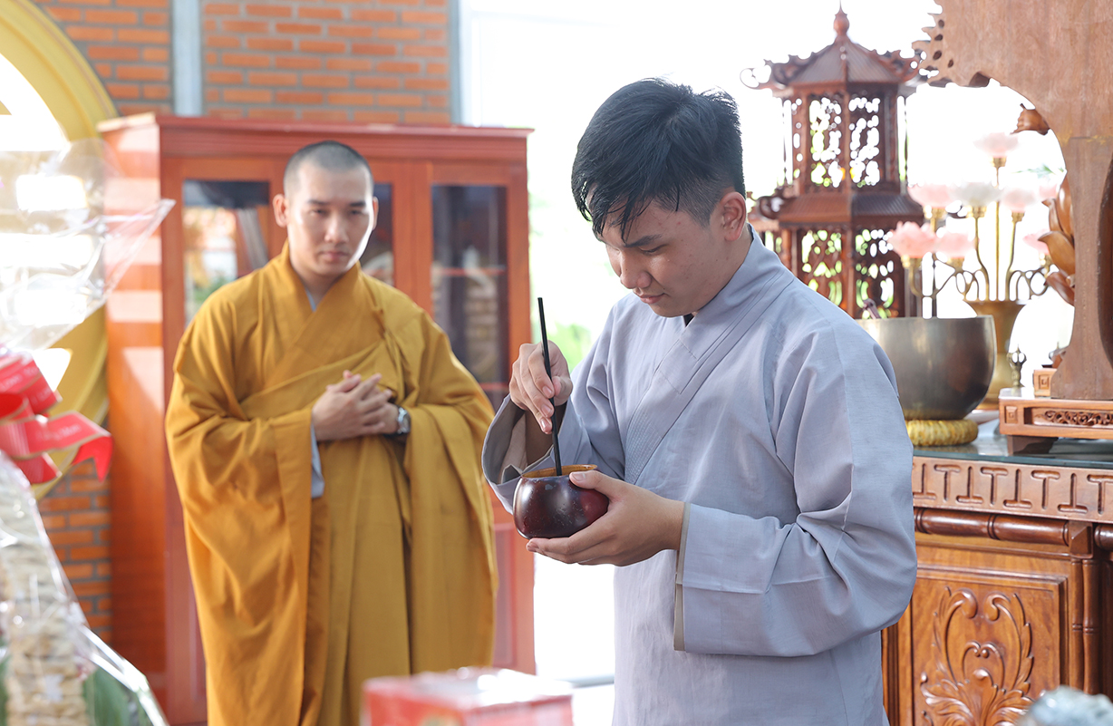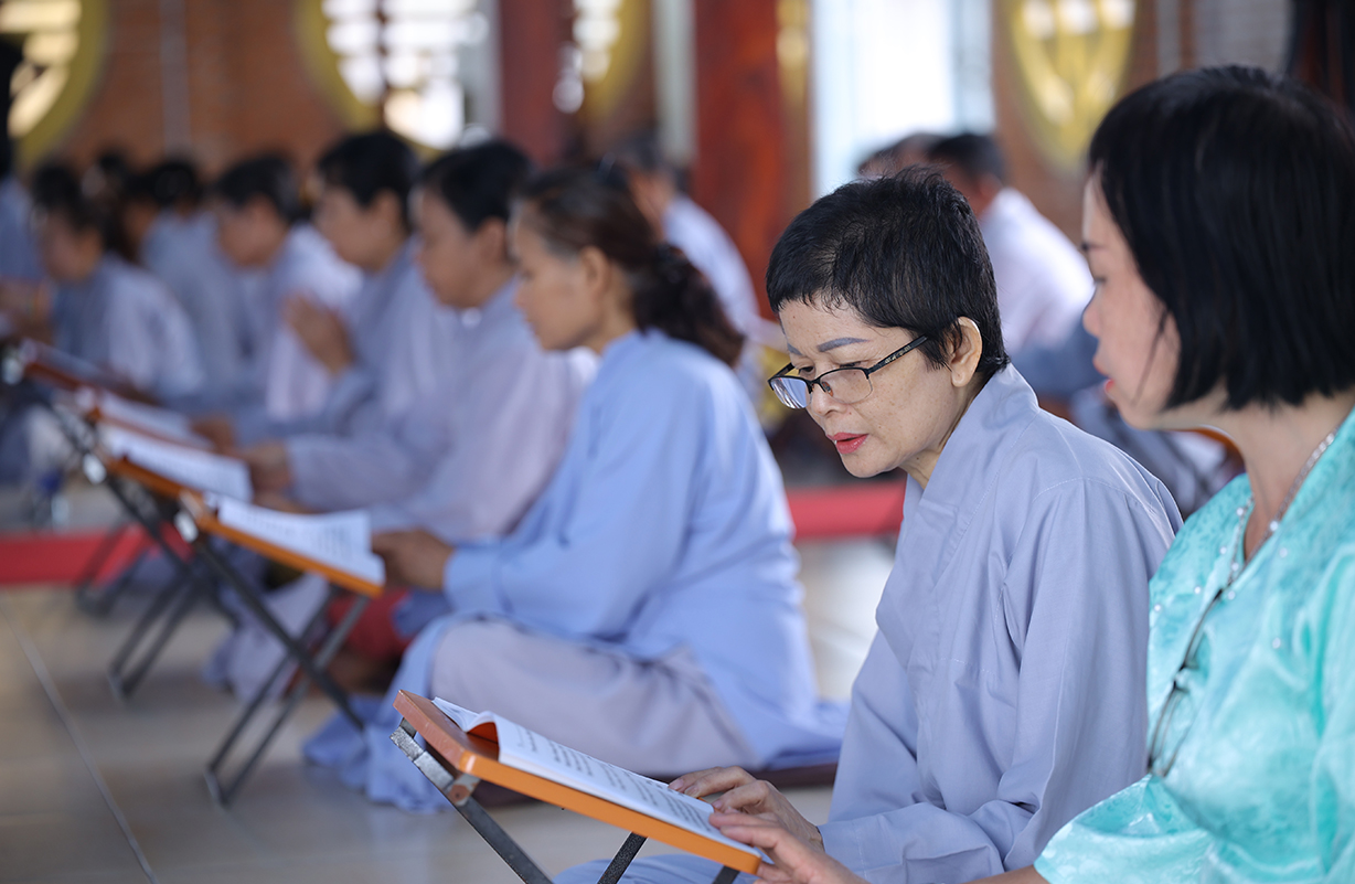 Vào lúc 8g30, chư Tôn đức Ban Lễ sư do Đại đức Thích Đồng Lợi, Chánh thư ký BTS Phật giáo Quận 4 đương vi Sám chủ hướng dẫn các Phật tử tụng kinh Vu Lan, phóng sanh và cung tiến Giác linh Cố Hoà thượng, bạt tiến kỳ siêu chư hương linh tại Bổn tự.