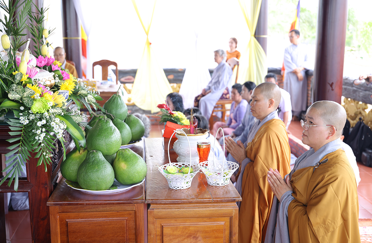 Buổi lễ diễn ra trong không khí trang nghiêm đầy tình đạo vị của mùa Vu Lan báo hiếu, lời Hoài niệm chân tình của Sư cô Trụ trì để lại trong lòng người sự cảm động sâu sắc về công ân cha mẹ, hiếu dưỡng sanh thành. Không gian lắng đọng với nhạc phẩm Lòng Mẹ bao la, mênh mông vô tận, càng xúc cảm hơn khi mọi người lắng nghe lời của đại diện Phật tử tác bạch Vu Lan, gợi lại ký ức mỗi người con luôn có hình bóng từ hòa, bao dung của Cha Mẹ trên muôn nẻo đường đời.