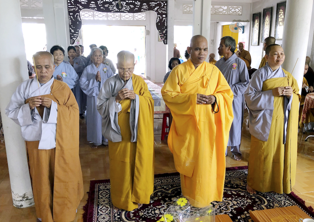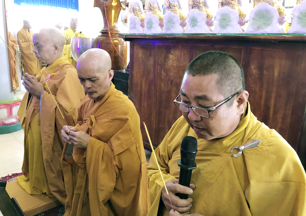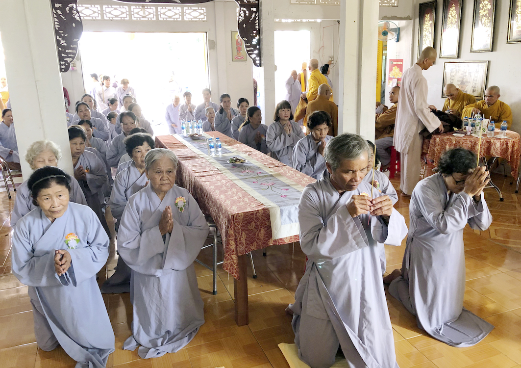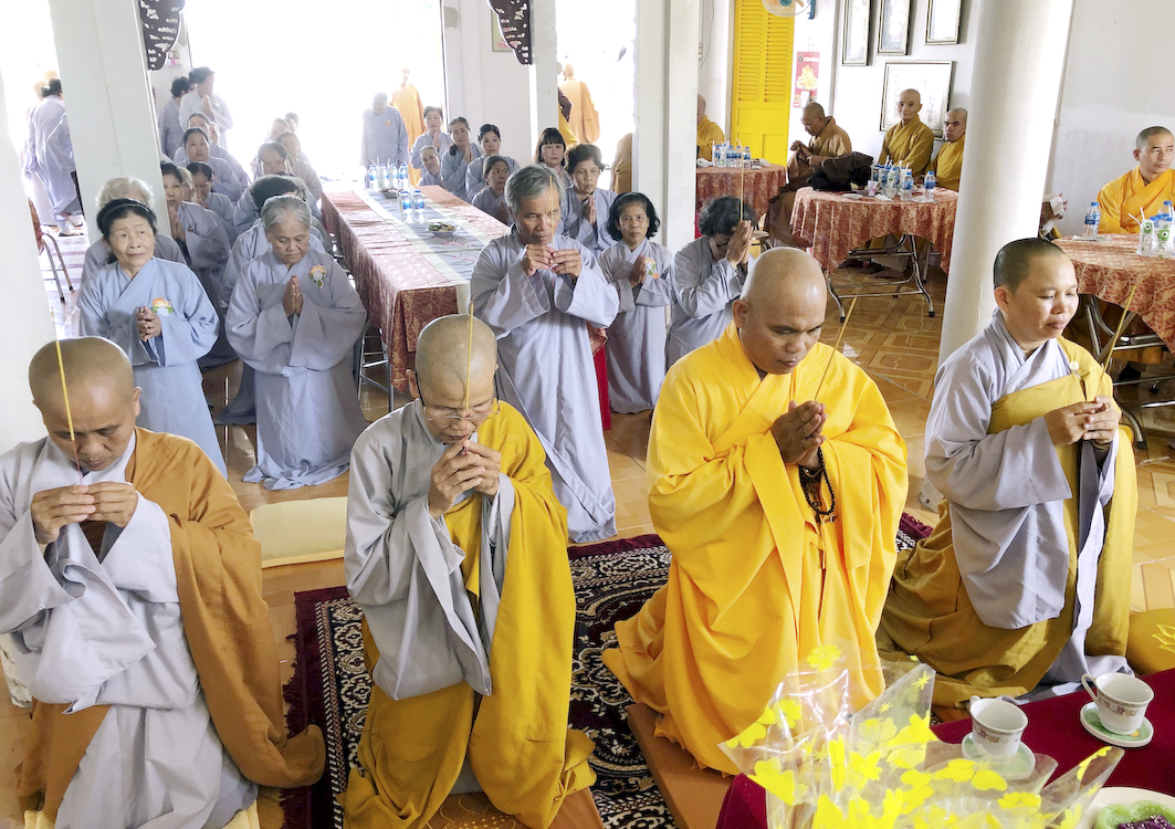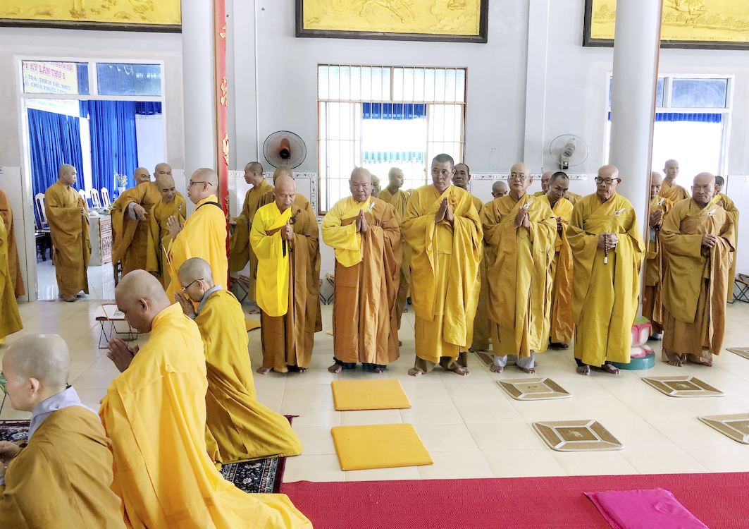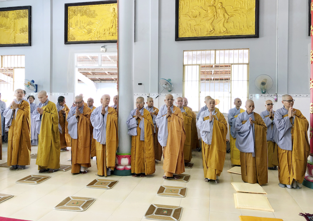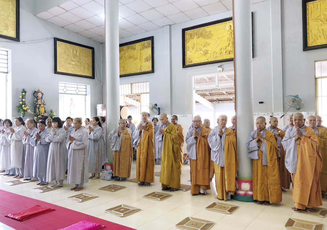 Đến 11 giờ, Ban nghi lễ và môn nhân pháp quyến bạch thỉnh chư Tôn Hòa thượng: HT. Thích Minh Thiện – UVHĐTS- Phó Trưởng Ban Hoằng pháp TW, Trưởng Ban Trị sự GHPGVN tỉnh Long An; HT. Thích Thiện Tâm – Phó Trưởng Ban Trị sự kiêm Trưởng Ban Kiểm soát GHPGVN tỉnh Long An; HT. Thích Thiện Tài – Phó Trưởng Ban Trị sự kiêm Trưởng Ban Nghi lễ GHPGVN tỉnh Long An; HT. Thích Tắc Phi; HT. Thích Tắc Nhàn; Thượng tọa Thích Tắc Quảng, Đại đức Thích An Trung – Trưởng Ban Trị sự GHPGVN huyện Bến Lức vv., và 100 chư Tăng Ni đồng quang lâm trai đường.