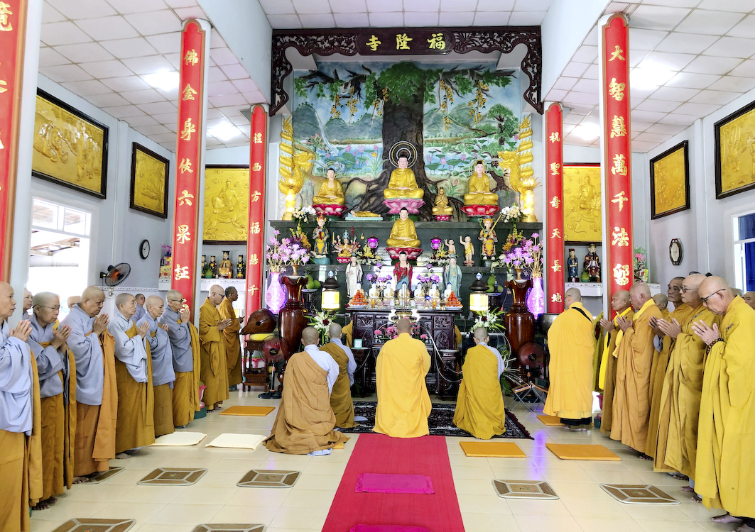 Buổi lễ diễn ra vô cùng trang trọng trong sự chứng minh đông đủ của chư Tôn đức Giáo phẩm tỉnh, huyện thị thành phố Tân An, tỉnh Long An cùng chư tôn đức pháp phái Thiên Thai Giáo Quán Tông, chư Tôn đức Trụ trì các tự viện địa phương sở tại v.v..