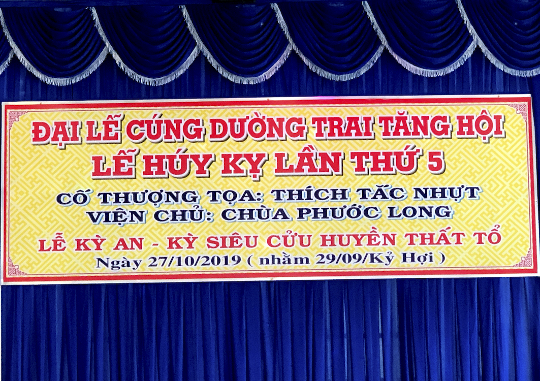 Sáng ngày 27/10/ 2019 (nhằm ngày 29/9/Kỷ Hợi), Sư cô Thích Nữ An Hương cùng môn nhân pháp quyến thành kính tổ chức Lễ tưởng niệm húy nhật lần thứ 5 của Ân sư – Cố Thượng tọa Thích Tắc Nhựt, húy Lãng Thuấn, nguyên Trụ trì chùa Phước Long (Bà Tiêu) xã Thạnh Đức, huyện Bến Lức, Long An.