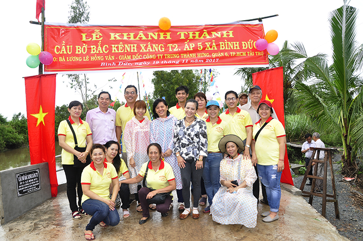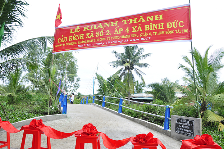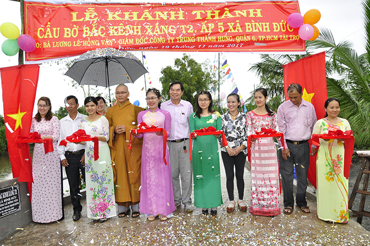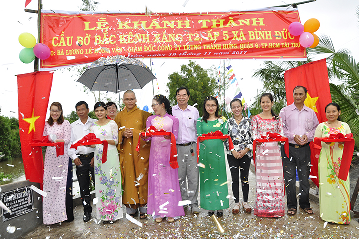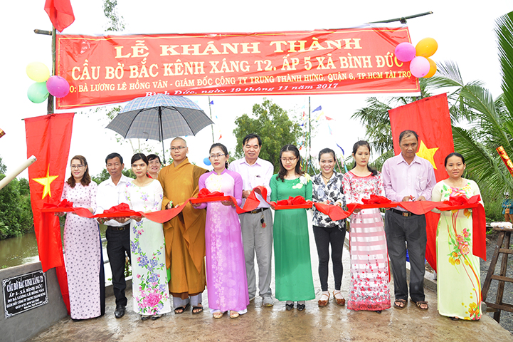 Với phương  châm toàn xã hội đạt chuẩn “ Nông Thôn Mới” của Nhà nước và cũng là tinh thần phụng sự chúng sanh của Phật giáo, Phật giáo Long An đã tích cực xây dựng hàng trăm cây cầu ở địa bàn tỉnh nhằm giúp đồng bào thuận lợi giao thông trong cuộc sống. Đặc biệt các em học sinh bớt nguy  hiểm khi nuôi ước mơ đến trường đến lớp. tiếp nối tinh thân đó, sáng ngày 19/11/2017 tại xã Bình Đức, huyện Bến Lức tỉnh Long An diễn ra lễ khánh thành cầu Kênh Xáng T2 ở ấp 04 và ấp 05 với tổng kinh phí gần 300 triệu do ông bà Duy Phương – Giám đốc công ty Thành Hưng, quận 06, TP. HCM; ông Nguyễn Hoà Phương – Hội trưởng hội Tịnh Tâm thành phố HCM tài trợ tài chính và nhân dân địa phương góp công.