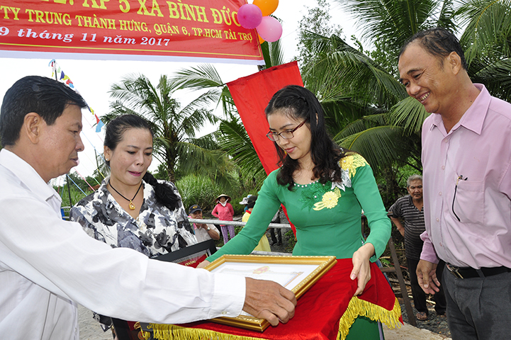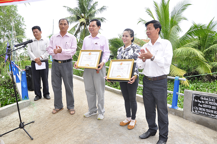 Để ghi nhận sự hảo tâm của các mạnh thường quân, Uỷ ban Nhân dân tỉnh Long An đã trao tặng giấy khen đến ông bà Duy Phương; ông Ken Hơ Dzum.
