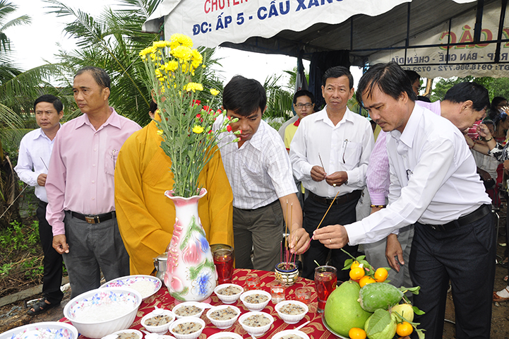 Về phía chính quyền gồm có: ông Phan Thanh Huấn – BÍ thư Đảng uỷ, Chủ tịch hội đồng Nhân dân xã Bình Đức; ông Trần Văn Sơn – Chủ tịch Uỷ ban Nhân dân xã Bình Đức; ông Lê Văn Hồng – Chủ tịch uỷ ban Nhân dân xã Tân Thành, cùng quý vị lãnh đạo ban ngành xã và bà con nhân dân địa phương tham dự.