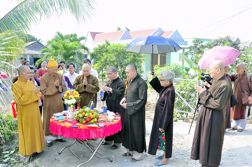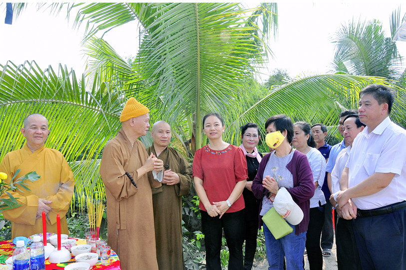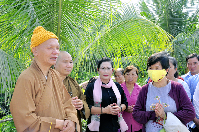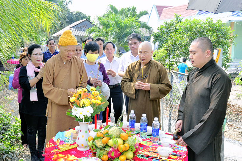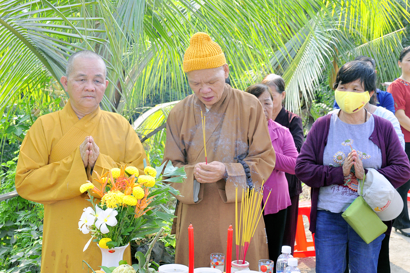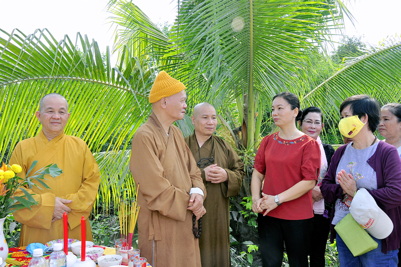Chứng minh và chú nguyện buổi lễ có: HT. Thích Phước Toàn- Uỷ viên Ban Văn Hoá Trung Ương, Viện chủ chùa Vạn Đức, quận Bình Tân, Tp. HCM; HT. Thích Minh Thiện- Uỷ viên Hội đồng Trị sự, Phó Ban Hoằng pháp, Phó Ban từ thiện Trung ương GHPGVN, Trưởng Ban Trị sự GHPGVN tỉnh Long An; TT. Thích Quảng Tâm – Uỷ viên Hội đồng Trị sự TW GHPGVN, Phó Thường trực BTS GHPGVN tỉnh Long An; ĐĐ. Thích Đức Hoàng- Phó Ban Trị sự GHPGVN tỉnh Long An cùng chư tôn đức Tăng, Phật tử và bà còn đồng bào địa phương.