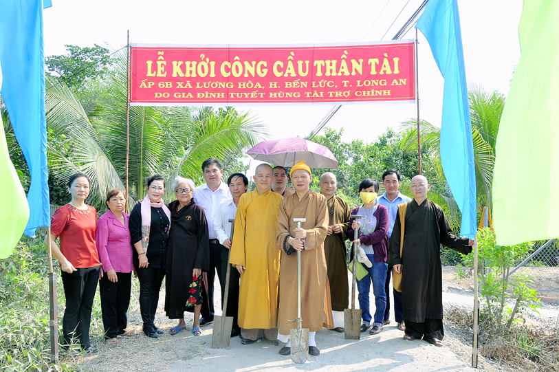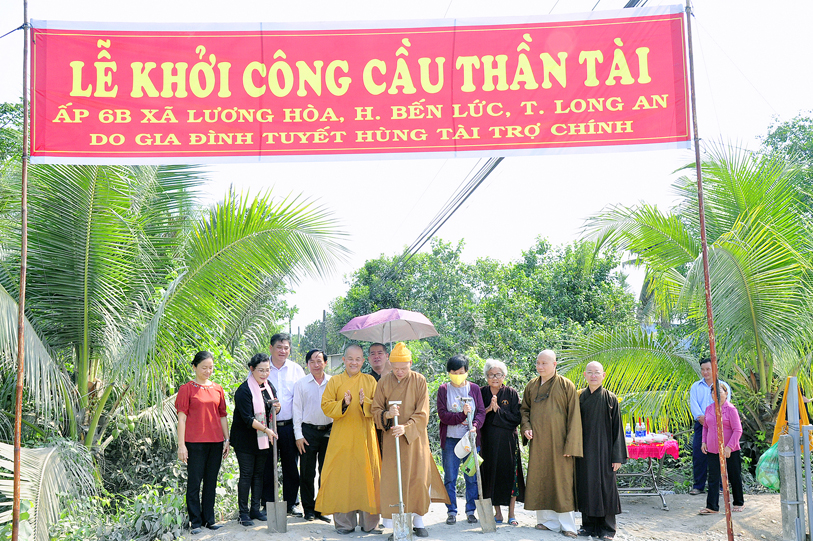 Sáng ngày 9/3/2020,Ban từ thiện xã hội GHPGVN tỉnh Long An phối hợp với UBND xã Lương Hòa huyện Bến Lức tổ chức khởi công cầu Thần Tài tại ấp 6B.