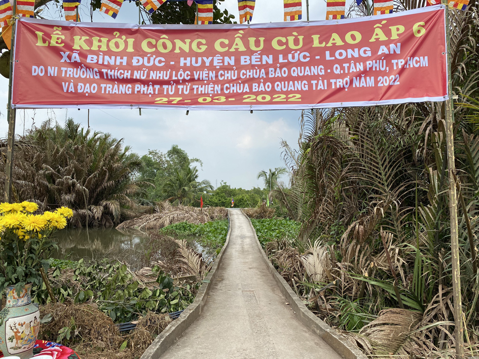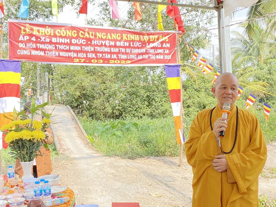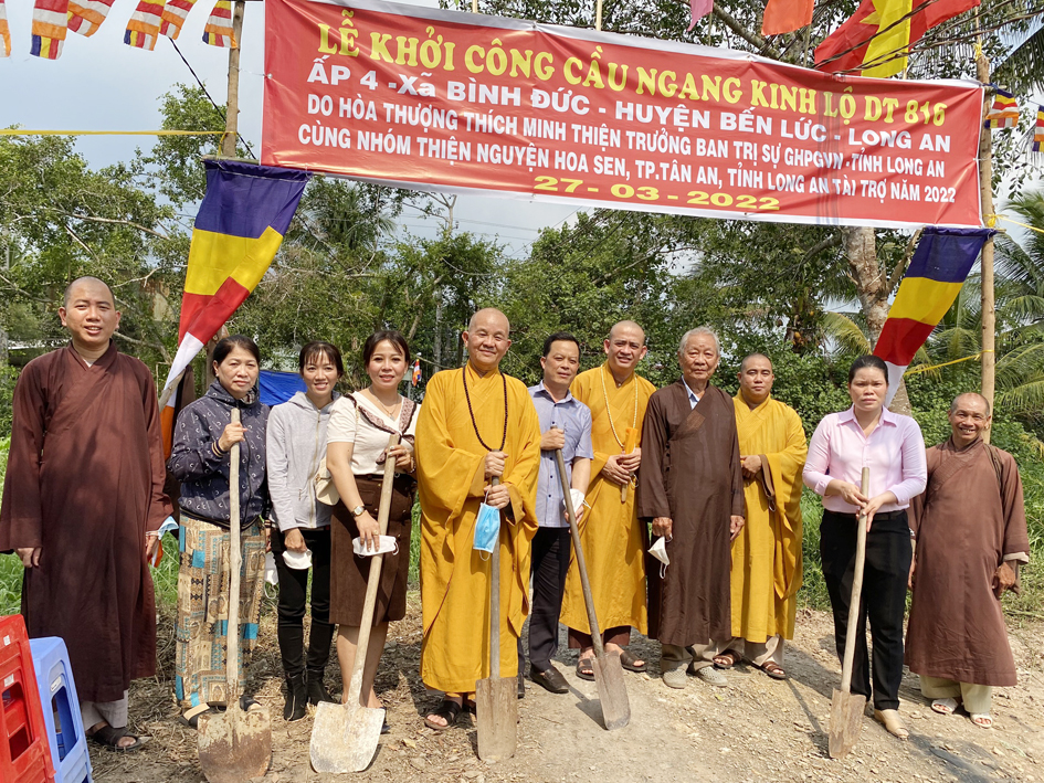 Chiều ngày 27 tháng 3 năm 2022, tại xã Bình Đức, huyện Bến Lức, Ban Trị Sự GHPGVN tỉnh Long An kết hợp chính quyền địa phương và các nhà tài trợ khởi công xây dựng hai cây cầu giao thông nông thôn. Quang lâm chứng minh có Hòa Thượng Thích Minh Thiện – UVHĐTSTW – Trưởng Ban Trị Sự GHPGVN tỉnh Long An, ĐĐ. Thích Thiện Khoa – Phó Ban Thường Trực BTSGHPGVN huyện Bến Lức, ĐĐ Thích Hóa Minh – Trưởng Ban Trị Sự GHPGVN Thị Xã Kiến Tường, TT. Thích Phước Cường- Phó Ban TT. Ban Nghi Lễ GHPGVN tỉnh Long An.