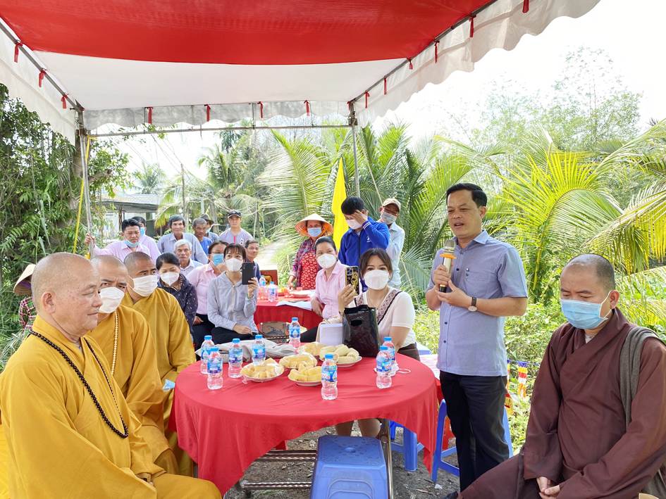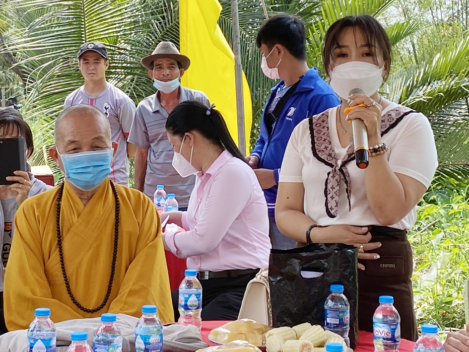 Phát biểu tại lễ khởi công, HT Thích Minh Thiện- Trưởng BTS GHPGVN tỉnh Long An tán thán quý Phật tử Nhóm Từ Thiện Hoa Sen Tp.Tân An đã hưởng ứng lời kêu gọi của Hòa thượng hỗ trợ chương trình được thành tựu. Đồng thời, Hòa thượng cũng tán thán Phật tử Tâm Tính đã nhiều năm cùng Phật giáo tỉnh nhà vận động các chương trình an sinh xã hội ở các địa phương. Qua đó, Hòa thượng gởi lời tri ân đến Ni Trưởng Viện Chủ Chùa Bảo Quang cùng quý Phật tử đã nhiệt tâm hỗ trợ các chương trình an sinh xã hôi tại Long An nhiều năm qua. Cuối lời Hòa thượng gởi lời cảm ơn quý lãnh đạo chính quyền địa phương các cấp tạo thuận duyên để buổi lễ được diễn ra trang nghiêm, tri ân quý nhà hảo tâm mạnh thường quân và cầu chúc công trình sớm thành tựu để đưa vào sử dụng. Qua đó, hai công trình này cũng để chào mừng Đại Hội Đại Biểu Phật Giáo Tỉnh Long An Nhiệm Kì X ( 2022-2027)