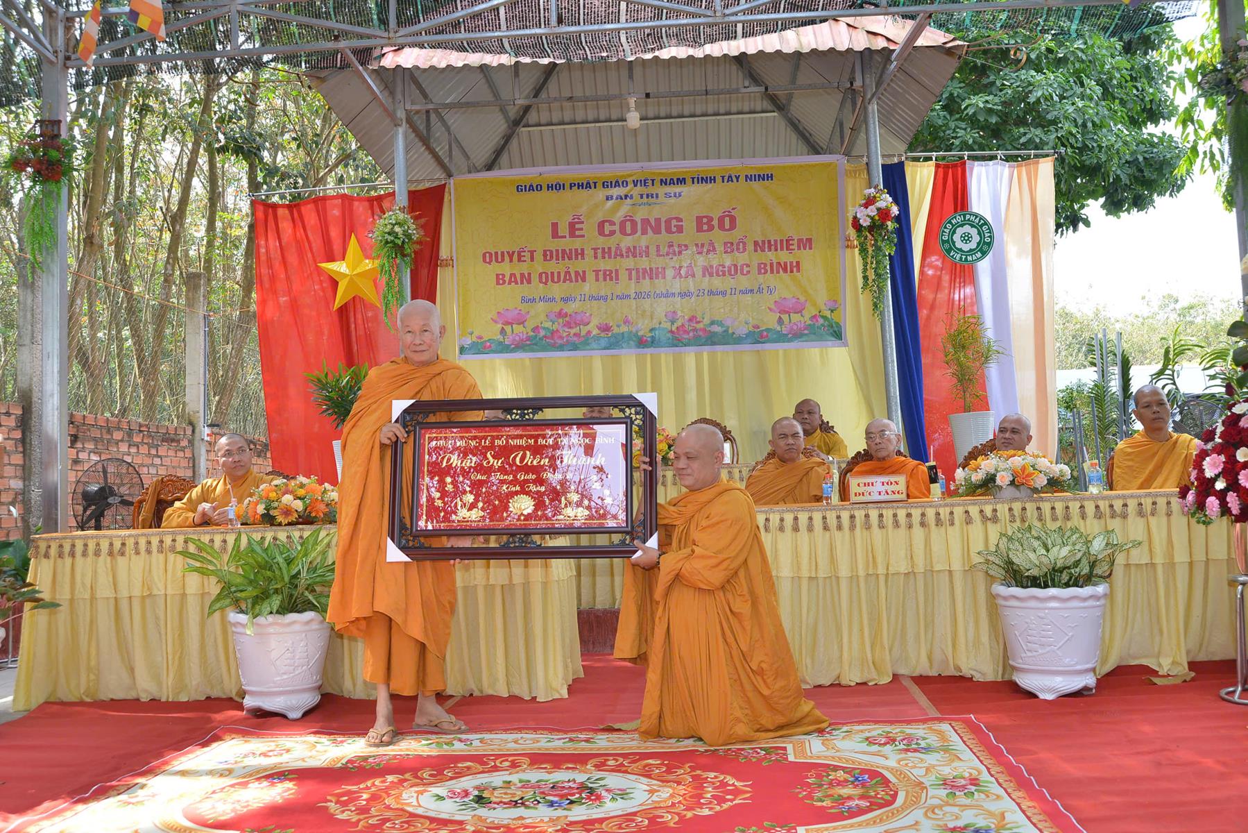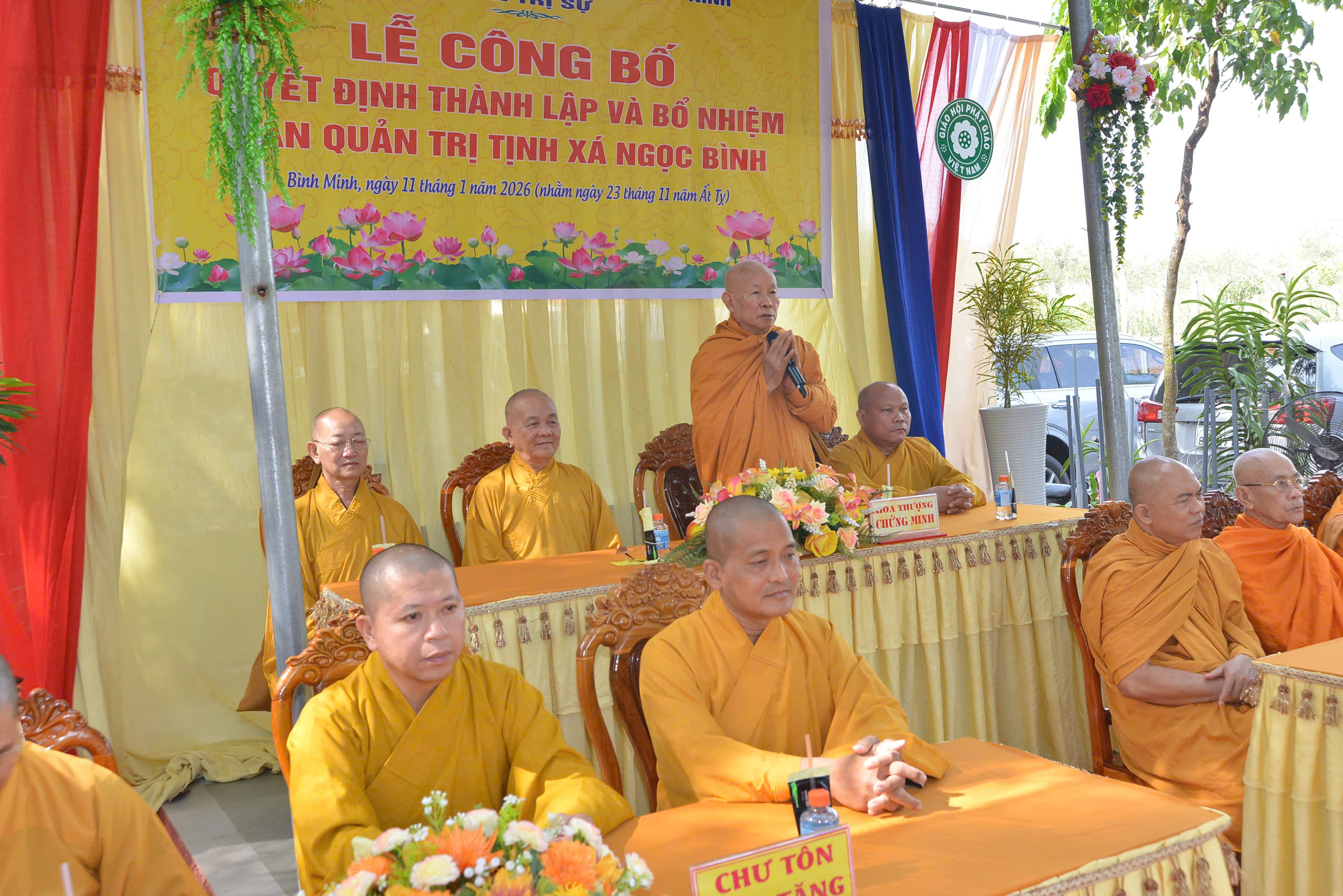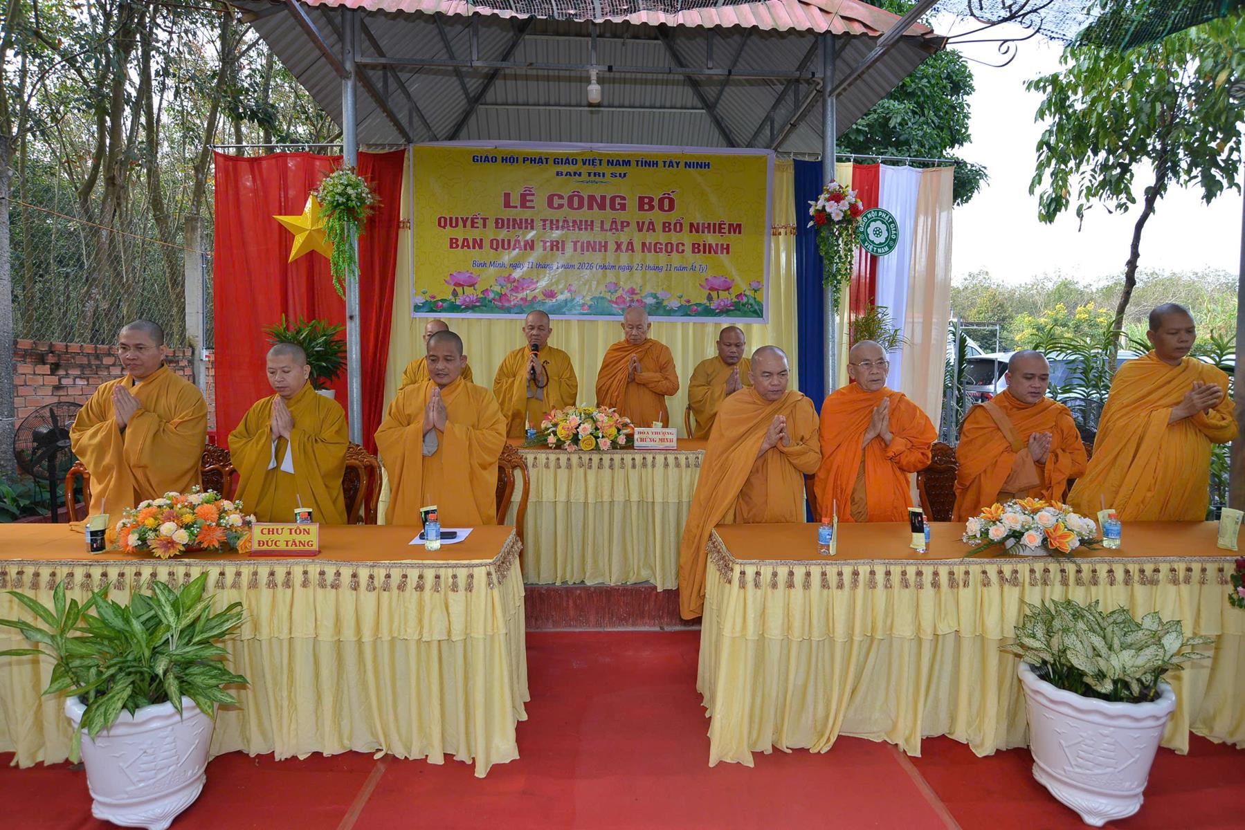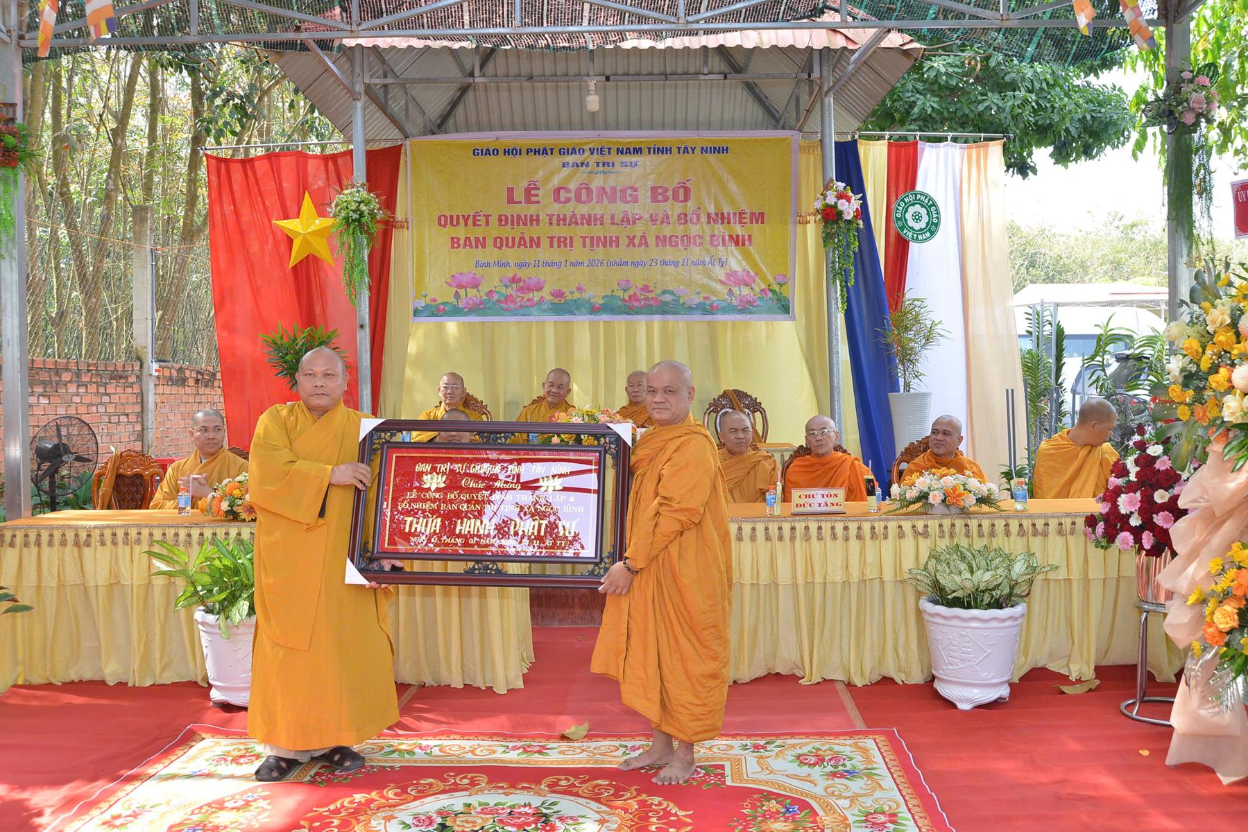 Sáng ngày 11/01/2026 (nhằm ngày 23/11/Ất Tỵ), Ban Trị sự GHPGVN tổ chức Lễ công bố quyết định thành lập và bổ nhiệm Ban Quản trị Tịnh xá Ngọc Bình, khu phố Bàu Lùn, phường Bình Minh, tỉnh Tây Ninh.