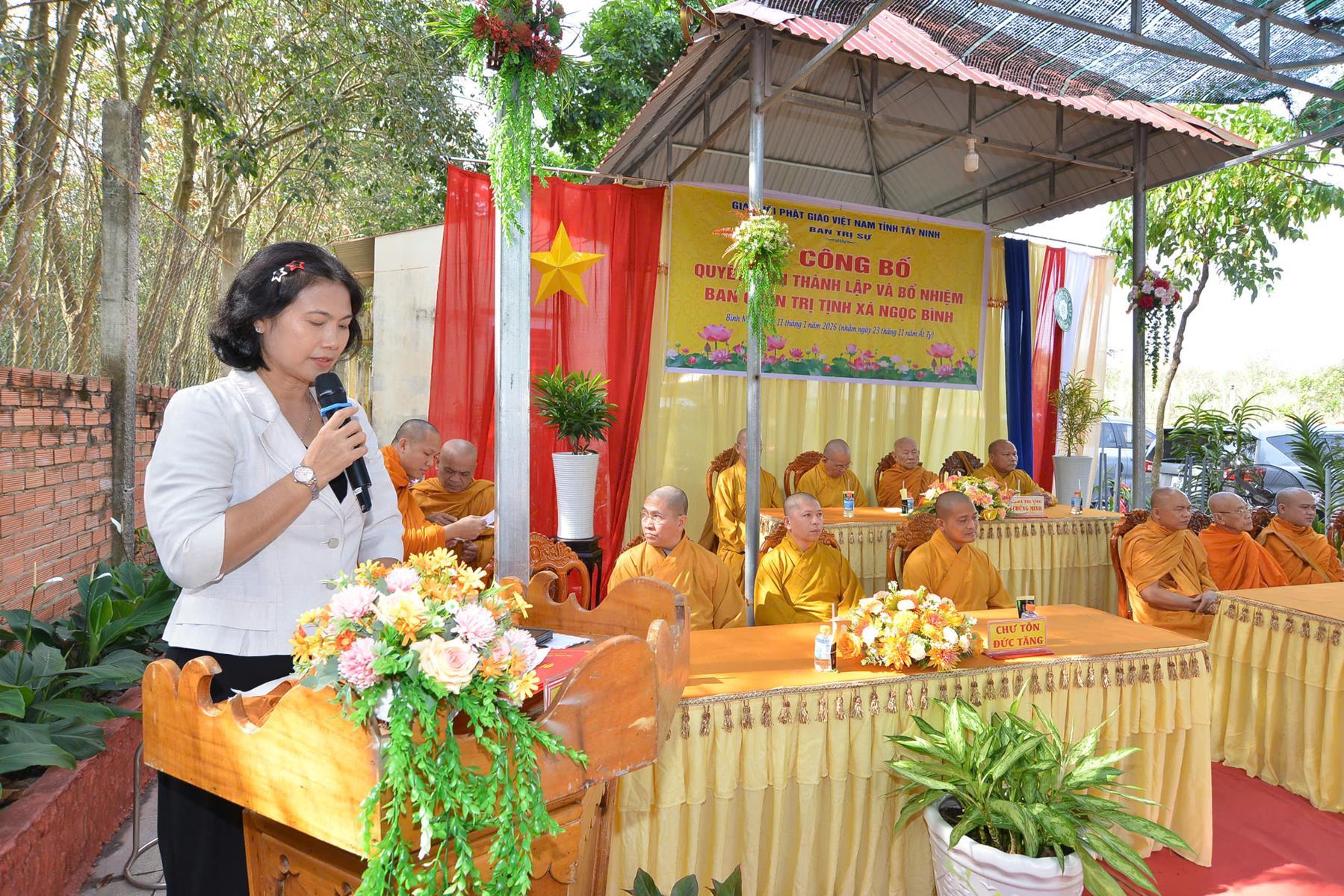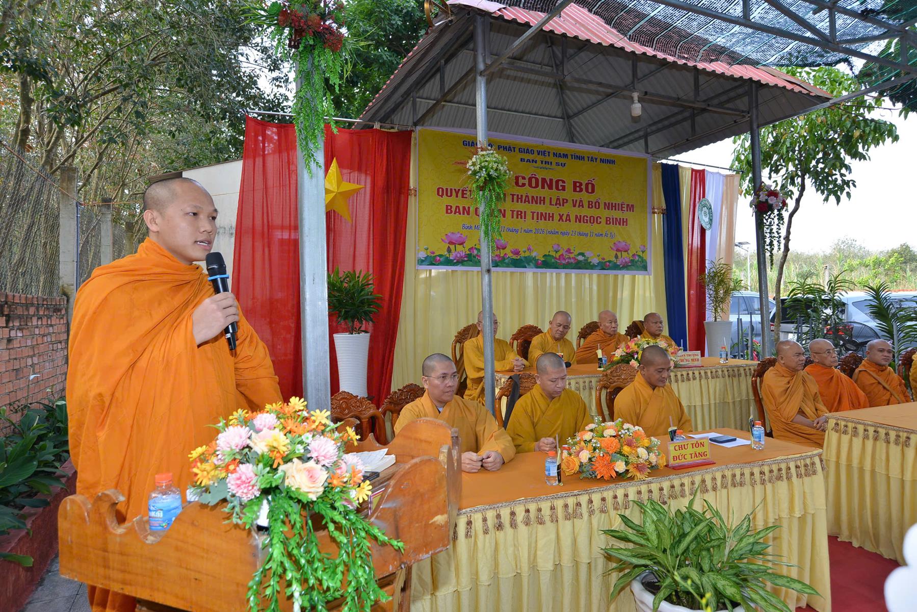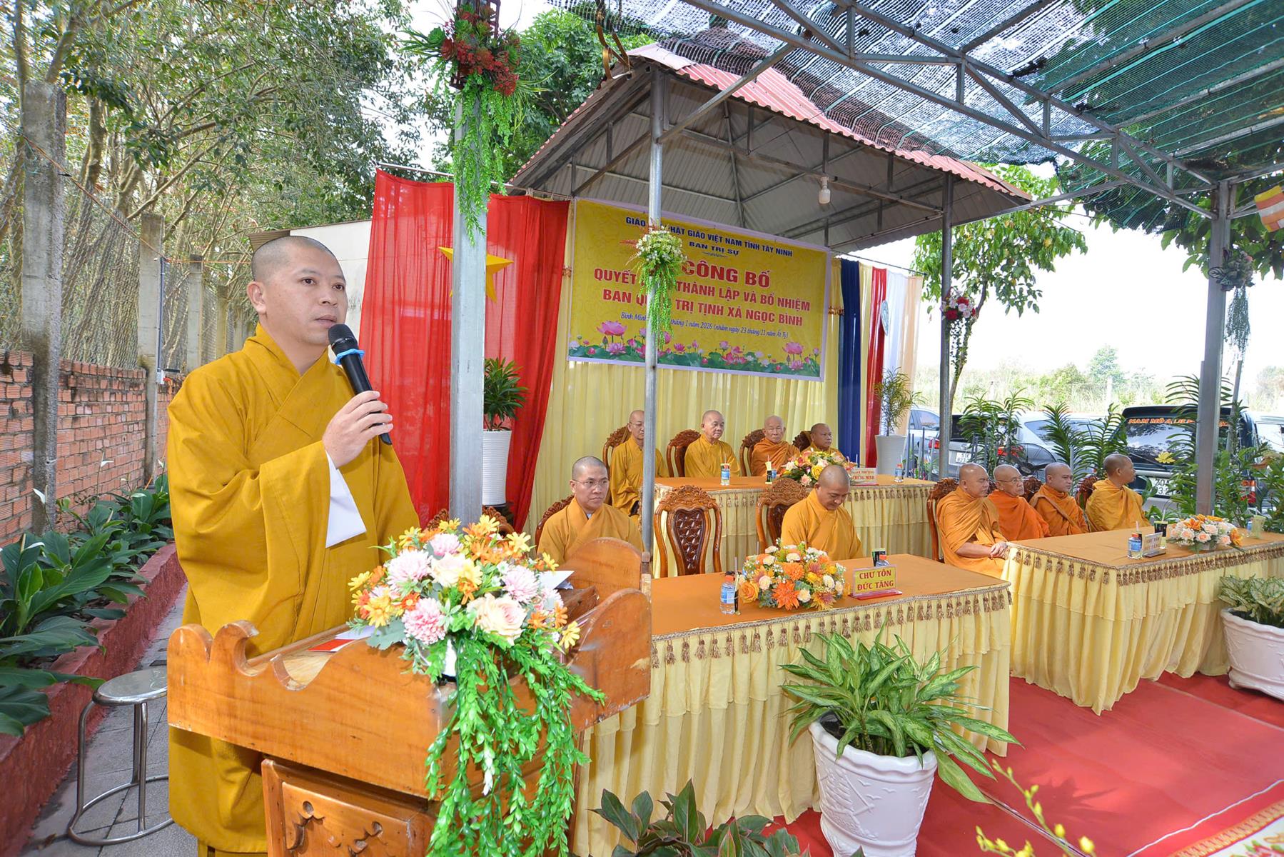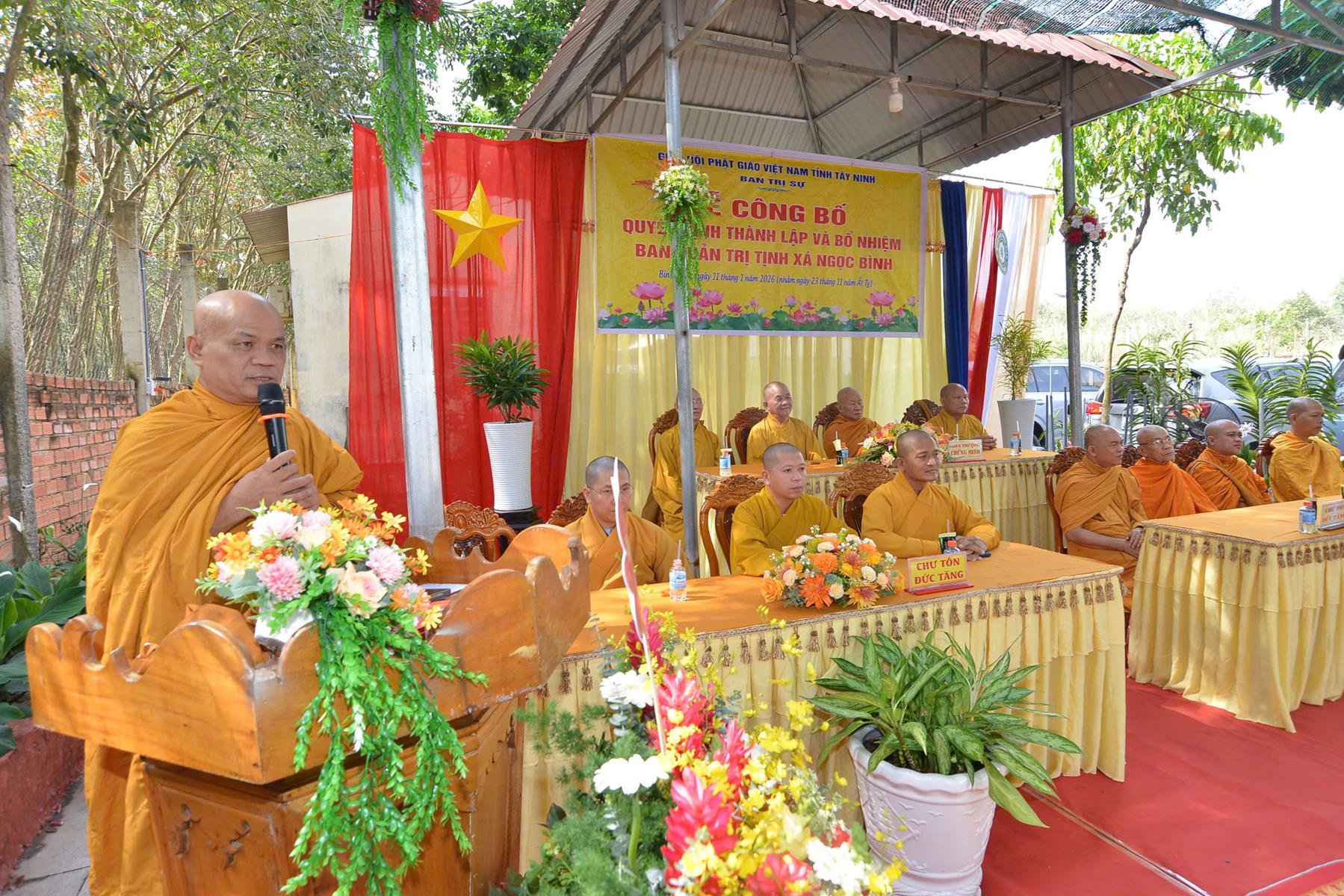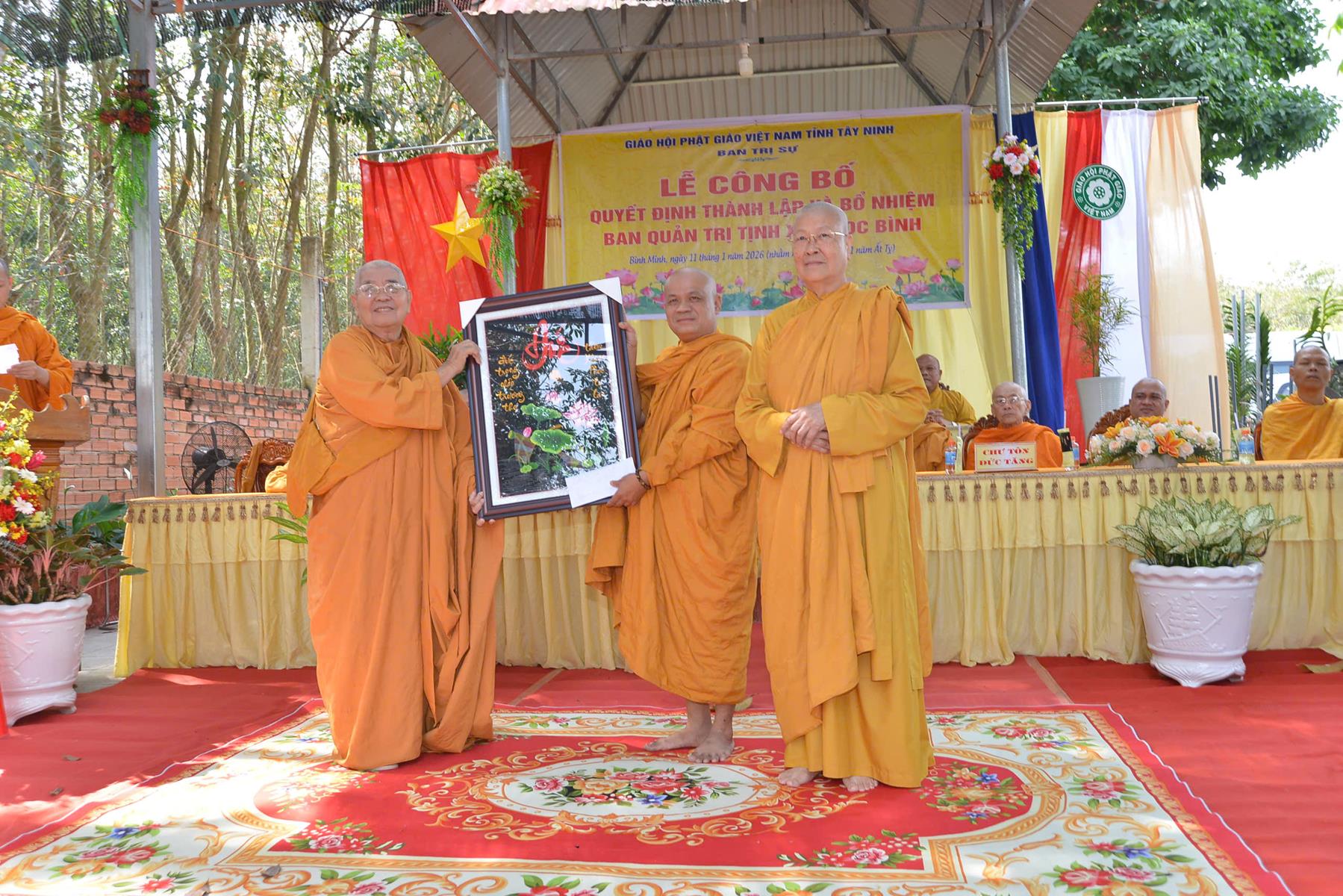 Sáng ngày 11/01/2026 (nhằm ngày 23/11/Ất Tỵ), Ban Trị sự GHPGVN tổ chức Lễ công bố quyết định thành lập và bổ nhiệm Ban Quản trị Tịnh xá Ngọc Bình, khu phố Bàu Lùn, phường Bình Minh, tỉnh Tây Ninh.