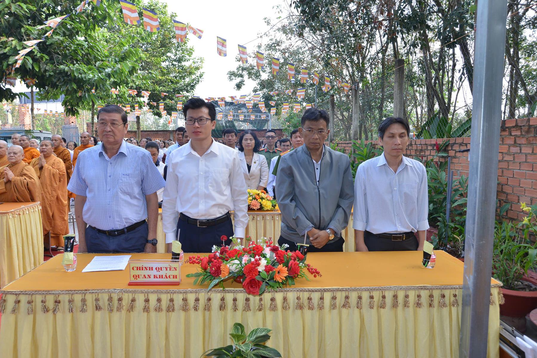 Về phía các cấp lãnh đạo chính quyền có: ông Trần Minh Nay – Phó Giám đốc Sở Dân tộc và Tôn giáp tỉnh; ông Châu Trần Nhật Minh – Phó ban Tuyên giáo và Công tác Xã hội UB MTTQVN tỉnh; ông Trần Minh Đông – Phó Trưởng phòng An ninh Nội địa Công an tỉnh; bà Nguyễn Thị Thanh Thúy – Phó Bí thư Thường trực Đảng ủy phường Bình Minh; bà Lê Thị Ngọc Diễm – Chủ tịch UBMTTQVN phường Bình Minh; cùng đại diện các cấp chính quyền tỉnh Tây Ninh, phường Bình Minh sở tại.