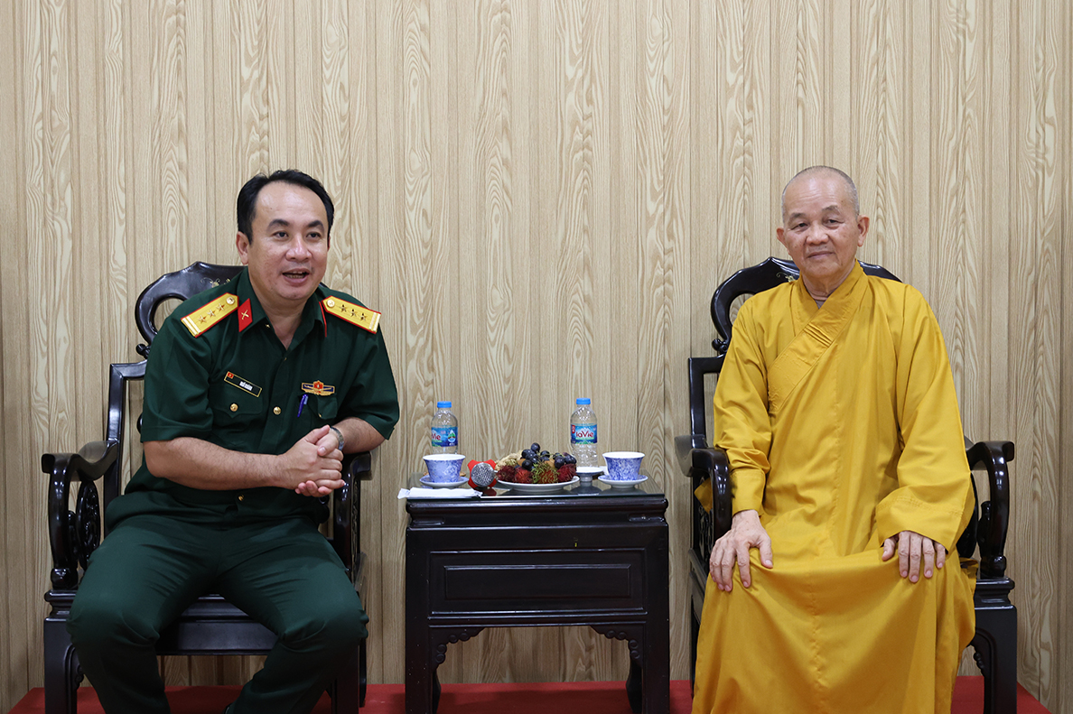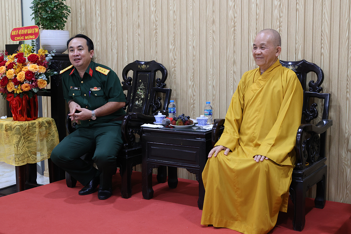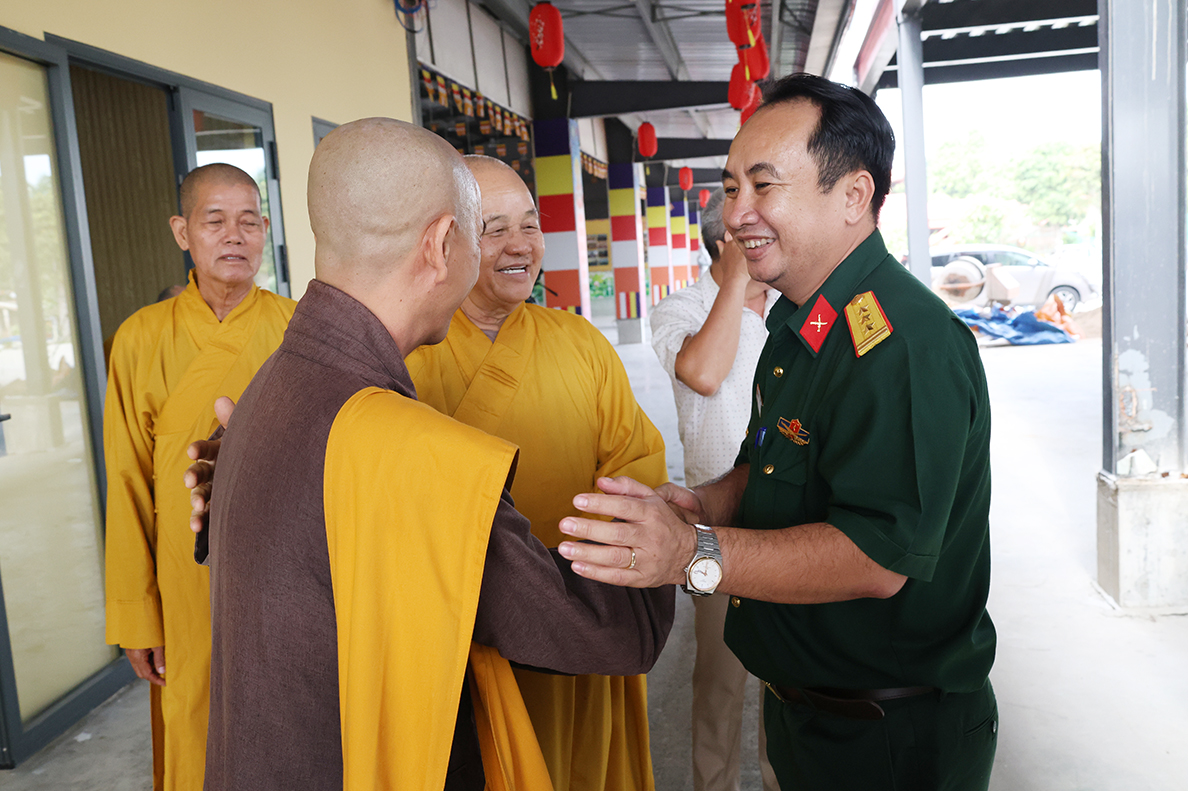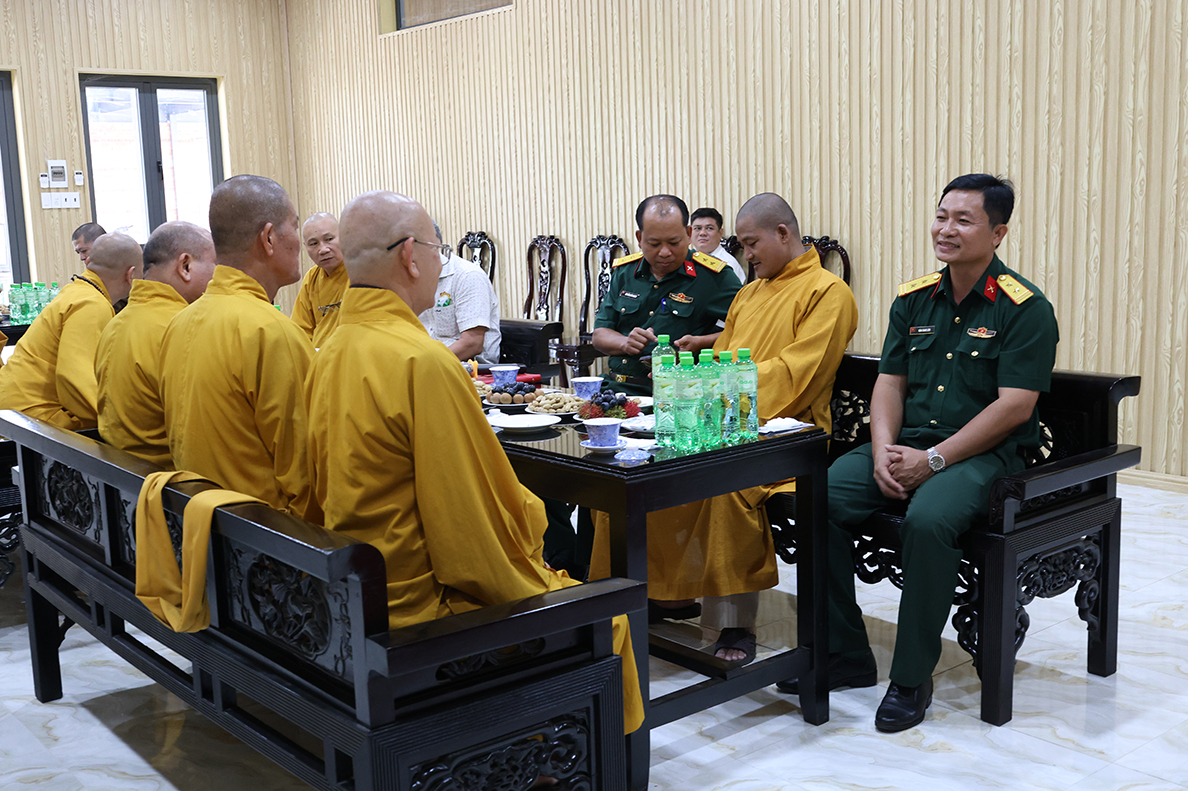 Tại buổi gặp mặt, Thượng tá Ngô Khánh – Phó Chính ủy Bộ CHQS tỉnh gửi lời chúc mừng đến chư tôn đức tăng ni, phật tử tỉnh nhà nhân dịp tổ chức thành công công tác sắp xếp lại tổ chức bộ máy của Ban Trị sự sau khi điều chỉnh địa giới hành chính, thực hiện chính quyền 2 cấp của Đảng và Nhà nước.