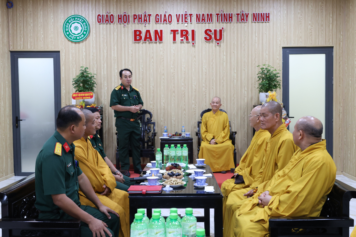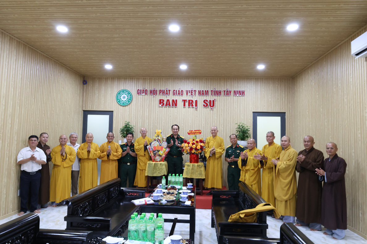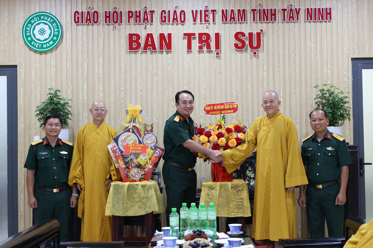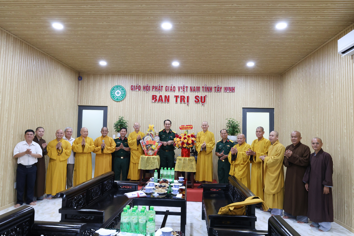 Chiều 06/8/ 2025( 13 / 06 nhuận Ất tỵ) Đoàn công tác của Bộ Chỉ huy Quân sự (CHQS) tỉnh Tây Ninh do Thượng tá Ngô Khánh – Phó Chính ủy Bộ CHQS tỉnh làm trưởng đoàn đến thăm, chúc mừng Ban Trị sự Giáo hội Phật giáo Việt Nam tỉnh Tây Ninh nhân dịp tổ chức lại Ban trị sự sau sắp xếp địa giới hành chính và thực hiện chính quyền 2 cấp.