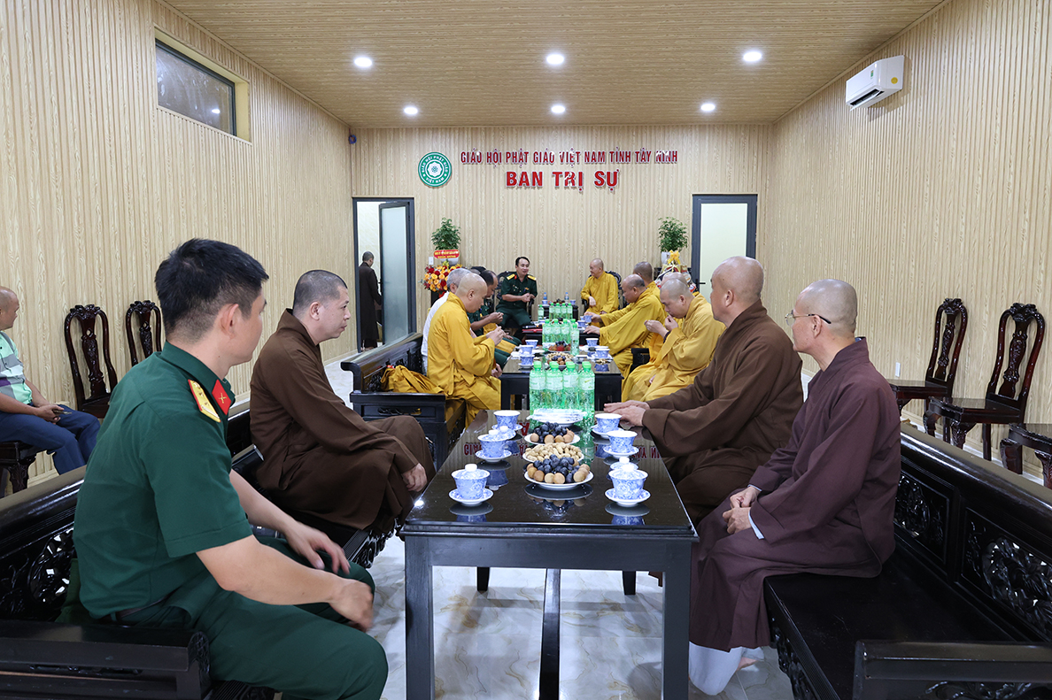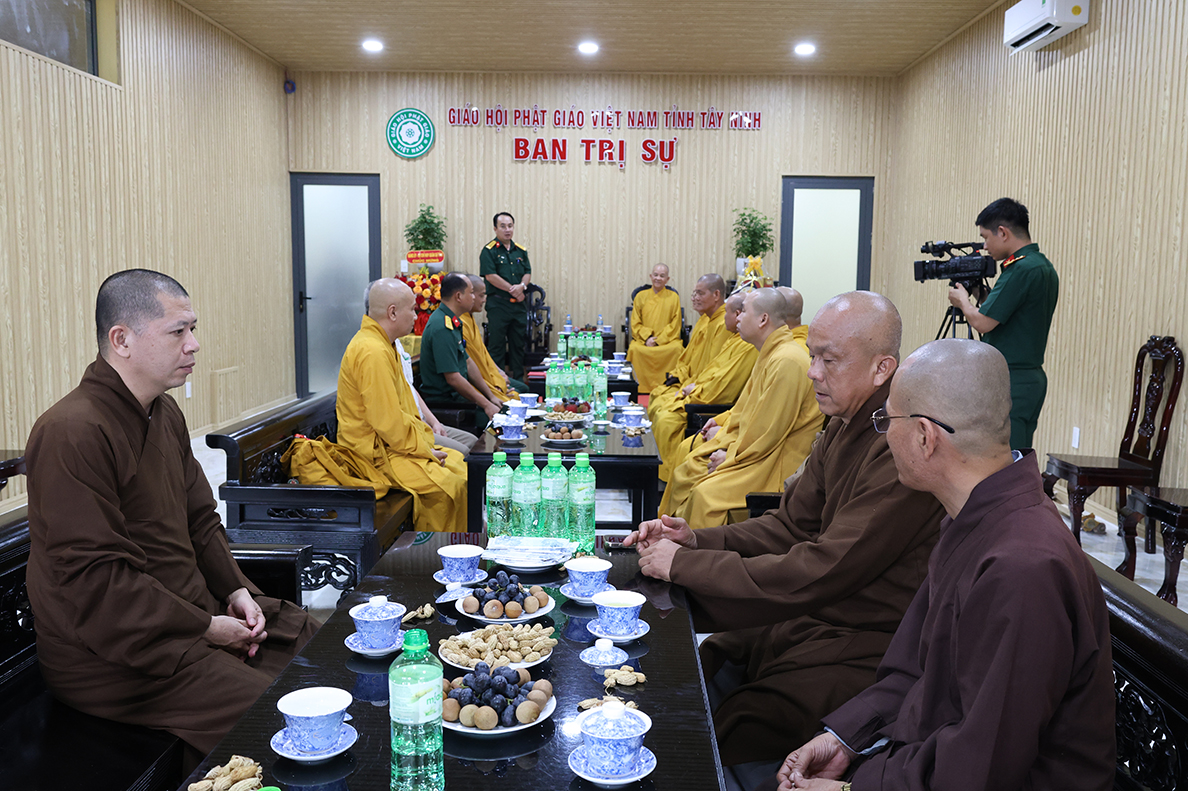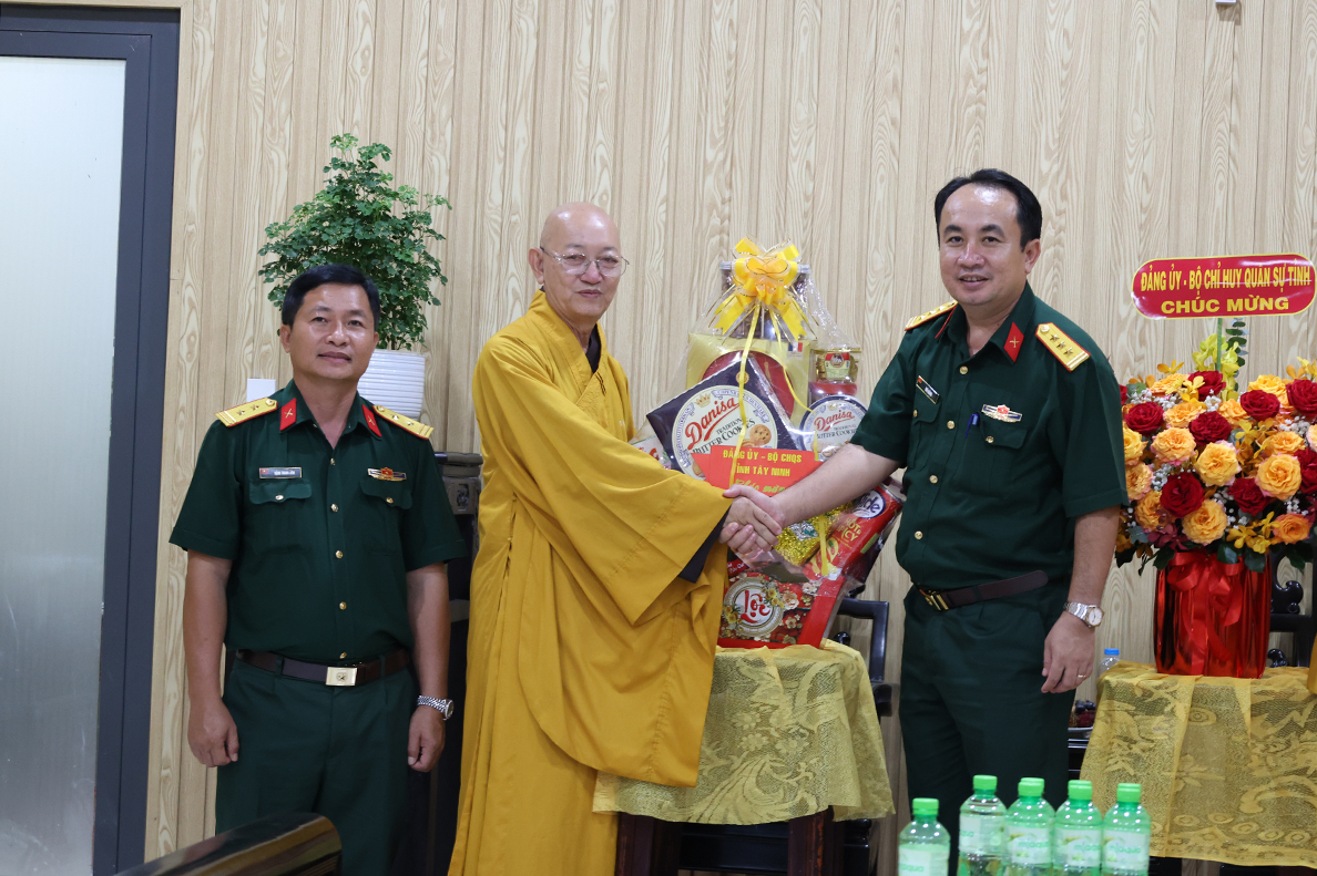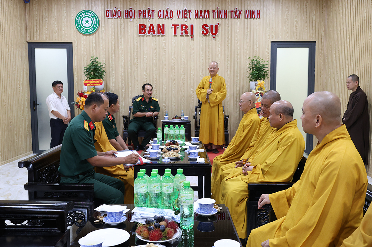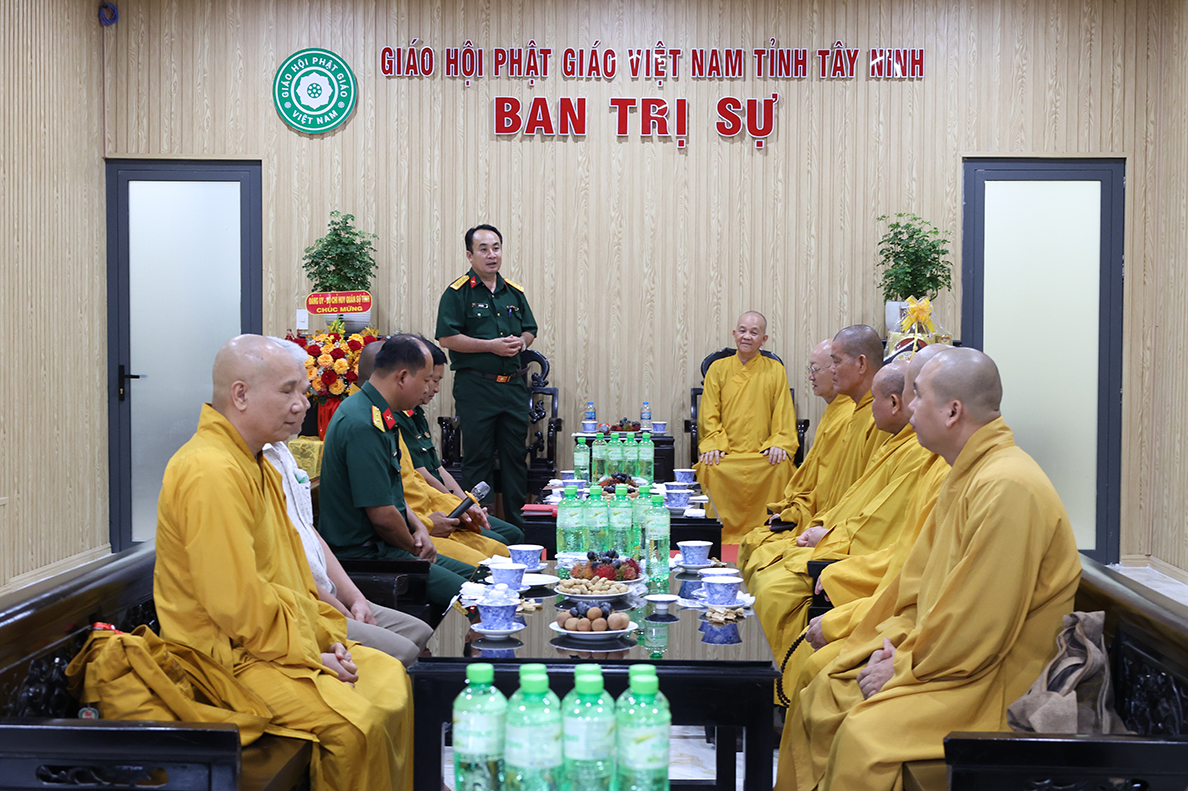 Chiều 06/8/ 2025( 13 / 06 nhuận Ất tỵ) Đoàn công tác của Bộ Chỉ huy Quân sự (CHQS) tỉnh Tây Ninh do Thượng tá Ngô Khánh – Phó Chính ủy Bộ CHQS tỉnh làm trưởng đoàn đến thăm, chúc mừng Ban Trị sự Giáo hội Phật giáo Việt Nam tỉnh Tây Ninh nhân dịp tổ chức lại Ban trị sự sau sắp xếp địa giới hành chính và thực hiện chính quyền 2 cấp.