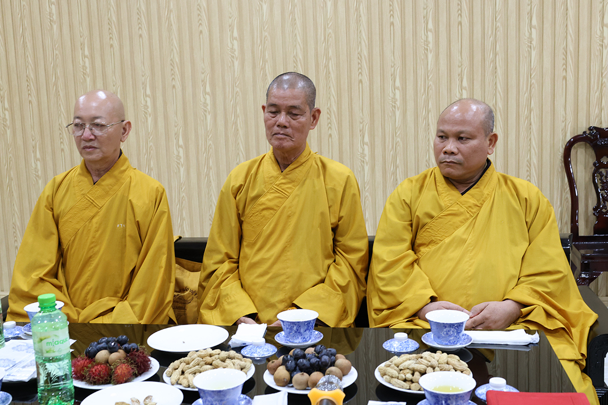 Tiếp đón phái đoàn có Hòa thượng Thích Minh Thiện – Ủy viên HĐTSTƯ, Phó Ban Hoằng pháp GHPGVN, Cố vấn chứng minh Ban Trị sự Giáo hội Phật giáo Việt Nam ; TT. Thích Quảng Tâm – UV HĐTS, Phó ban Từ thiện xã hội TƯ, Trưởng BTS GHPGVN tỉnh Tây Ninh; TT. Thích Thiện Thức – UV HĐTS, Phó Trưởng ban Thường trực BTS GHPGVN tỉnh Tây Ninh; Cùng chư tôn đức trong thường trực Ban Trị sự Phật giáo tỉnh.