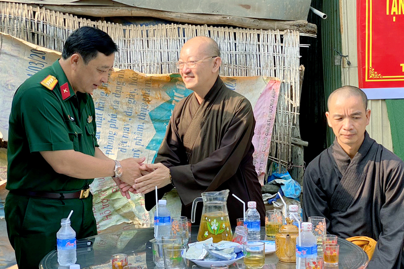 Thay lời cho Ban Trị sự Phật giáo Long An, Thượng tọa Thích Quảng Tâm đã cám ơn các anh bộ đội cụ Hồ thời gian qua đã vất vả đầu tuyến chống dịch Covid – 19, nay lại tiếp tục lo cho nhân dân, giúp đồng bào ở huyện biên giới sớm ổn định cuộc sống.