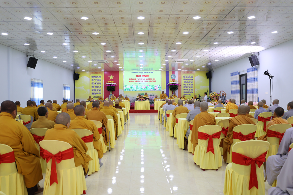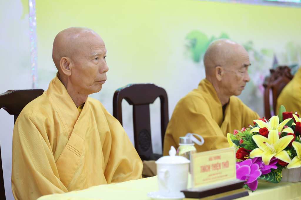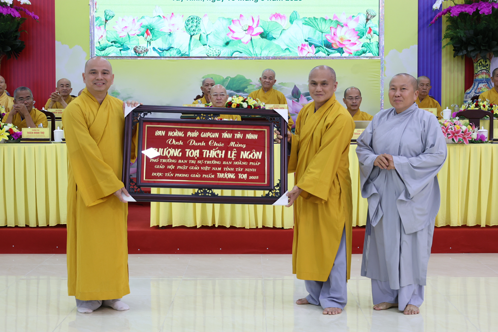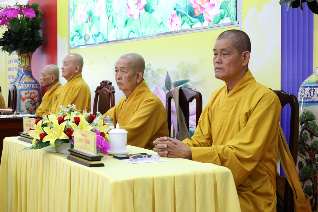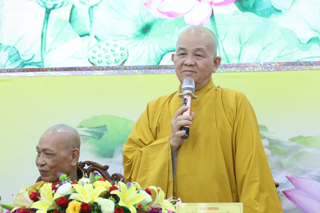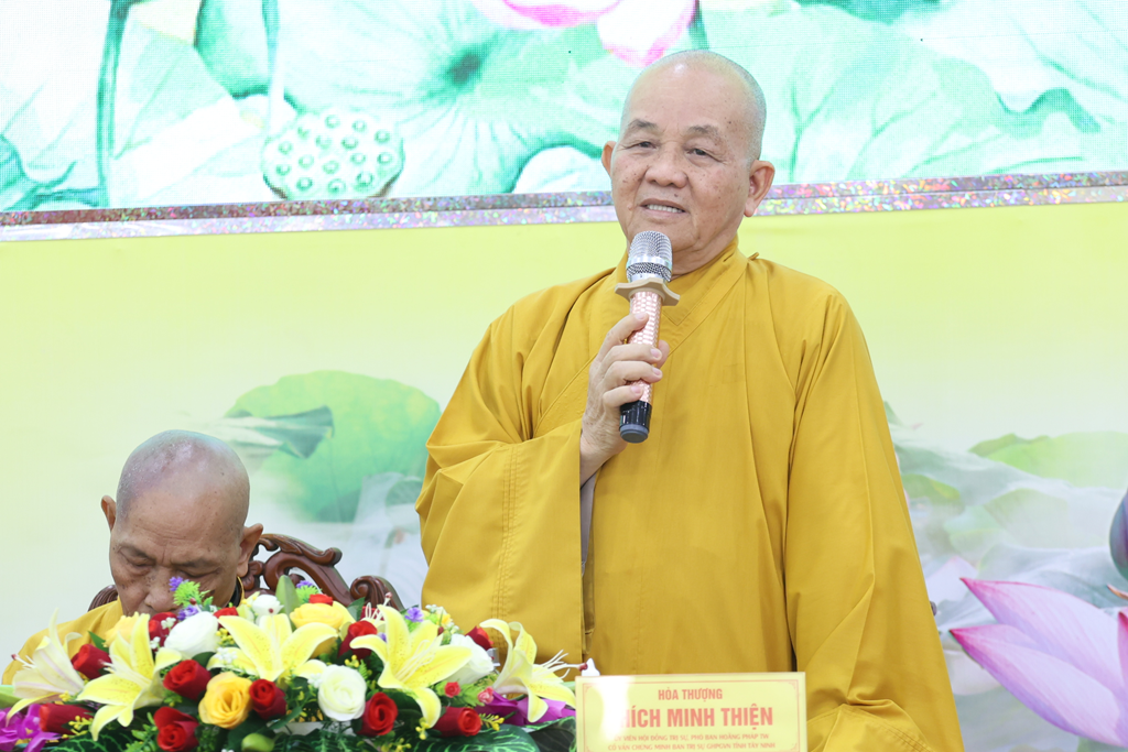 Dịp này, Hòa thượng cũng chúc mừng Chư vị Tôn đức được tấn phong giáo phẩm vừa rồi, đồng thời tán thán công đức của chư Tôn đức qua nhiều nhiệm kỳ đã dày công đóng góp, làm rạng danh Phật giáo Tây Ninh như ngày hôm nay. Đồng thời, Hòa thượng nhấn mạnh tâm nguyện và lý tưởng của người xuất gia là thừa hành Phật sự, phụng sự Đạo pháp và Dân tộc, hy vọng Chư Tôn đức tiếp tục phát huy, chung tay xây dựng Giáo hội ngày càng trang nghiêm, phát triển.