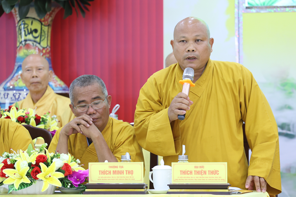 TT. Thích Quảng Tâm – Trưởng BTS GHPGVN tỉnh đã có phát biểu đúc kết hội nghị, ghi nhận và tán thán những ý kiến đóng góp của chư Tôn đức; đồng thời nhấn mạnh một số nhiệm vụ trọng tâm trong thời gian tới, đặc biệt là công tác chuẩn bị cho Đại hội Đại biểu Phật giáo tỉnh Tây Ninh lần thứ I, nhiệm kỳ 2026 – 2031.