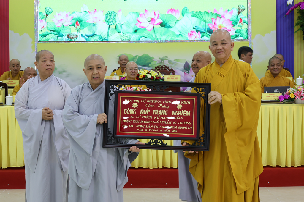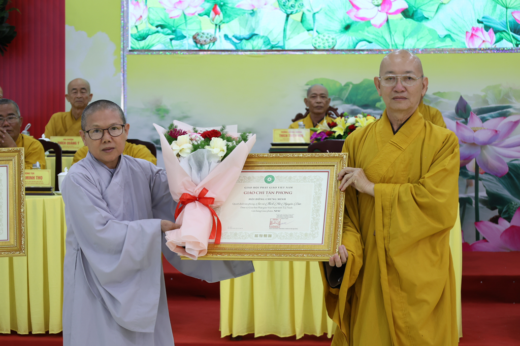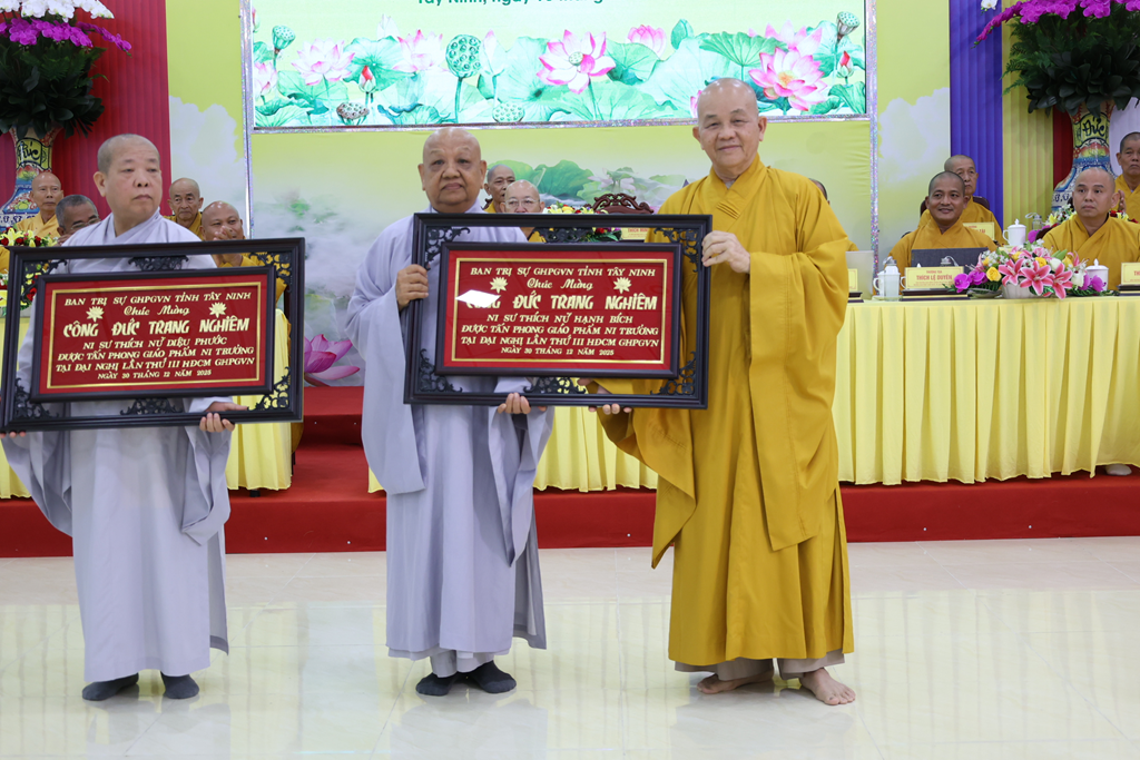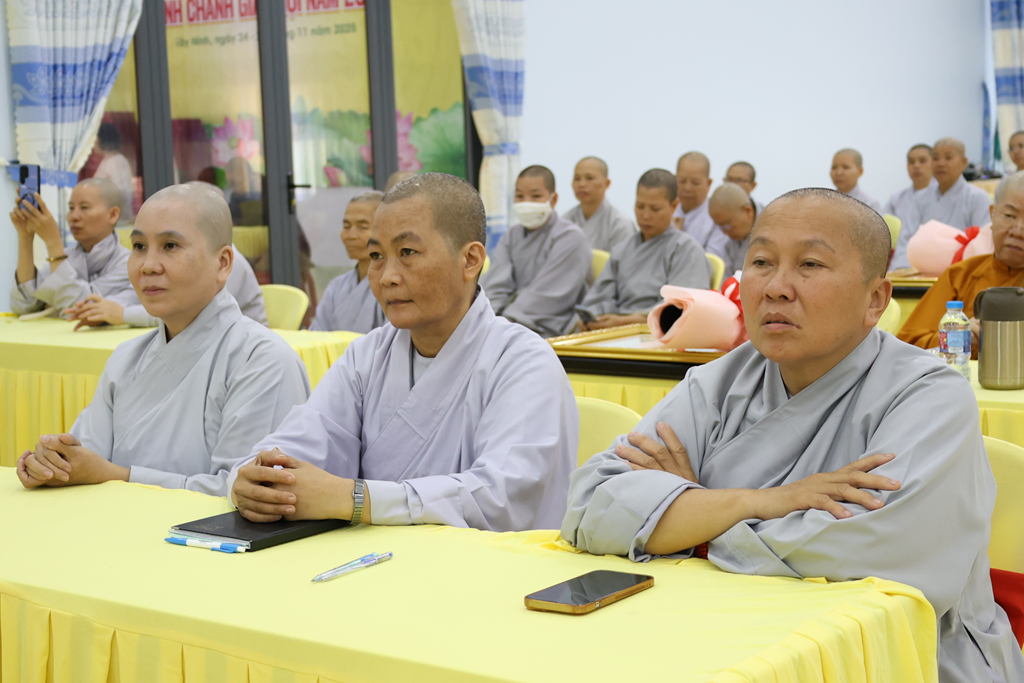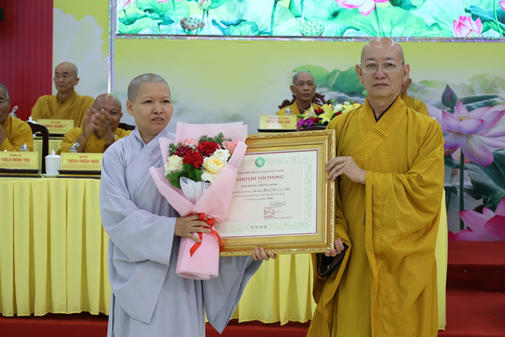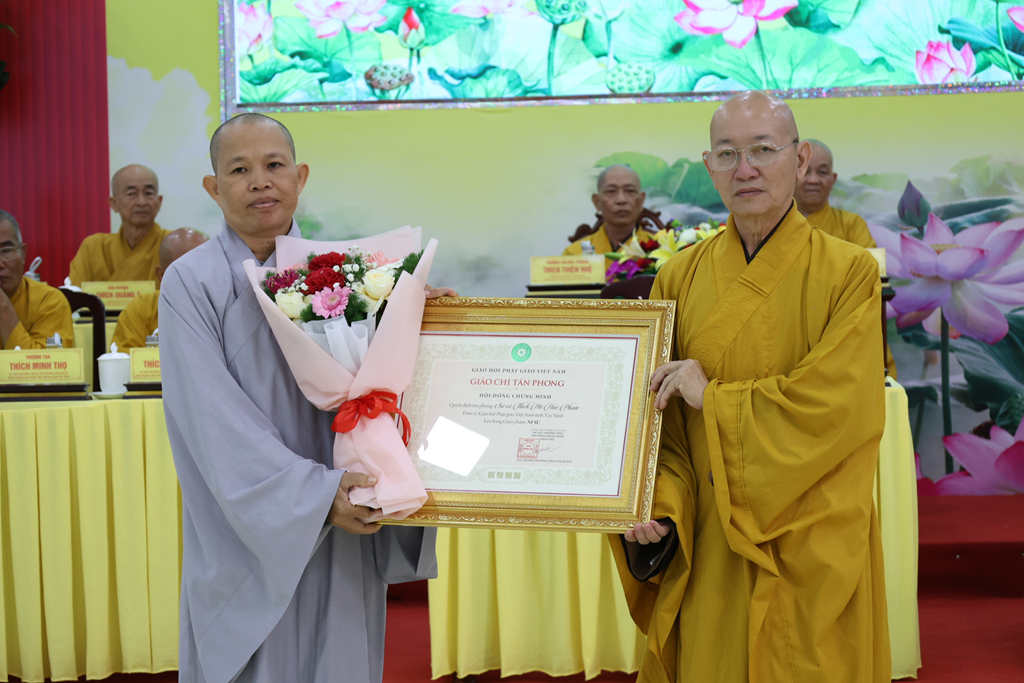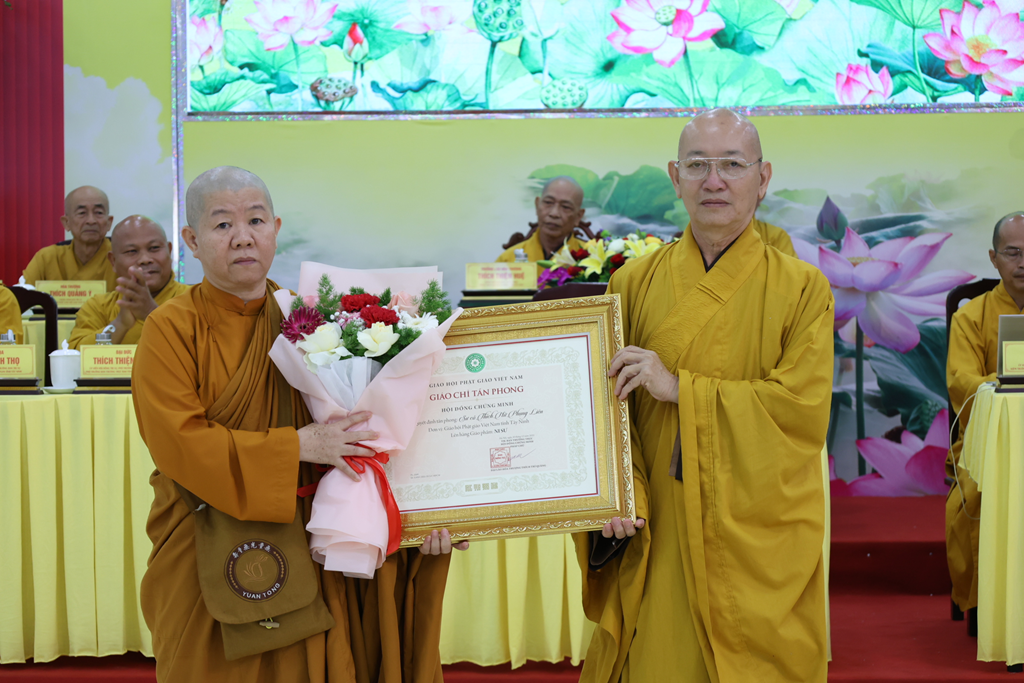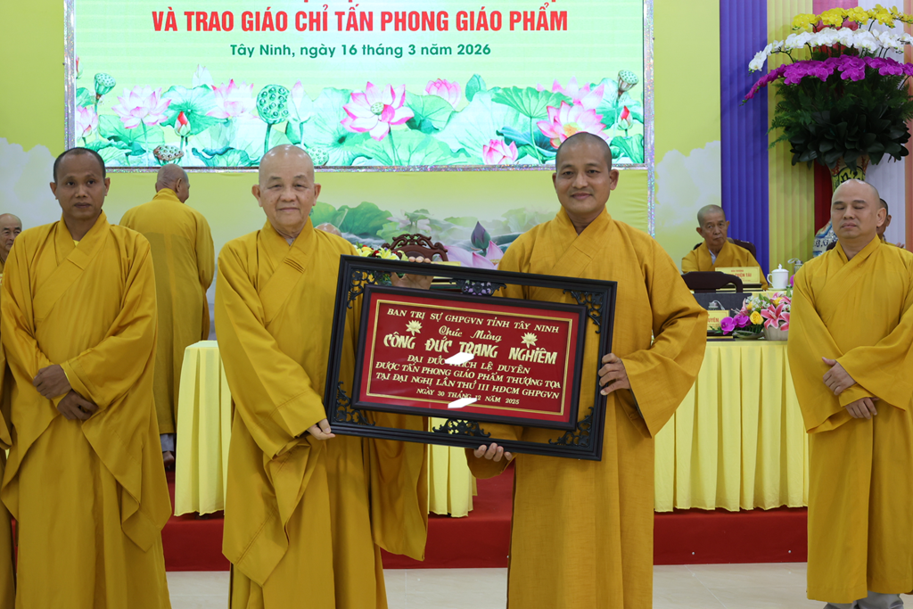 Dịp này, Đại đức Thích Thiện Danh thay mặt bộ phận Thư ký – Văn phòng thông qua Quyết định tấn phong Giáo phẩm số 29 của Hội đồng Chứng minh GHPGVN tại Đại nghị kỳ 3, khóa IX do ĐLHT. Thích Trí Quảng – Pháp chủ HĐCM GPGVN ấn ký. Theo Quyết định, Phật giáo Tây Ninh có 16 Chư Tôn đức được tấn phong giáo phẩm: 4 vị Thượng tọa, 4 vị Ni trưởng, 8 vị Ni sư.