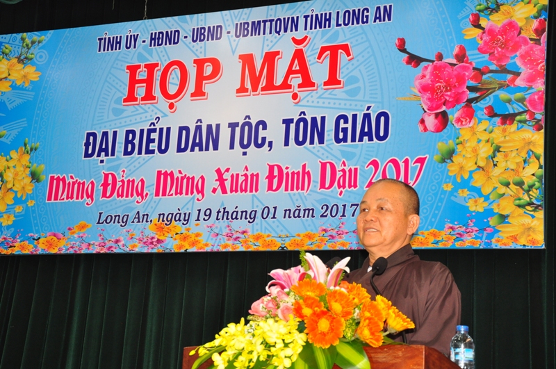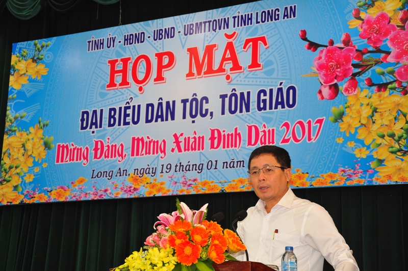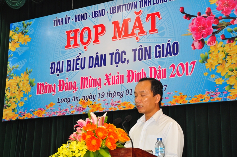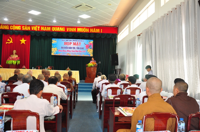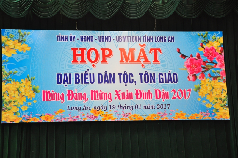 Sáng ngày 19/1/2017, tại Hội trường Tỉnh uỷ tỉnh Long An, buổi họp mặt đại biểu tôn giáo, dân tộc mừng Đảng, mừng xuân Đinh Dậu năm 2017 do Tỉnh uỷ, HĐND, UBND, UBMTTQVN tỉnh Long An tổ chức.