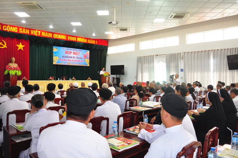 Chủ trì buổi họp mặt gồm có: bà Nguyễn Thị Ngọc Hạnh – UV TV Tỉnh uỷ, Trưởng ban Dân vận Tỉnh uỷ, Chủ tịch UBMTTQVN tỉnh Long An; bà Phạm Ngọc Tiệp – Phó chủ tịch UBMTTQVN tỉnh Long An, ông Mai Văn Nhiều – Tỉnh uỷ viên, Chánh văn phòng UBND tỉnh Long An; ông Huỳnh Văn Thừng – Trưởng ban Tôn giáo Dân tộc tỉnh Long An và sự hiện hiện của đại diện các ban ngành.