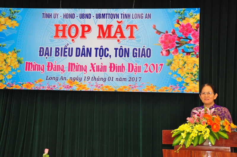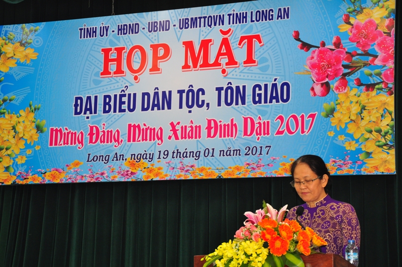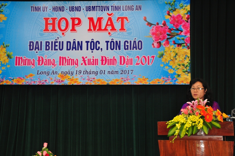 Bà Nguyễn Thị Ngọc Hạnh – UV TV Tỉnh uỷ, Trưởng ban Dân vận Tỉnh uỷ, Chủ tịch UBMTTQVN tỉnh Long An phát biểu khai mạc đã ghi nhận những sự đóng góp to lớn của đồng bào tôn giáo và dân tộc đã góp phần vào thành tựu của tỉnh Long An năm 2016. Bà tin tưởng sự đóng góp này sẽ được tăng thêm và nhiều thành tựu đáng kể của tỉnh Long An năm 2017.