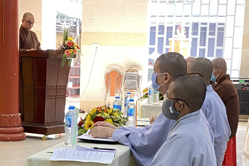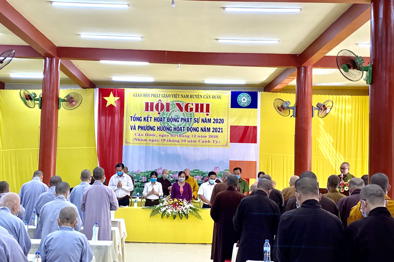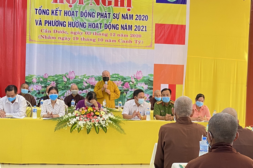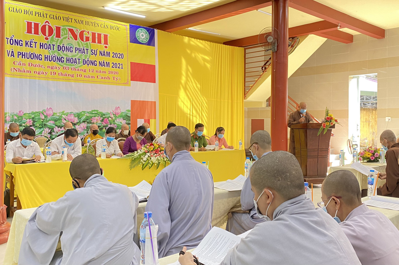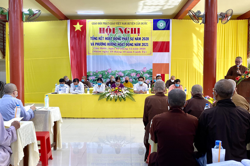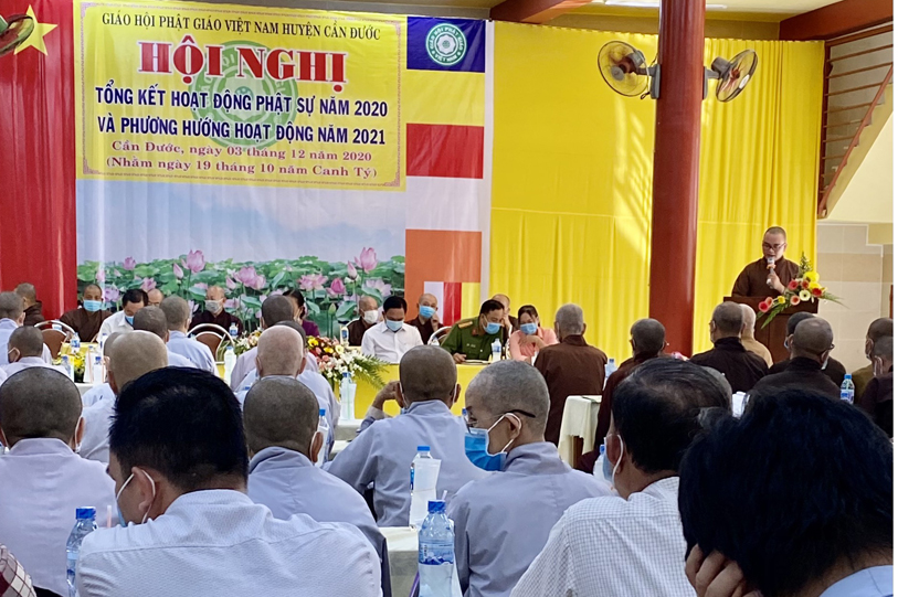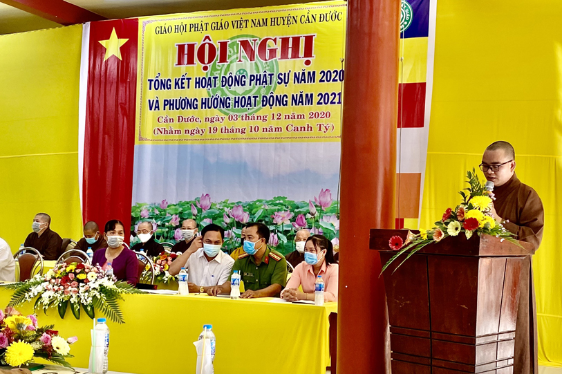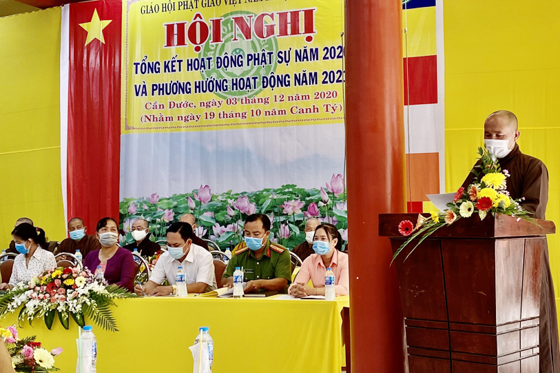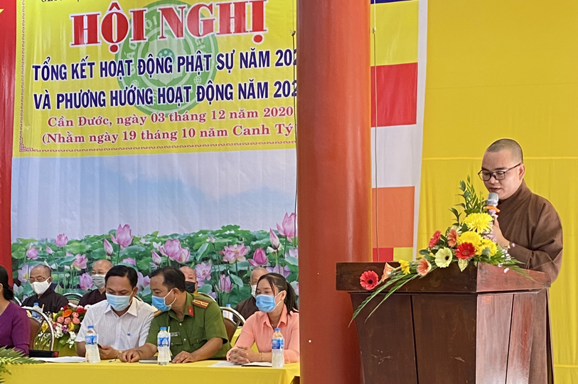 Trong buổi lễ, Đại đức Thích Trí Minh – UV BTS GHPGVN Tỉnh Long An – Phó Thường trực BTS GHPGVN Huyện Cần Đước, đã đại lao chư Tôn đức Thường trực BTS GHPGVN Huyện Cần Đước, báo cáo tổng kết Hoạt động Phật sự của Phật giáo Huyện Cần Đước năm 2020, đồng thời nêu phương hướng hoạt động Phật sự mới năm 2021 của Phật giáo Huyện Cần Đước trong nhiệm kỳ mới sắp đến, bên cạnh đó thông qua danh sách nhân sự Chư tôn đức được hiệp thương ứng cử vào thành viên BTS GHPGVN Huyện Cần đước trong nhiệm kì mới, được sự tán thành của toàn thể chúng hội.