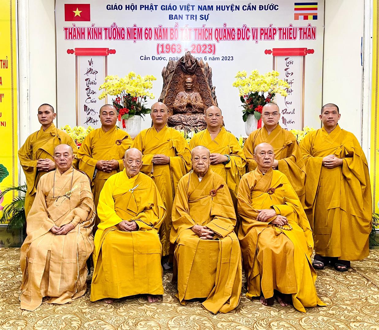 Để tưởng niệm công đức của Bồ tát Thích Quảng Đức đã từ bi phát nguyện lấy thân mình làm ngọn đuốc thiêng, phá tan tăm tối vô minh cuộc đời, giành lấy sự hòa đồng tôn giáo, trong thời khắc thiêng liêng của buổi lễ, Thượng tọa Thích Tâm Hướng – UV BTS GHPGVN tỉnh Long An, Phó Trưởng Ban Thường trực BTS GHPGVN huyện Cần Đước đã cung tuyên Tiểu sử Bồ tát Thích Quảng Đức.