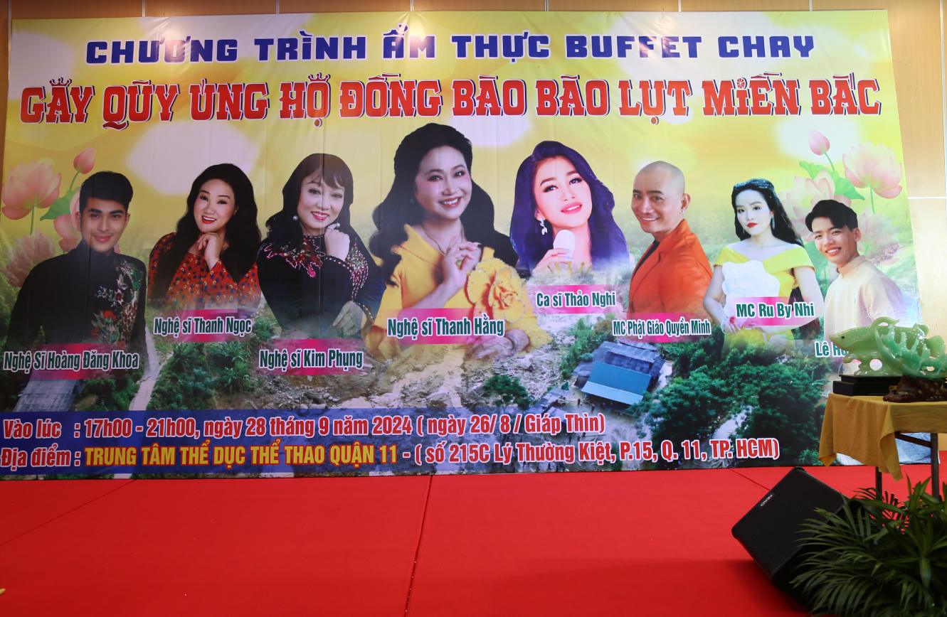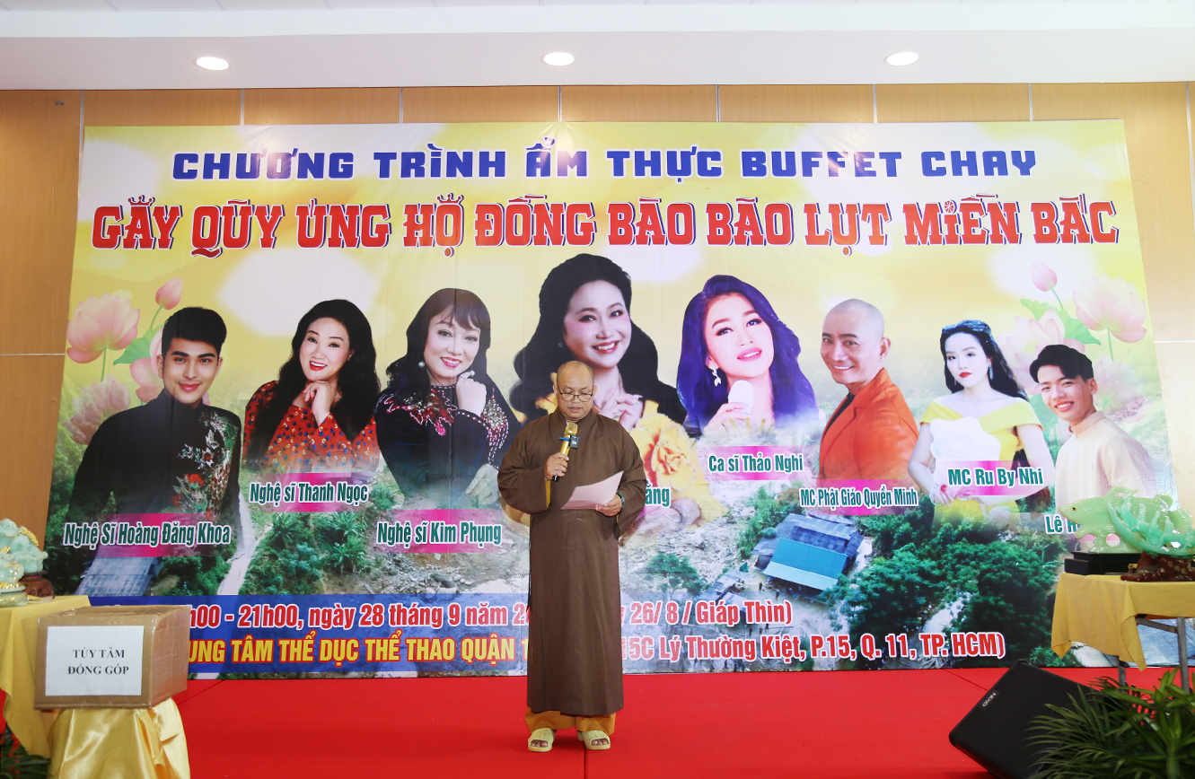 Nhằm tiếp tục hướng đến việc cứu trợ đồng bào miền Bắc chịu thiệt hại nặng nề do cơn bão số 3 ( Yagi) gây ra, tích cực vận động gây quỹ để hướng đoàn chuyến cứu trợ “ Thương về miền Bắc lần 2, BTS GHPGVN huyện Cần Đước – Phân Ban Ni giới huyện Cần Đước đã tổ chức tiệc Buffet gây quỹ hướng về đồng bào miền bắc bị bão lụt vào chiều ngày 28 tháng 9 năm 2024 tại Trung Tâm Dịch vụ Thể dục Thể thao quận 11 – số 215C đường Lý Thường Kiệt, Phường 15, Quận 11, TPHCM.