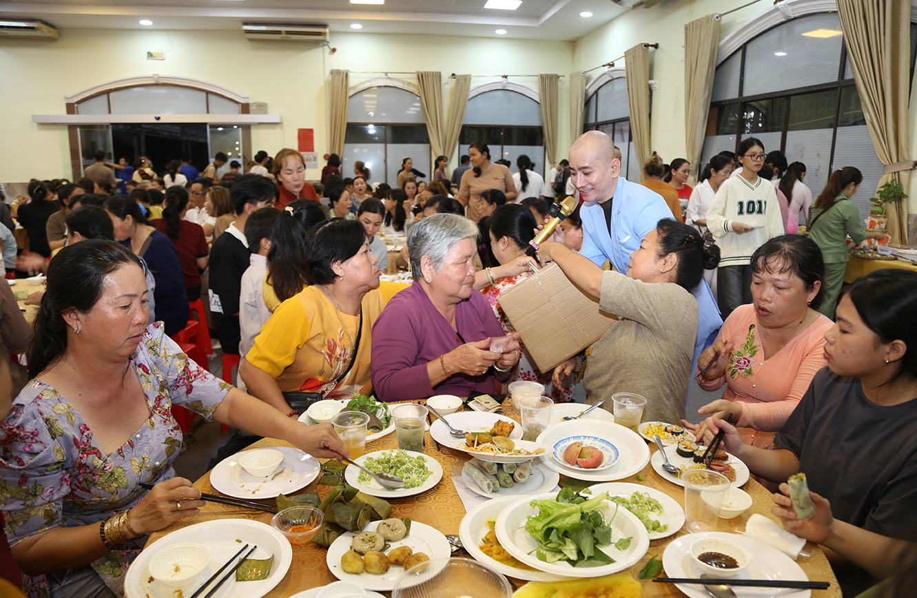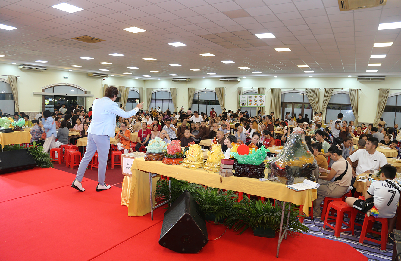Buổi tiệc được diễn ra trong không khí sôi động, với các tiết mục biểu diễn văn nghệ của nhiều nghệ sĩ nổi tiếng, màn đấu giá các hiện vật để gây quỹ, mời quý thực khách dùng các món ăn đặc sắc với hơn 40 món ăn thuần chay.