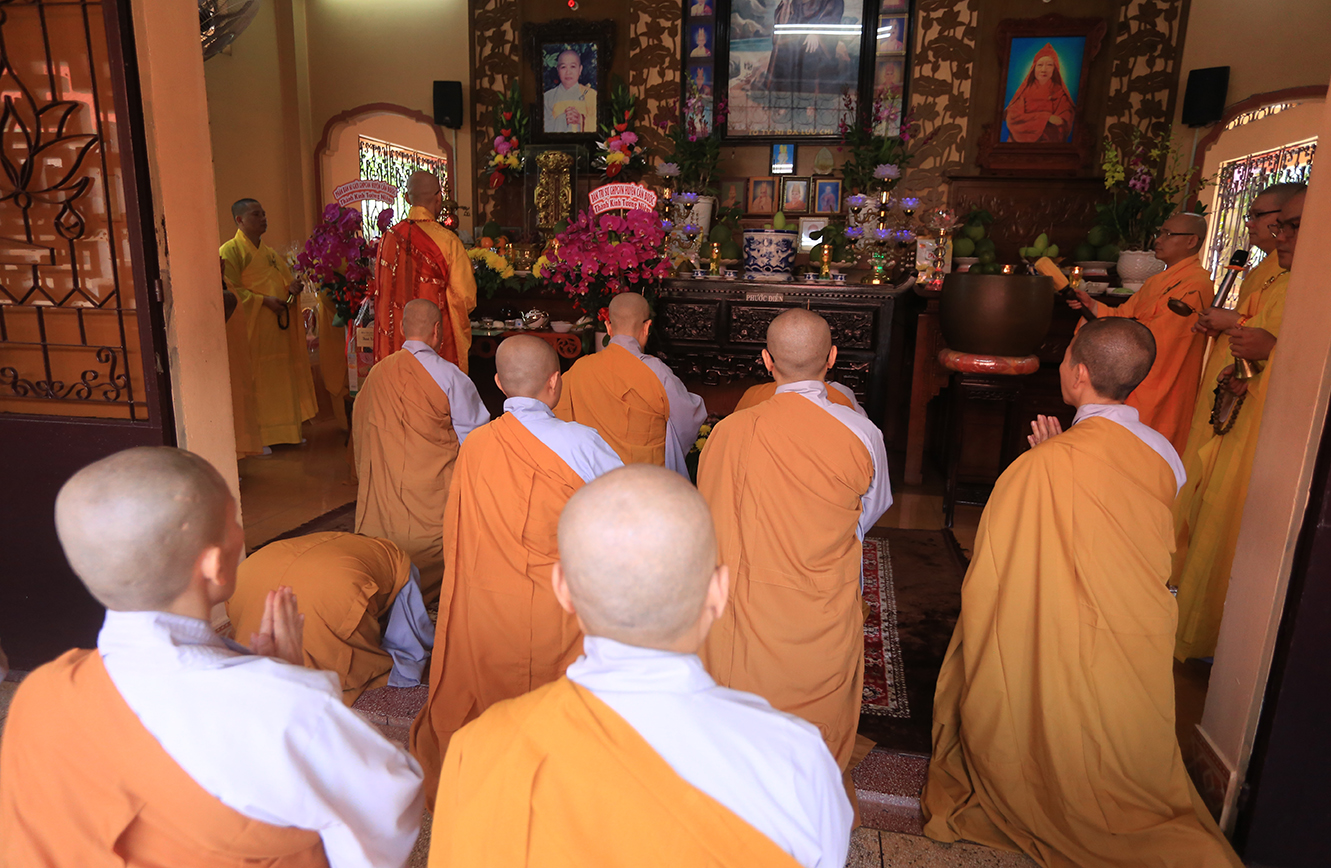 Sau thời cúng ngọ được cử hành tại chánh điện và cung tiến giác linh Cố Ni trưởng Ban tổ chức cung thỉnh thiền chư tôn đức Tăng Ni, Phật tử dâng hương tưởng niệm Giác linh Ni trưởng tại Tổ đường.