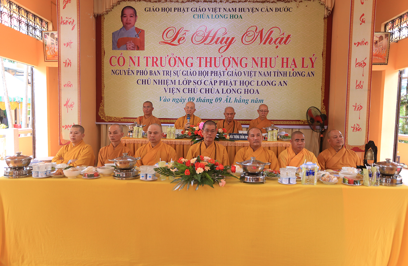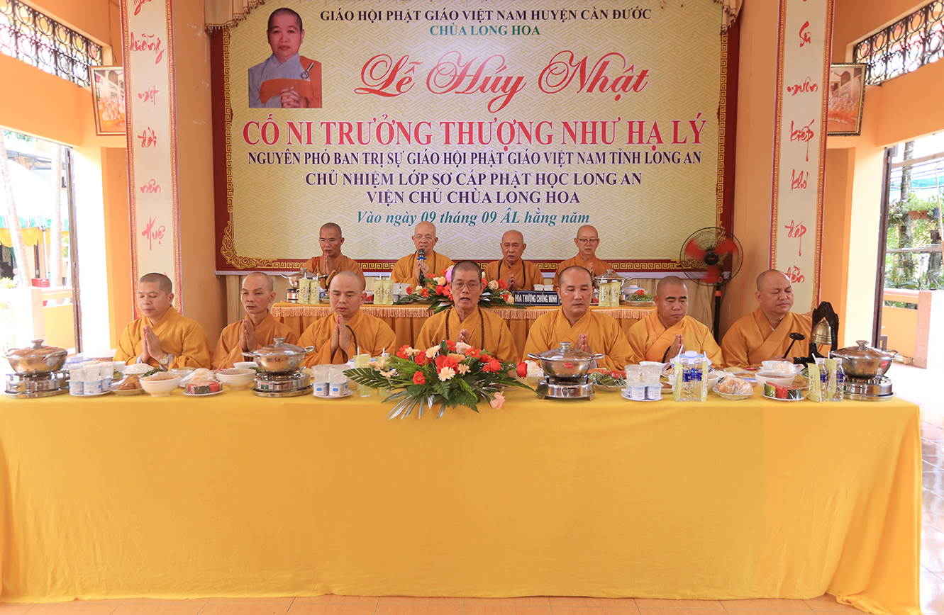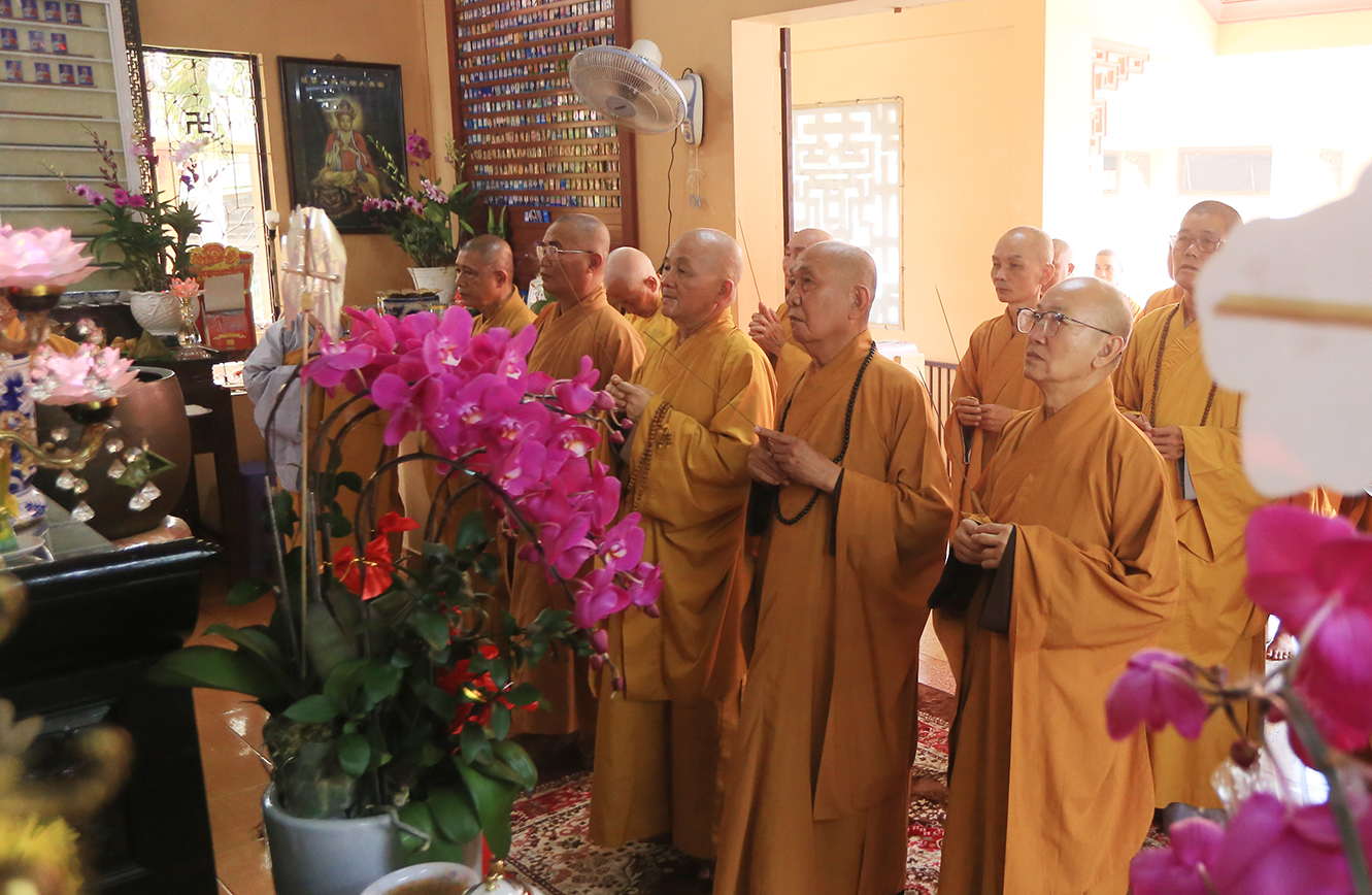 Dâng hương tưởng niệm có Hòa thượng Thích Minh Thiện – UV HĐTS, Phó Trưởng Ban Hoằng pháp TƯ, Trưởng BTS GHPGVN tỉnh Long An; Hòa thượng Thích Tâm Nguyên – Chứng minh BTS GHPGVN huyện Cần Đước; Thượng tọa Thích Quảng Tâm – UV HĐTS, Phó Trưởng Ban Thường trực BTS GHPGVN tỉnh Long An, Thượng tọa Thích Minh Thọ, Đại đức Thích Lệ Ngôn – Đồng Phó Trưởng BTS GHPGVN tỉnh Long An; Đại đức Thích Thiện Danh- Phó chánh thư ký, Chánh Văn phòng BTS GHPGVN tỉnh Long Anl Đại đức Thích Trí Minh – UV Thường trực BTS GHPGVN tỉnh Long An, Trưởng BTS GHPGVN huyện Cần Đước; Thượng tọa Thích Tâm Hướng – UV BTS GHPGVN tỉnh Long An, Phó Trưởng Ban Thường trực BTS GHPGVN huyện Cần Đước, Ni trưởng Thích Nữ Như Xuân – Chứng minh Phân ban Ni giới TƯ GHPGVN; Ni trưởng Thích Nữ Gương Liên – Phó Trưởng BTS GHPGVN tỉnh Long An, Chư Tôn đức Ban Thường trực Ban Trị sự GHPGVN tỉnh Long An, Chư tôn đức các huyện thị trực thuộc Phật giáo tỉnh Long An, cùng Tăng Ni các tổ đình, tự viện, niệm Phật đường trên địa bàn tỉnh.