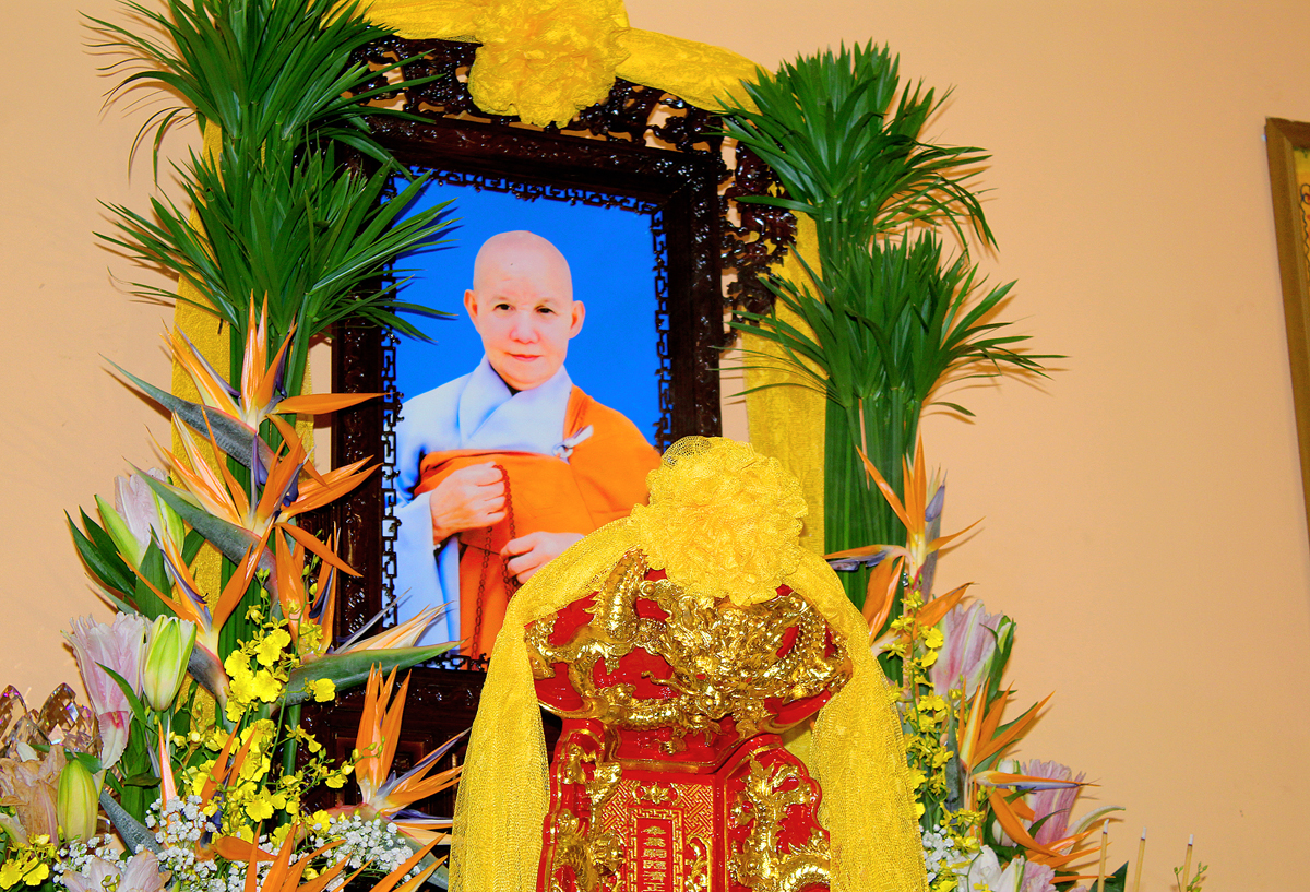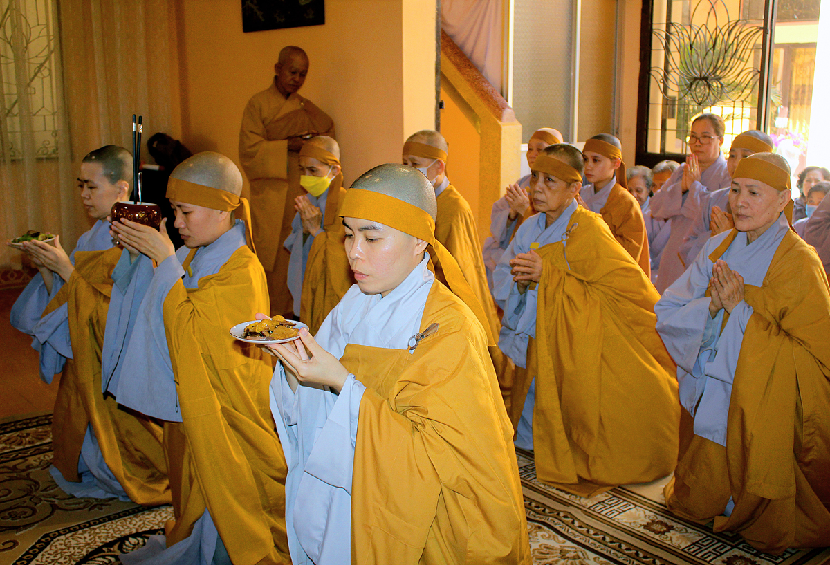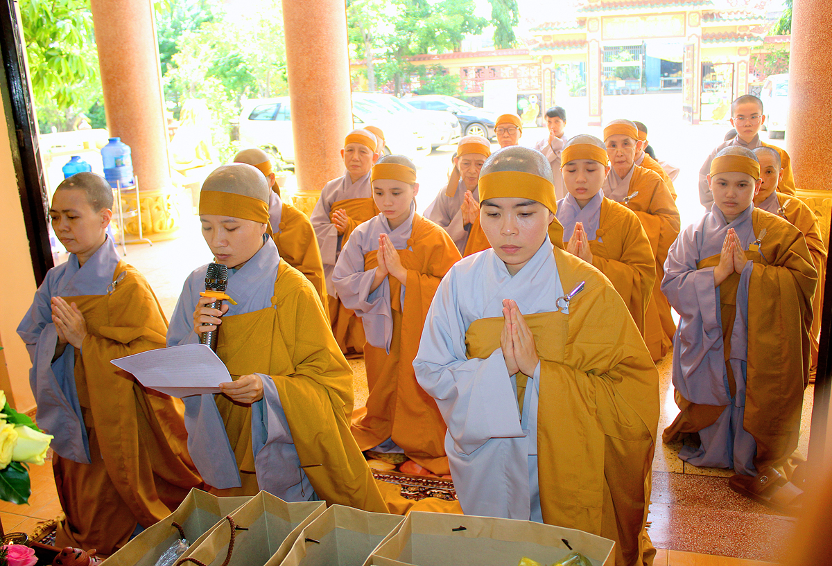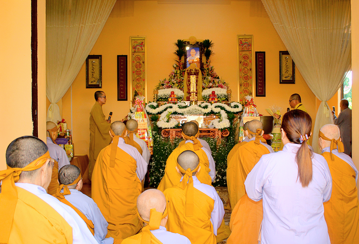 Tại buổi lễ tưởng niệm nhân ngày Bách nhật của cố Ni trưởng; sau khóa kinh cầu nguyện, đảnh lễ chư vị Tổ sư, chư tôn đức trong Ban Kinh sư cung tiến giác linh Ni trưởng.