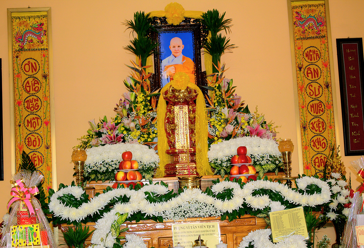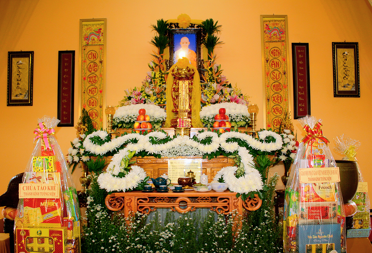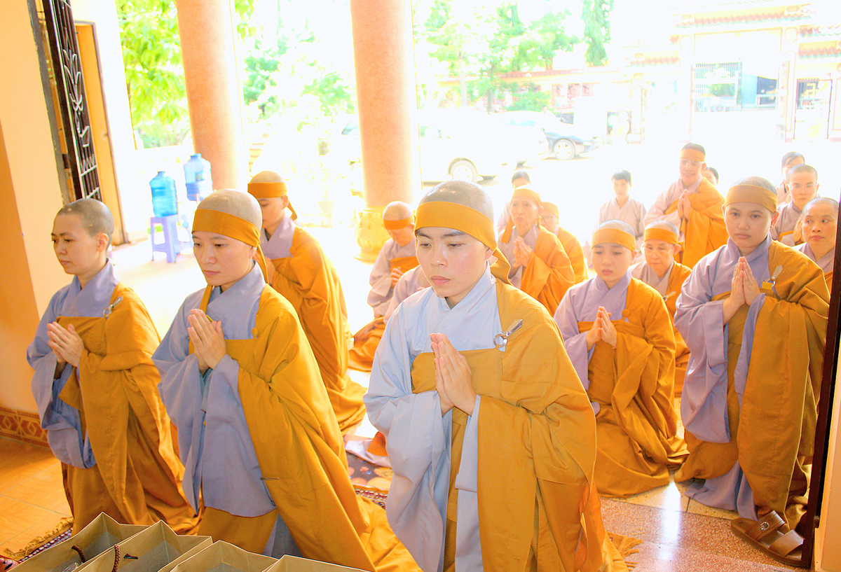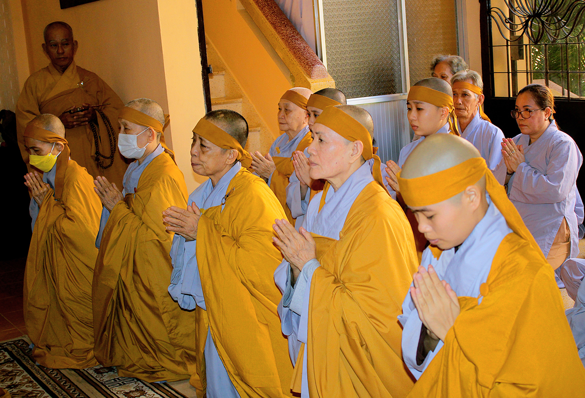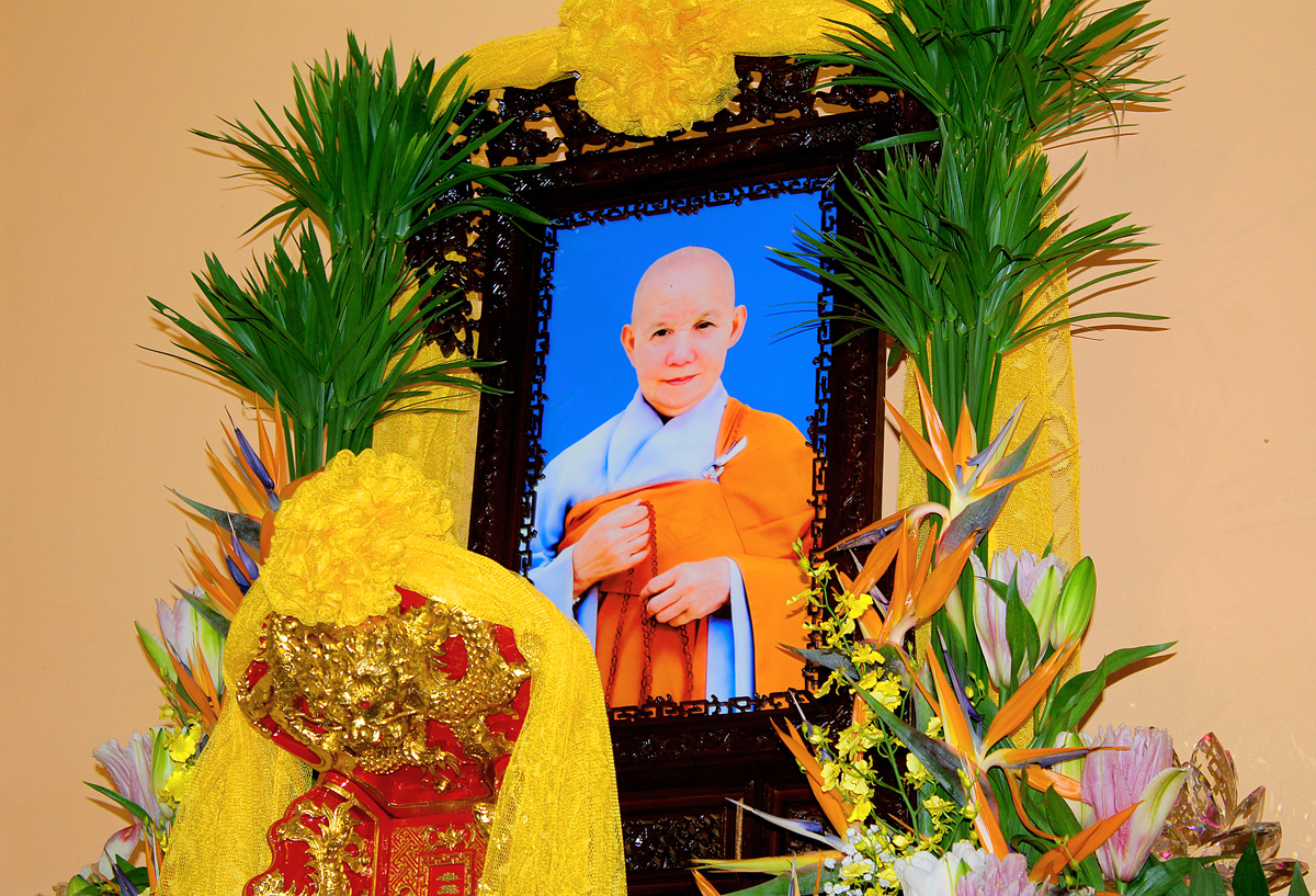 Tại buổi lễ tưởng niệm nhân ngày Bách nhật của cố Ni trưởng; sau khóa kinh cầu nguyện, đảnh lễ chư vị Tổ sư, chư tôn đức trong Ban Kinh sư cung tiến giác linh Ni trưởng.