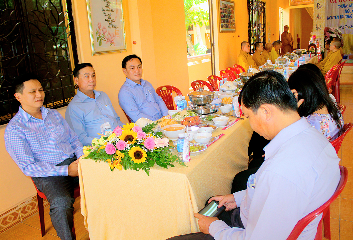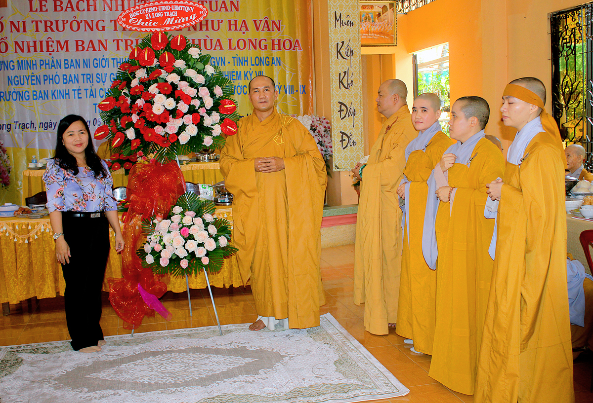Về phía chính quyền tham dự, trân trọng được đón tiếp ông Nguyễn Văn Mưng – Trưởng Ban Tôn giáo Sở Nội vụ tỉnh Long An, cùng quý vị khách quý theo đoàn trực thuộc Ban Tôn giáo tỉnh Long An, Bà Trịnh Thị Kim Quyên – Phó Trưởng Phòng Nội vụ huyện Cần Đước, Bà Phạm Thị Thanh Nhã – Phó Chủ tịch UBND xã Long Trạch, cùng quý khách quý theo đoàn, với sự tham dự của quý Phật tử đạo tràng Chùa Long Hoa.
