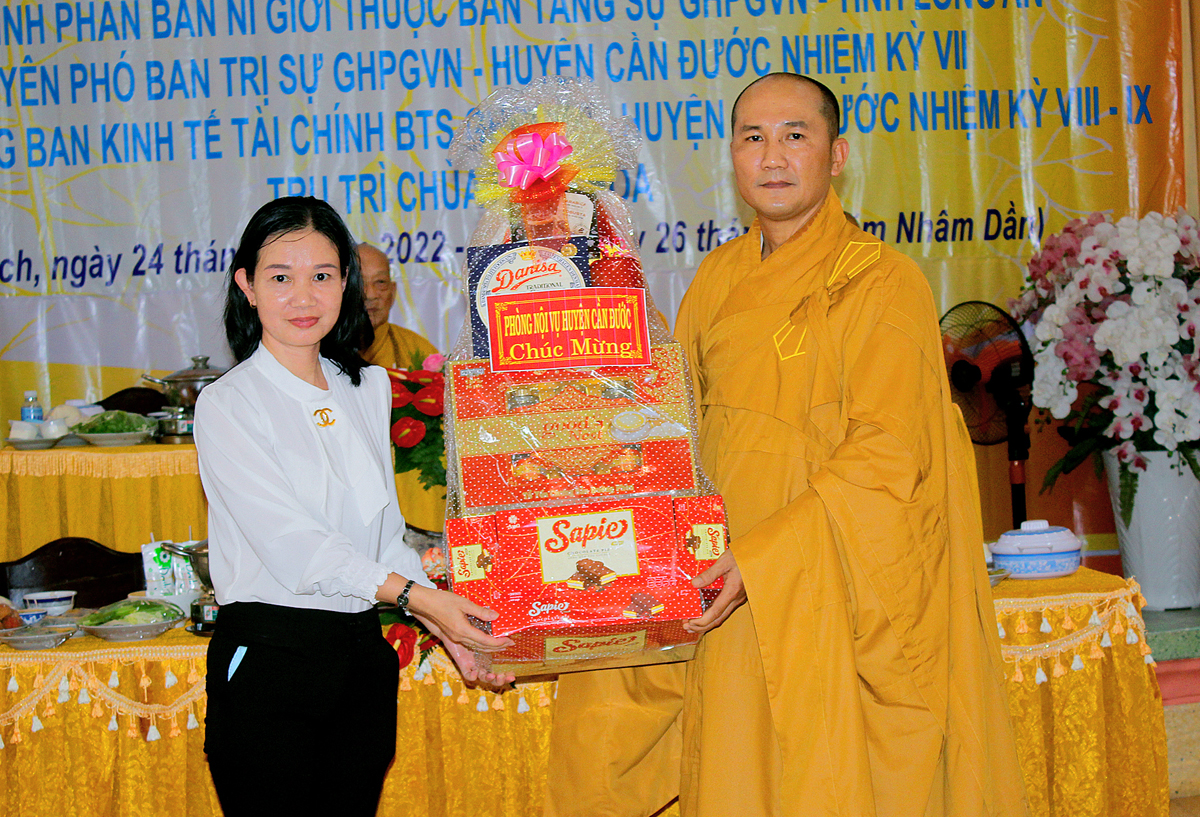 Buổi lễ được cung nghinh sự quang lâm chứng minh của Hòa thượng Thích Minh Thiện – UV HĐTS – Phó Trưởng Ban Hoằng pháp TW GHPGVN – Trưởng BTS GHPGVN tỉnh Long An, Hòa thượng Thích Thiện Ngọc – Chứng minh BTS GHPGVN huyện Cần Đước, Thượng tọa Thích Đức Hoàng – Phó Trưởng BTS GHPGVN tỉnh Long An – Đại đức Thích Thiện Danh – Phó Chánh Thư ký kiêm Chánh Văn phòng BTS GHPGVN tỉnh Long An, Ni trưởng Thích Nữ Tuệ Đăng – Phó Ban Trị sự – Trưởng Phân ban đặc trách Ni giới BTS GHPGVN tỉnh Long An, Đại đức Thích Trí Minh – Uỷ viên thường trực BTS GHPGVN tỉnh Long An – Trưởng BTS GHPGVN huyện Cần Đước, Đại đức Thích Tâm Hướng – Uỷ viên BTS GHPGVN tỉnh Long An – Phó Trưởng Ban Thường trực BTS GHPGVN huyện Cần Đước, Đại đức Thích Nguyên Tịnh – Uỷ viên BTS GHPGVN tỉnh Long An – Chánh Thư ký BTS GHPGVN huyện Cần Đước, Đại đức Thích Nguyên Thọ – Phó Chánh Thư ký BTS GHPGVN huyện Cần Đước.