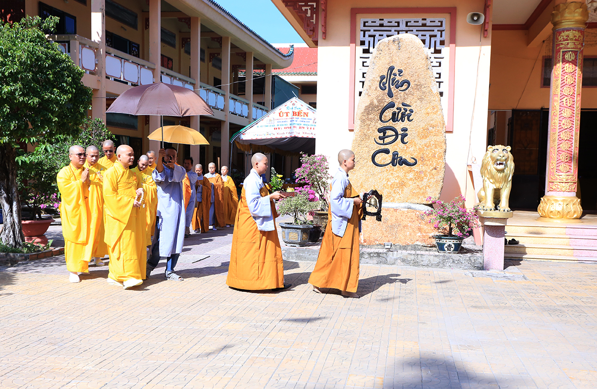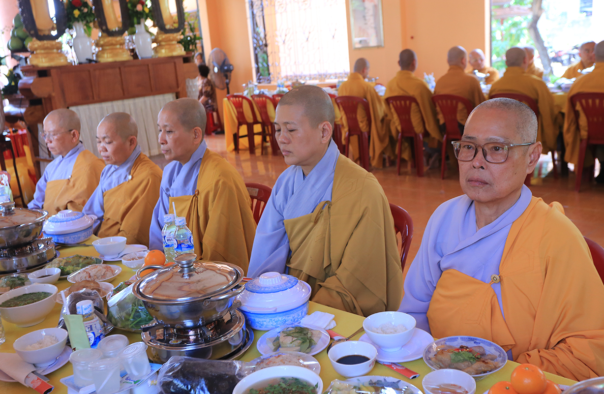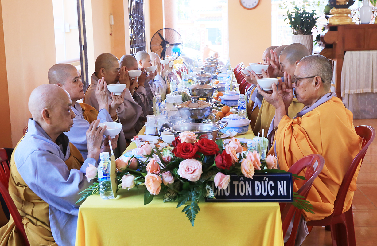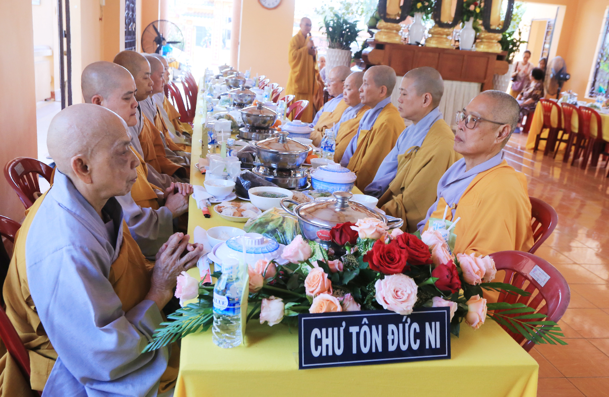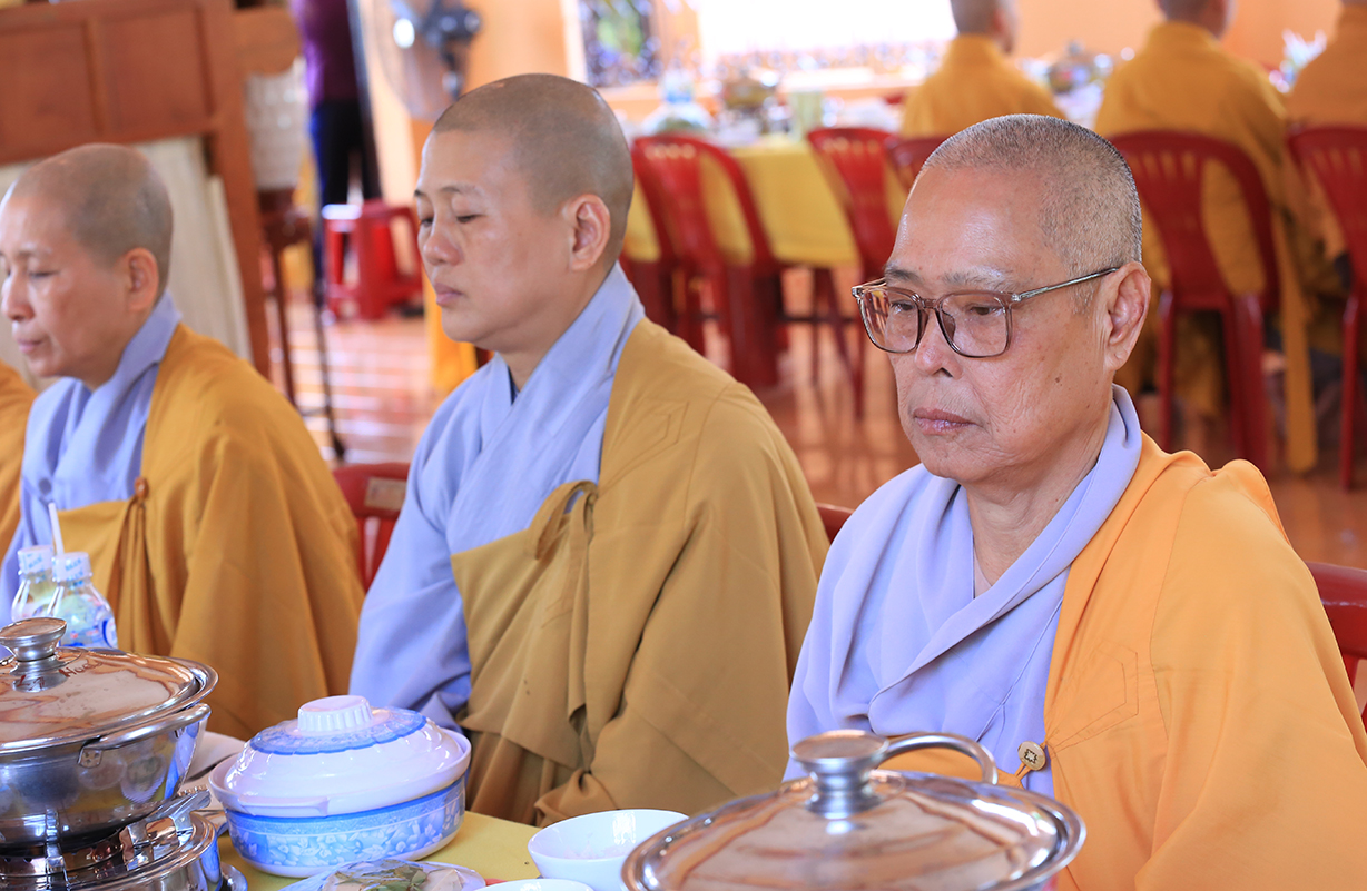 Tại buổi lễ, Môn đồ pháp quyến cung thỉnh chư tôn đức Tăng trong ban Kinh sư trang nghiêm cử hành nghi thức cúng ngọ và cung tiến Giác linh Ni trưởng.