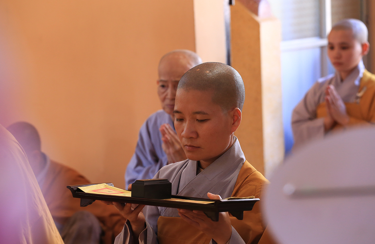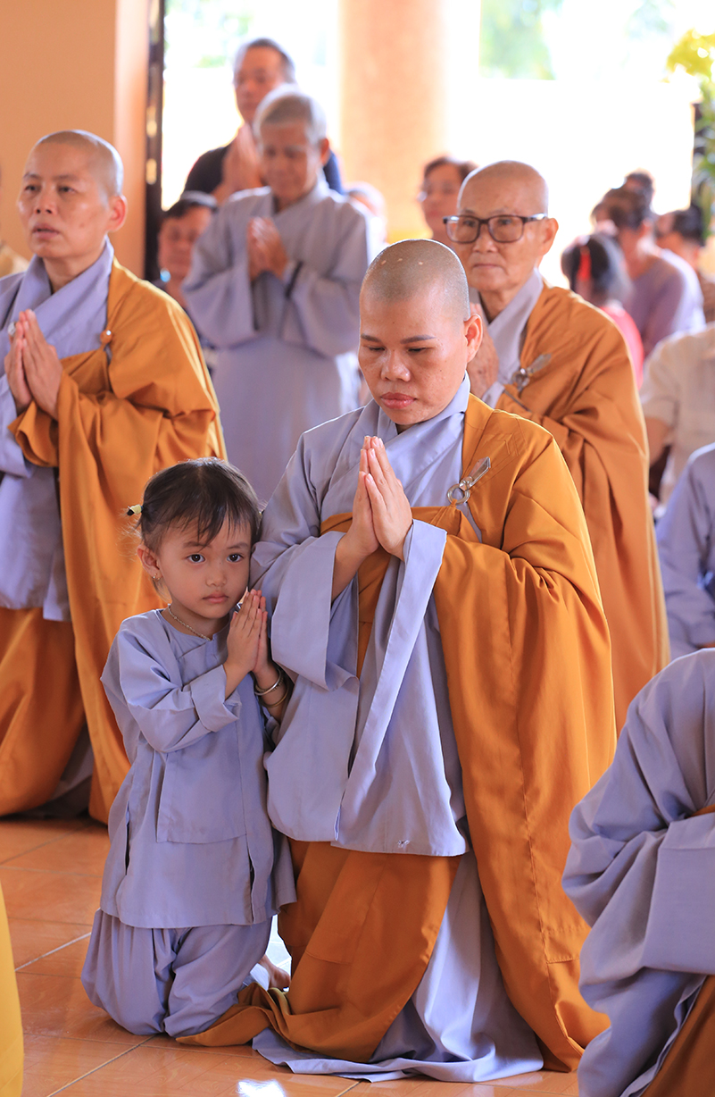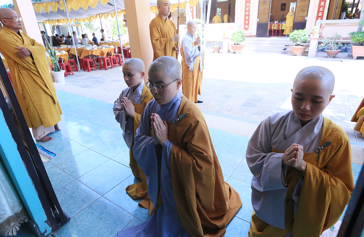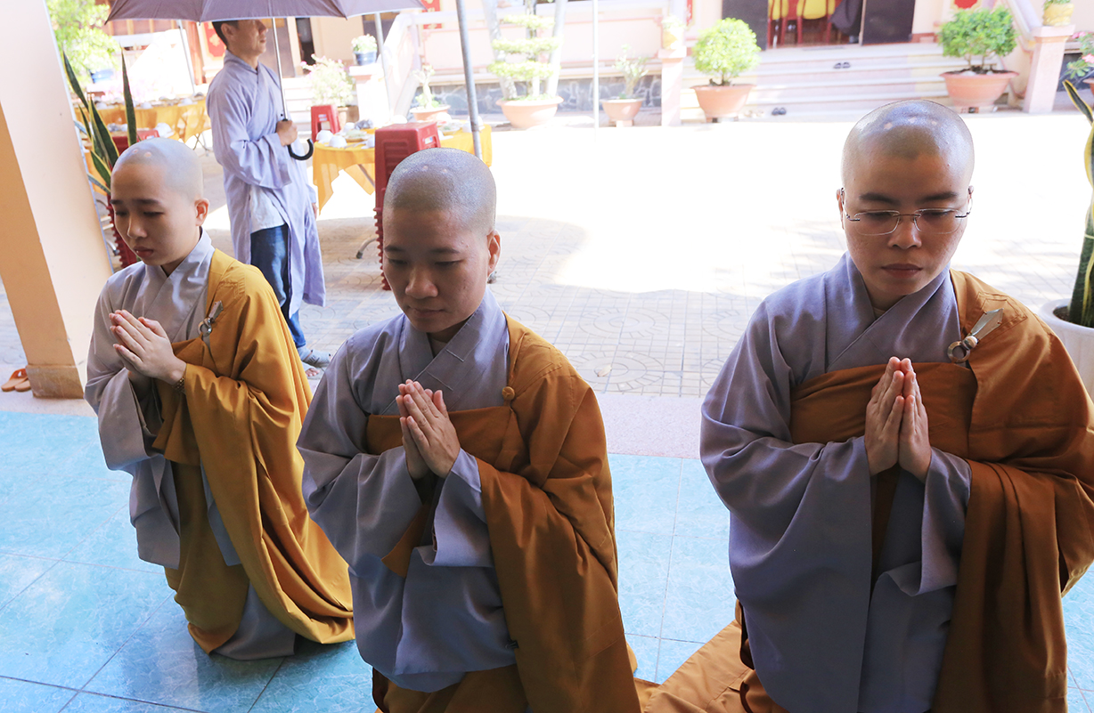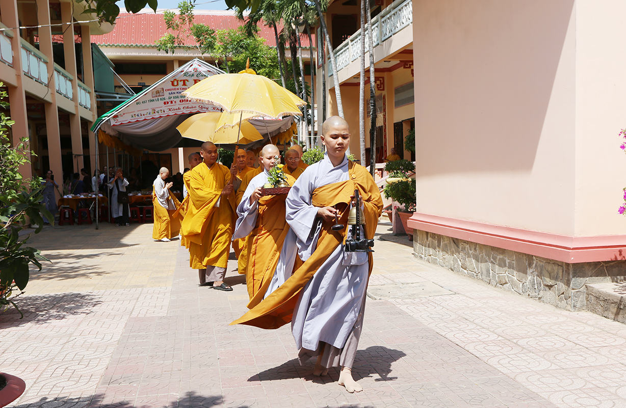 Tại buổi lễ, Môn đồ pháp quyến cung thỉnh chư tôn đức Tăng trong ban Kinh sư trang nghiêm cử hành nghi thức cúng ngọ và cung tiến Giác linh Ni trưởng.