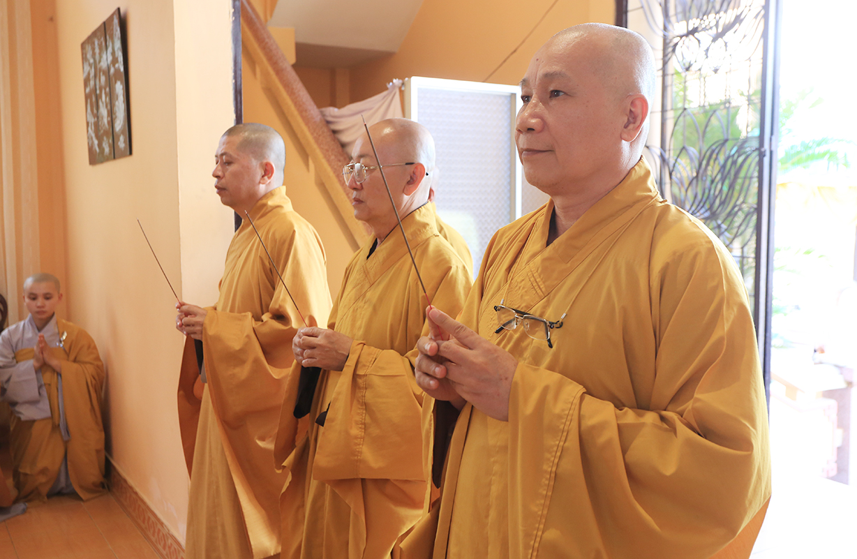 Sau khóa lễ, Môn đồ pháp quyến cung thỉnh Chư tôn đức giáo phẩm cung đối trước Giác linh đài, chư tôn đức Tăng Ni đã thành kính thắp hương tưởng niệm, nhất tâm đồng tụng niệm cầu nguyện Giác linh cố Ni trưởng Thích nữ Như Vân cao đăng Phật quốc.
