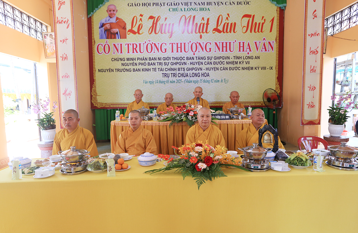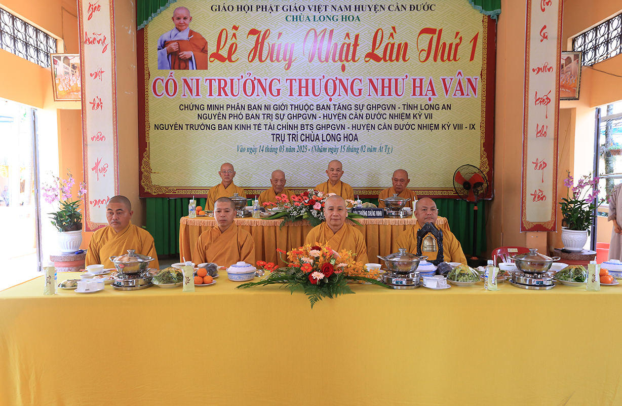 Sáng nay, ngày 13 tháng 3 năm 2024 (nhằm ngày 15 tháng 02 năm Ất Tỵ), dưới sự chứng minh của mười phương chư Phật, sự chỉ đạo của Thường trực BTS GHPGVN tỉnh Long An, Ban Trị sự GHPGVN huyện Cần Đước cùng môn đồ pháp quyến trang nghiêm lễ tưởng niệm Húy Nhật lần thứ I Cố Ni trưởng Thích Nữ Như Vân – Chứng minh Phân ban Ni giới thuộc Ban Tăng sự GHPGVN tỉnh Long An – Chứng Minh Phân ban Ni giới BTS GHPGVN huyện Cần Đước – Trụ trì Chùa Long Hoa, xã Long Trạch, huyện Cần Đước, tỉnh Long An.