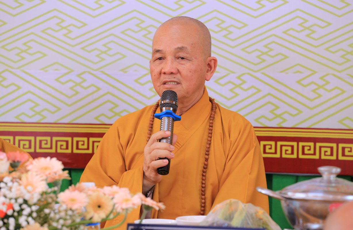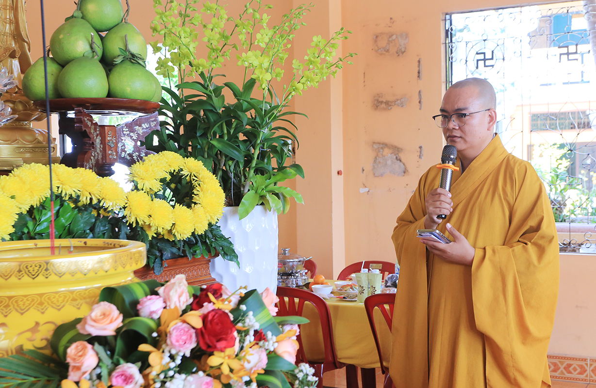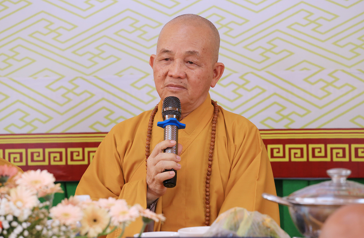 Sau lời tác bạch tưởng niệm Húy nhật cố Ni trưởng Thích Nữ Như Vân của Sư cô Thích Nữ Nhuận Lập đại diện môn đồ pháp quyến, toàn thể hội chúng được lắng nghe lời đạo từ cao quý của Hòa thượng Thích Minh Thiện – UV HĐTS – Phó Trưởng Ban Hoằng pháp TW – Trưởng BTS GHPGVN tỉnh Long An. Trong lời đạo từ Hòa thượng đã lần nữa ôn lại giá trị của Phật giáo nước nhà trong sự đồng hành và phát triển cùng dân tộc, nhắc lại quá trình truyền thừa mạng mạch Phật giáo từ khi Đức Phật còn tại thế, tiếp nối đến chư Tổ truyền trao và chúng ta hôm nay được kế thừa tinh hoa giáo pháp. Hòa thượng lần nữa tuyên dương công đức của Nhị vị Ni trưởng đã dày công khai sơn và phát triển đạo tràng chùa Long Hoa đến hôm nay được trang nghiêm và thành tựu như pháp. Hòa thượng nhắc lại giá trị về Tứ trọng Ân trong đạo Phật, nhắn gửi người đệ tử xuất gia, cần luôn nổ lực tinh tấn tu tập, hòa hợp, tiếp nối sứ mạng của Thầy Tổ trên lộ trình hoằng dương Phật pháp. Bên cạnh đó, Ngài nhấn mạnh về vai trò của giáo hội các cấp trong tỉnh nhà vẫn luôn sách tấn và chọn lựa nhân tài kế thừa để đảm nhiệm chức vụ trụ trì chùa Long Hoa nhằm ổn định và nhiếp hóa đồ chúng nơi tự viện tu tập và phát triển tốt đẹp.